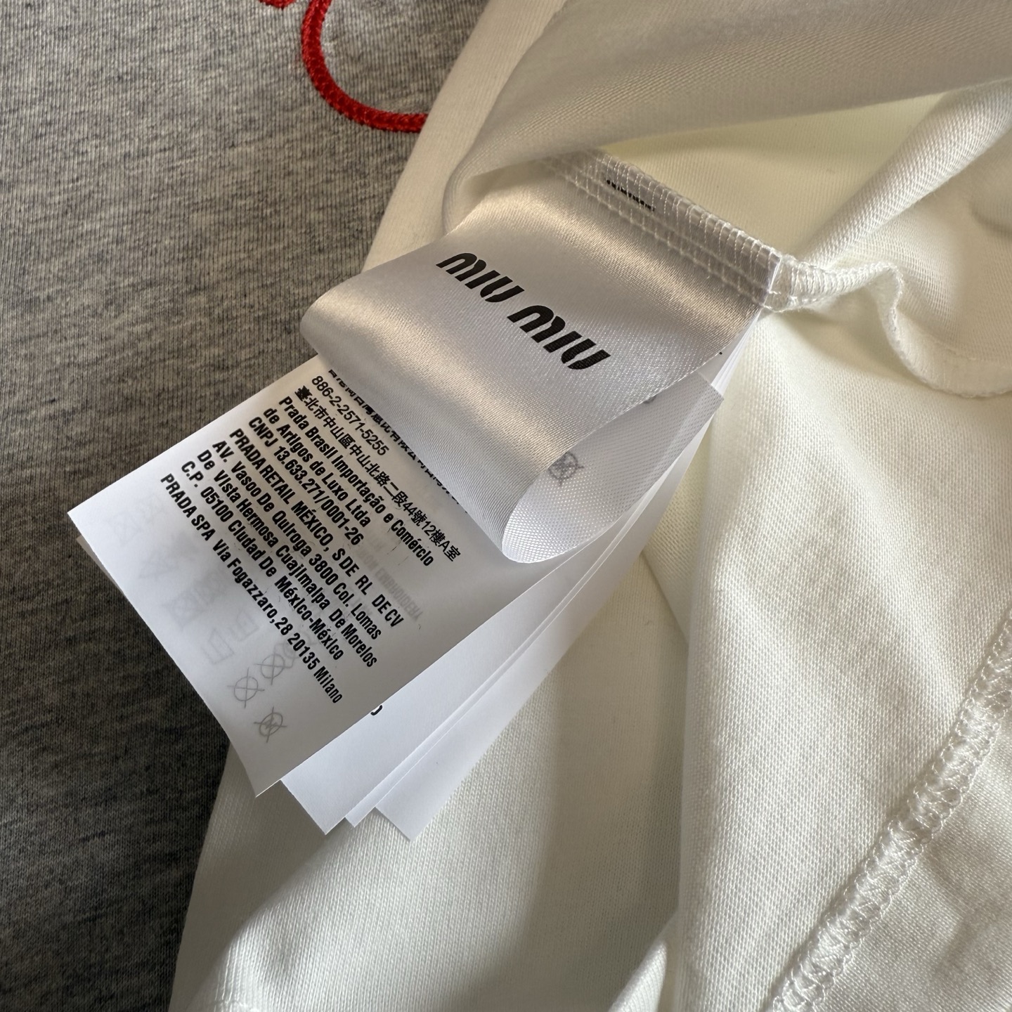 这款衣服是AAAAA 1:1 质量 (非常棒). 使用了和原版一模一样的材料. 商标部分也保持了和缪缪/Miu Miu一样. 图片拍摄是实物衣服拍摄, 您所收到的实物保证和我们图片一模一样.