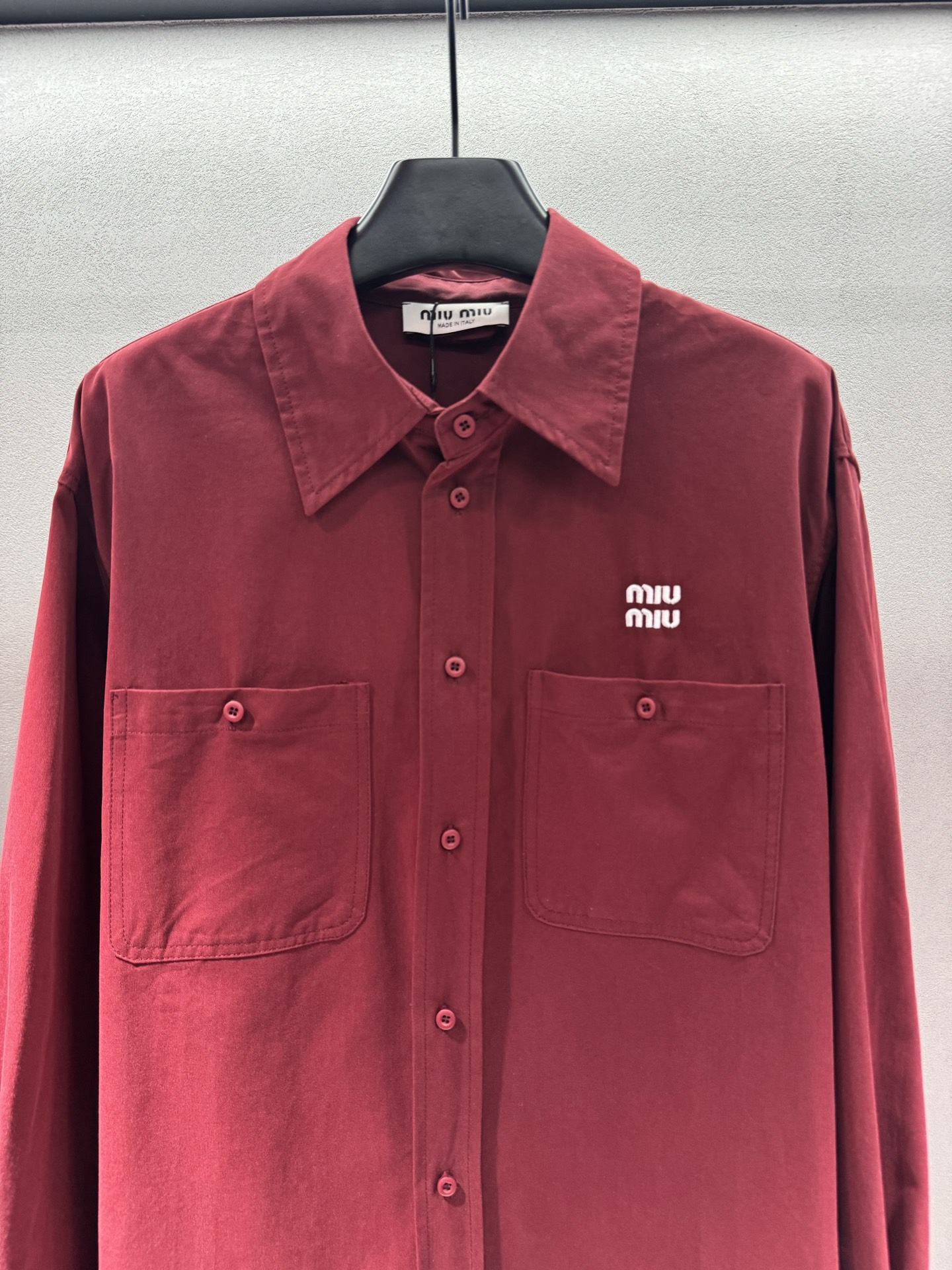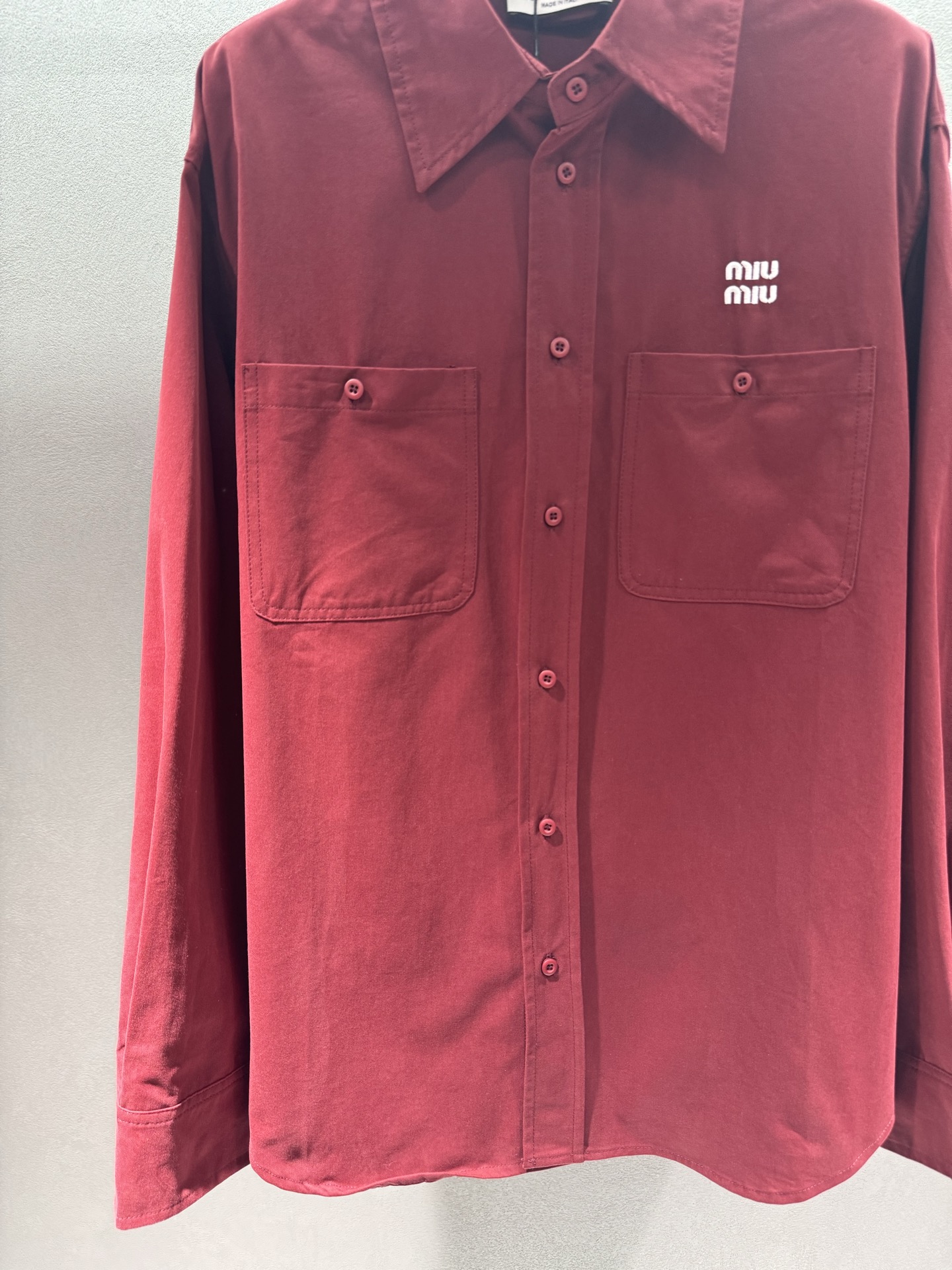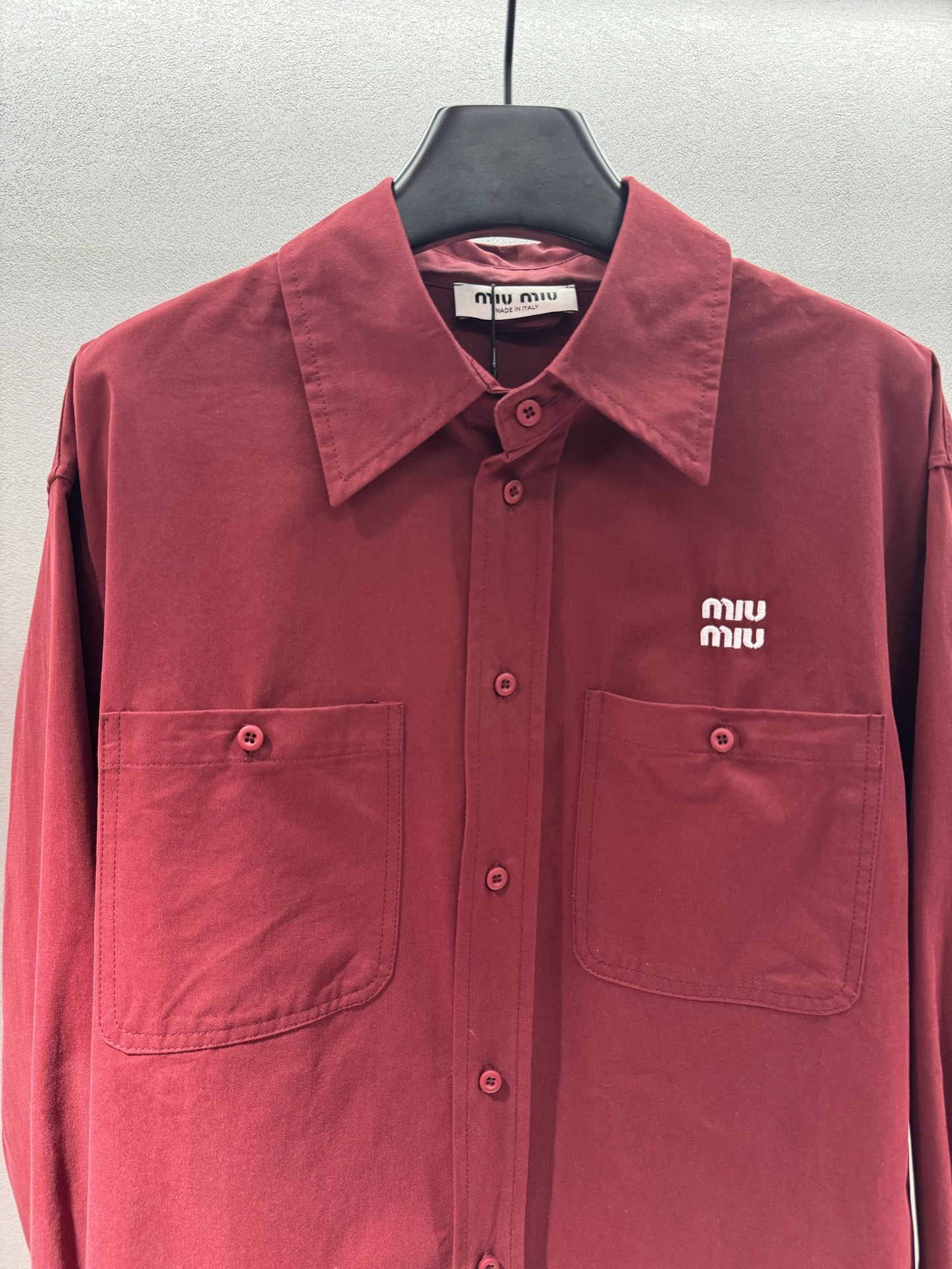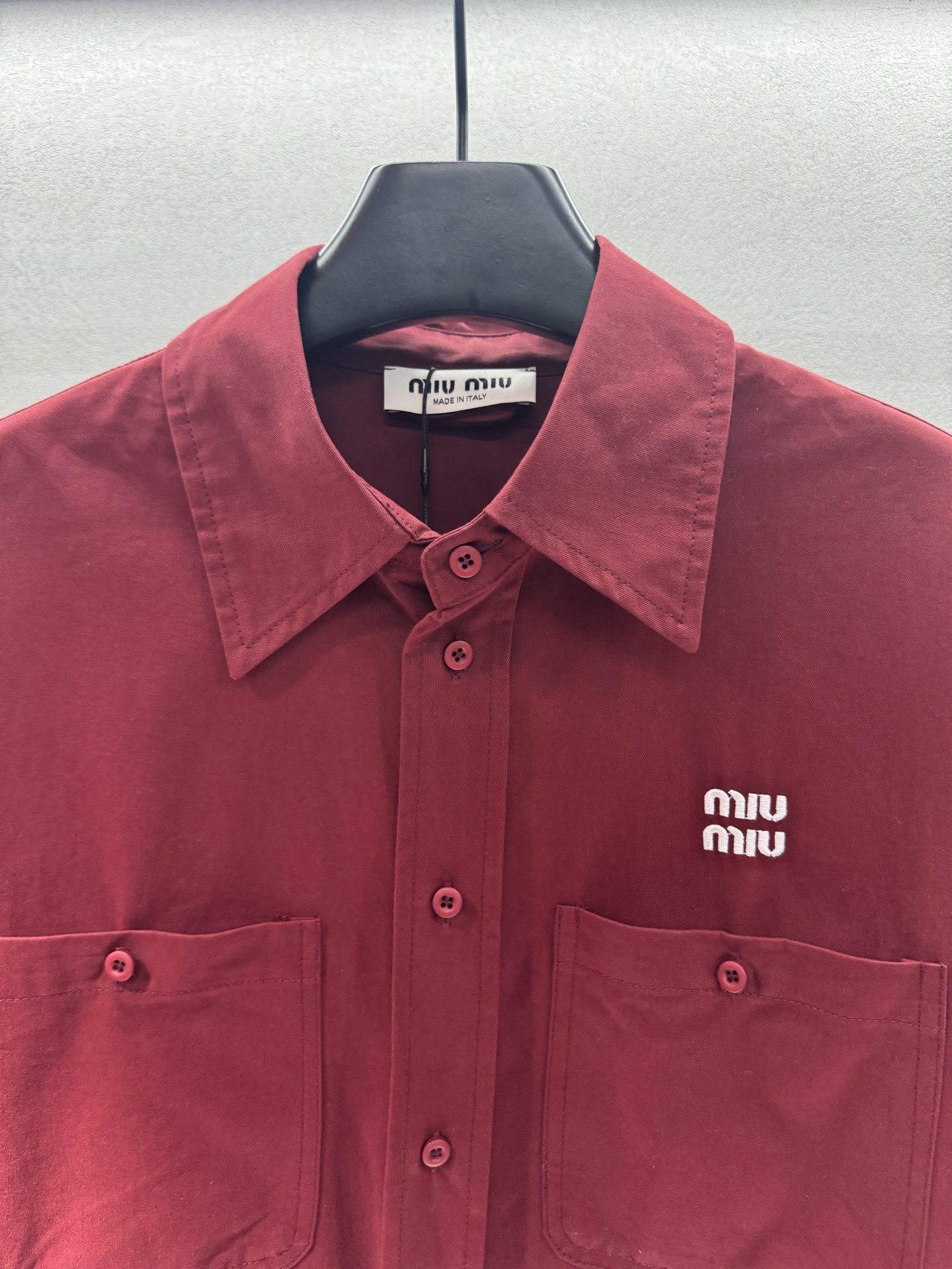 这款衣服是AAAAA 1:1 质量 (非常棒). 使用了和原版一模一样的材料. 商标部分也保持了和缪缪/Miu Miu一样. 图片拍摄是实物衣服拍摄, 您所收到的实物保证和我们图片一模一样.