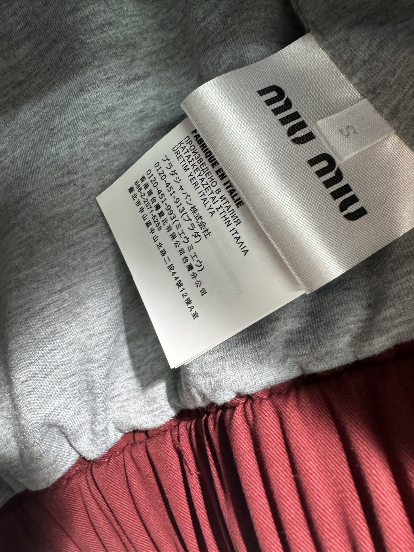 这款衣服是AAAAA 1:1 质量 (非常棒). 使用了和原版一模一样的材料. 商标部分也保持了和缪缪/Miu Miu一样. 图片拍摄是实物衣服拍摄, 您所收到的实物保证和我们图片一模一样.