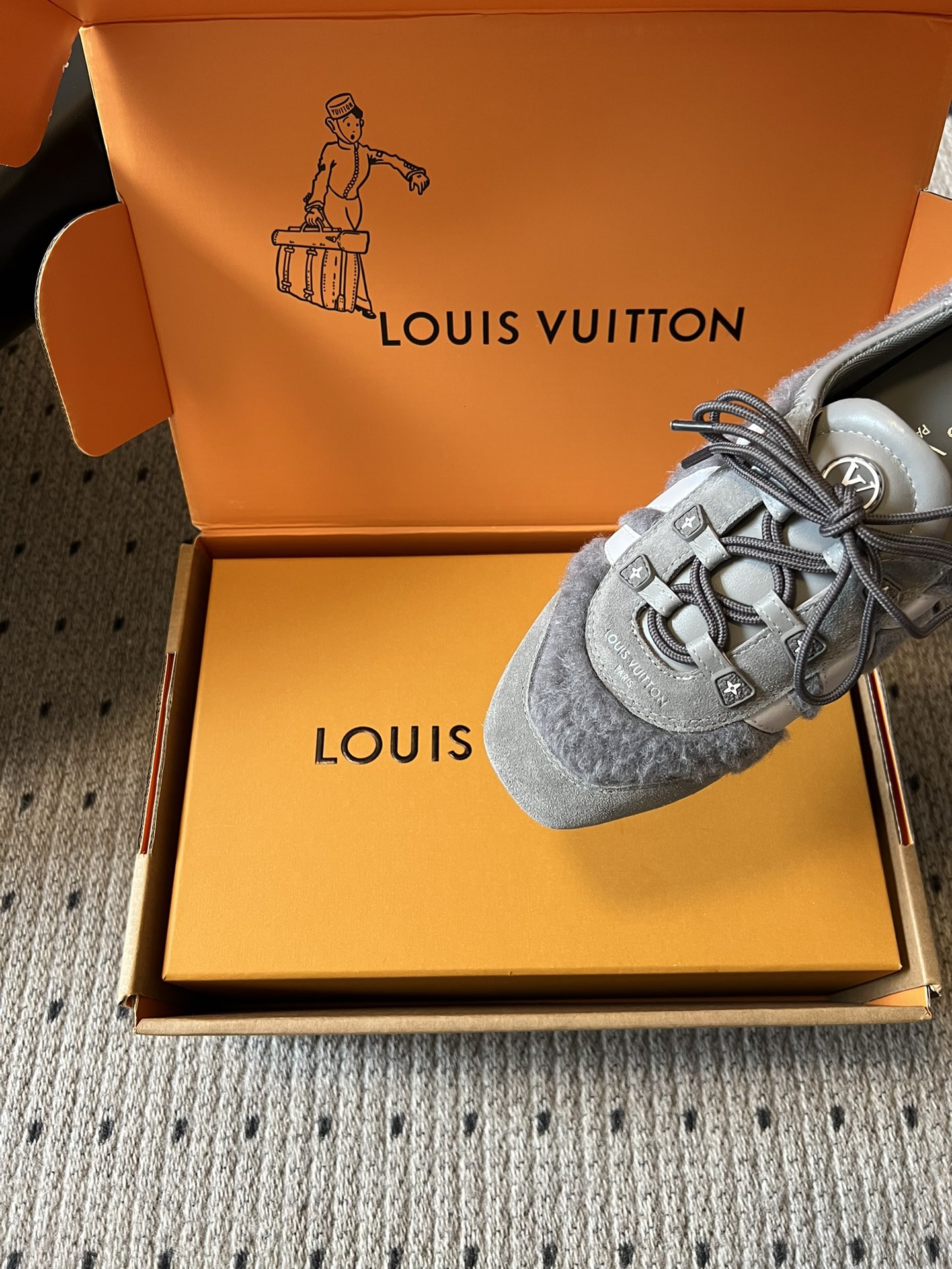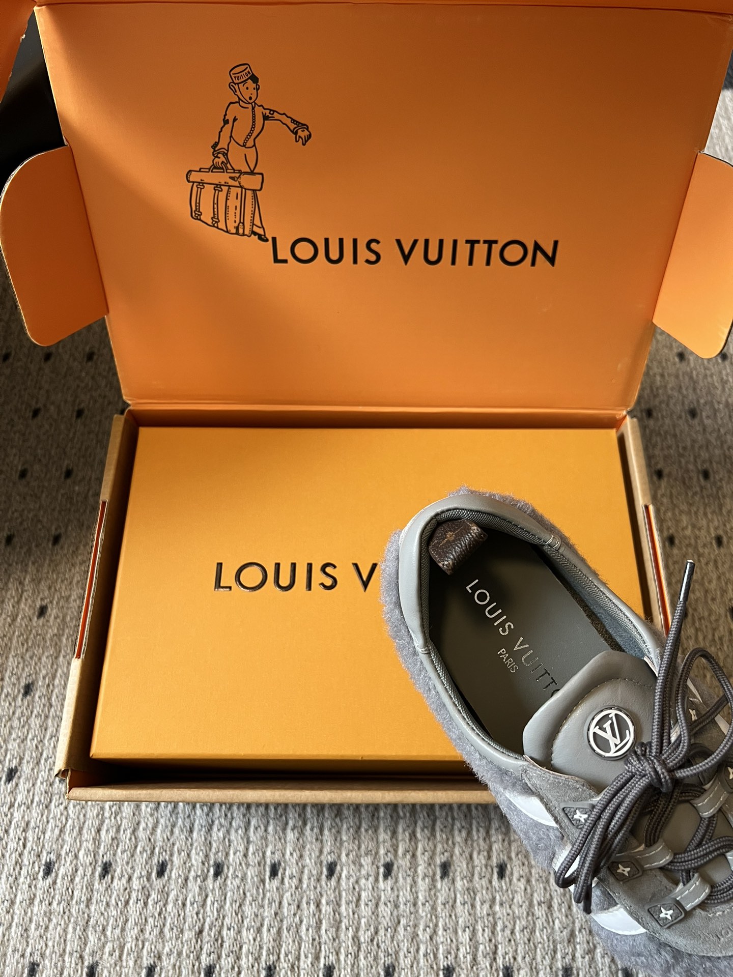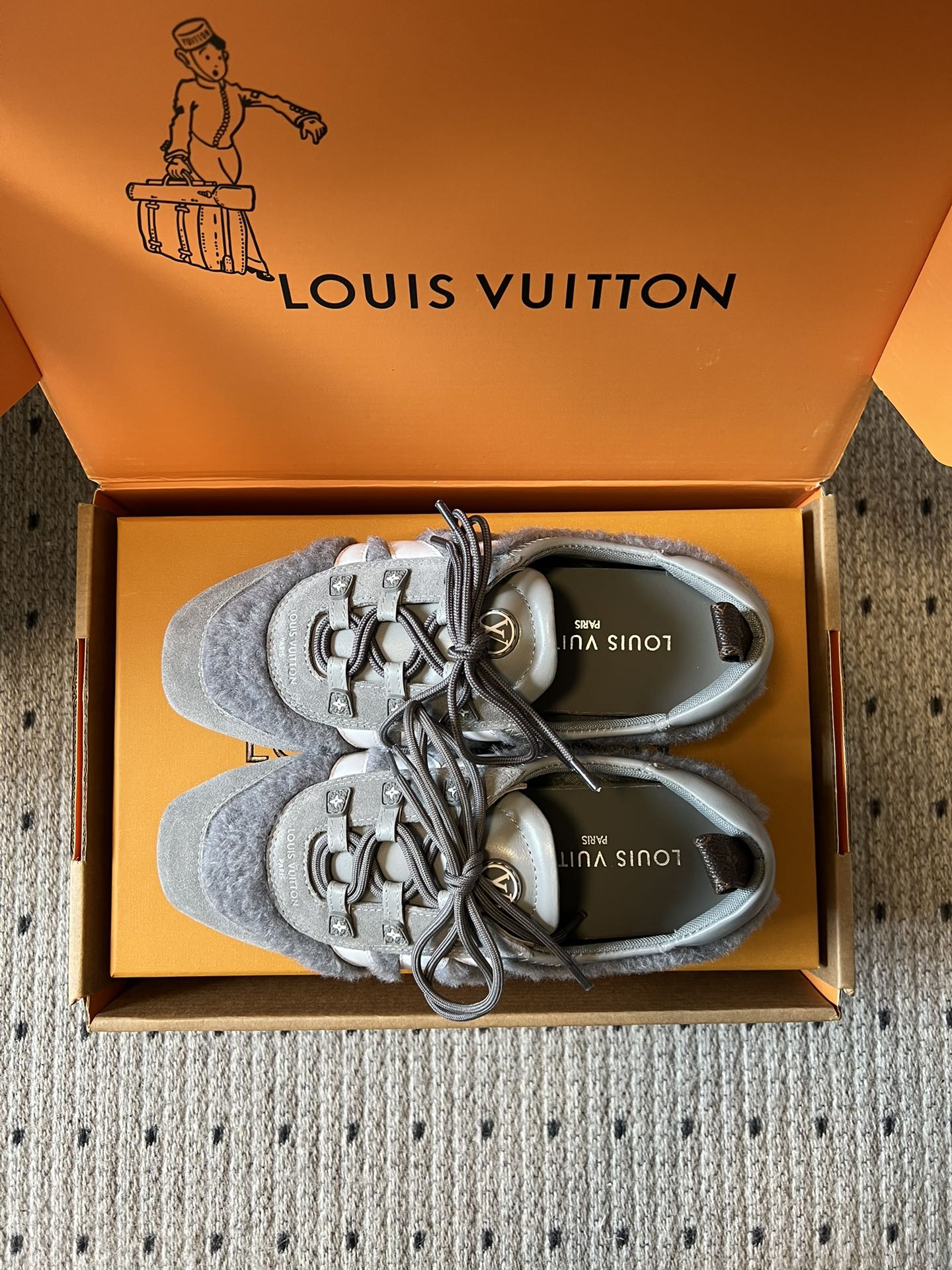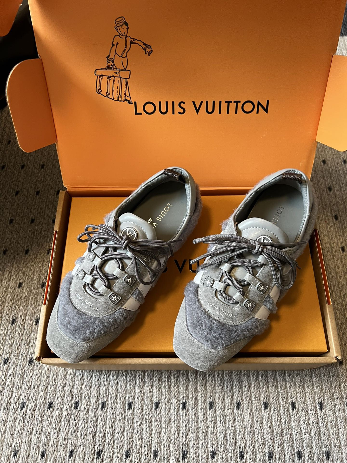 这款鞋子是AAAAA 1:1 质量 (非常棒). 使用了和原版一模一样的材料. 商标部分也保持了和路易威登/Louis Vuitton一样. 图片拍摄是实物鞋子拍摄, 您所收到的实物保证和我们图片一模一样.