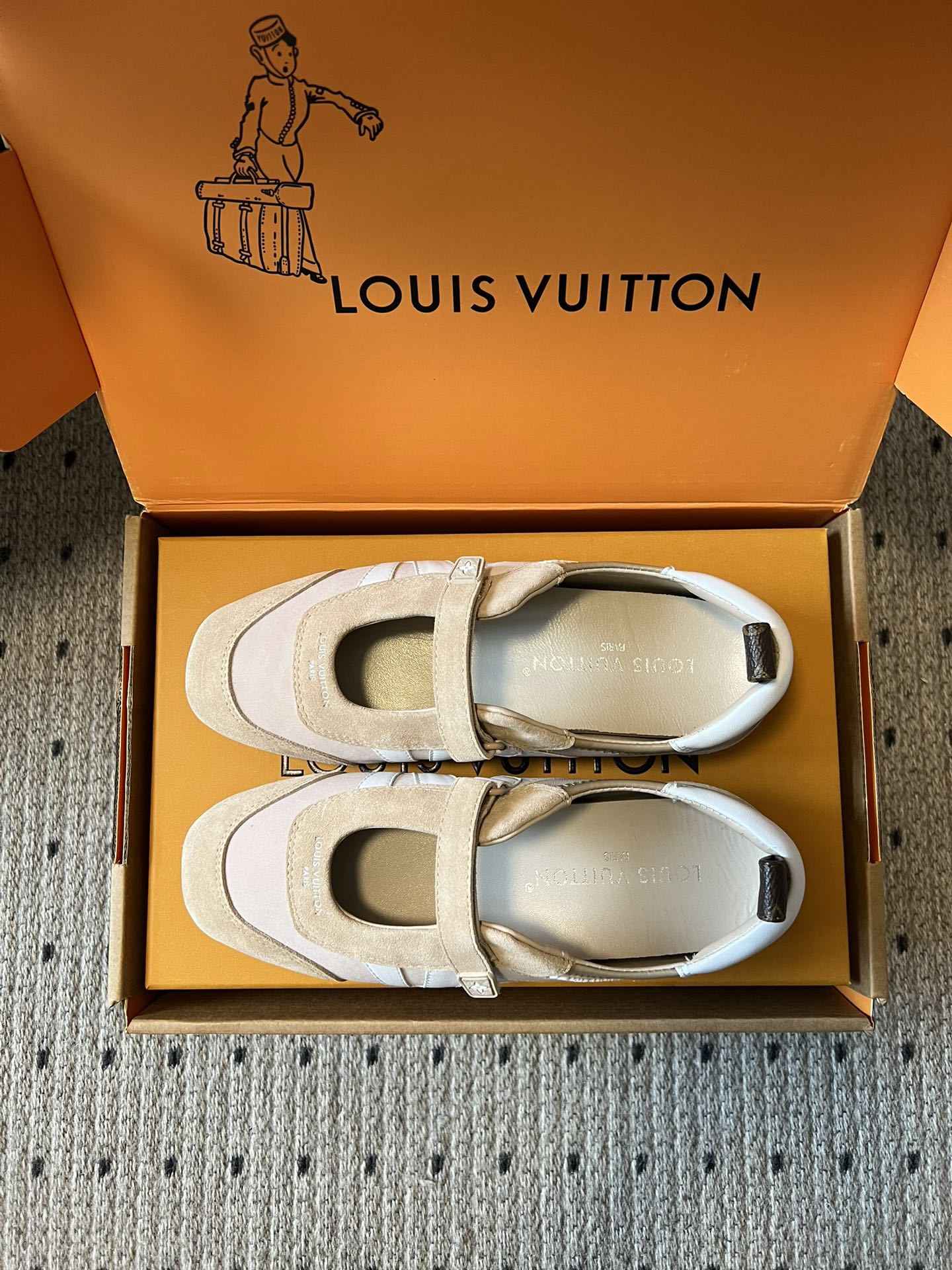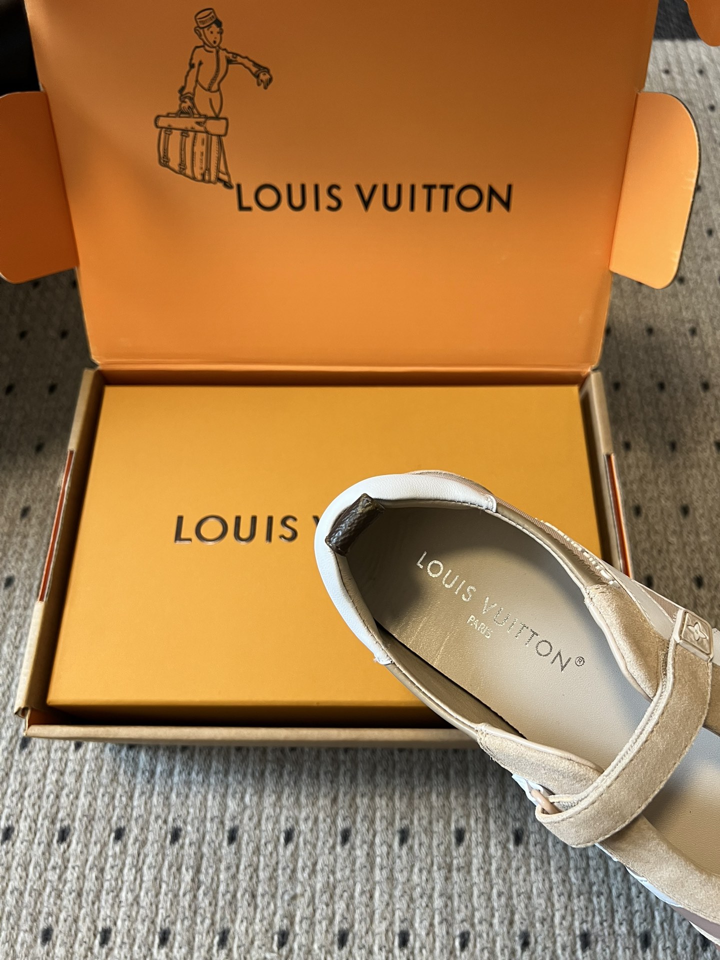 这款鞋子是AAAAA 1:1 质量 (非常棒). 使用了和原版一模一样的材料. 商标部分也保持了和路易威登/Louis Vuitton一样. 图片拍摄是实物鞋子拍摄, 您所收到的实物保证和我们图片一模一样.