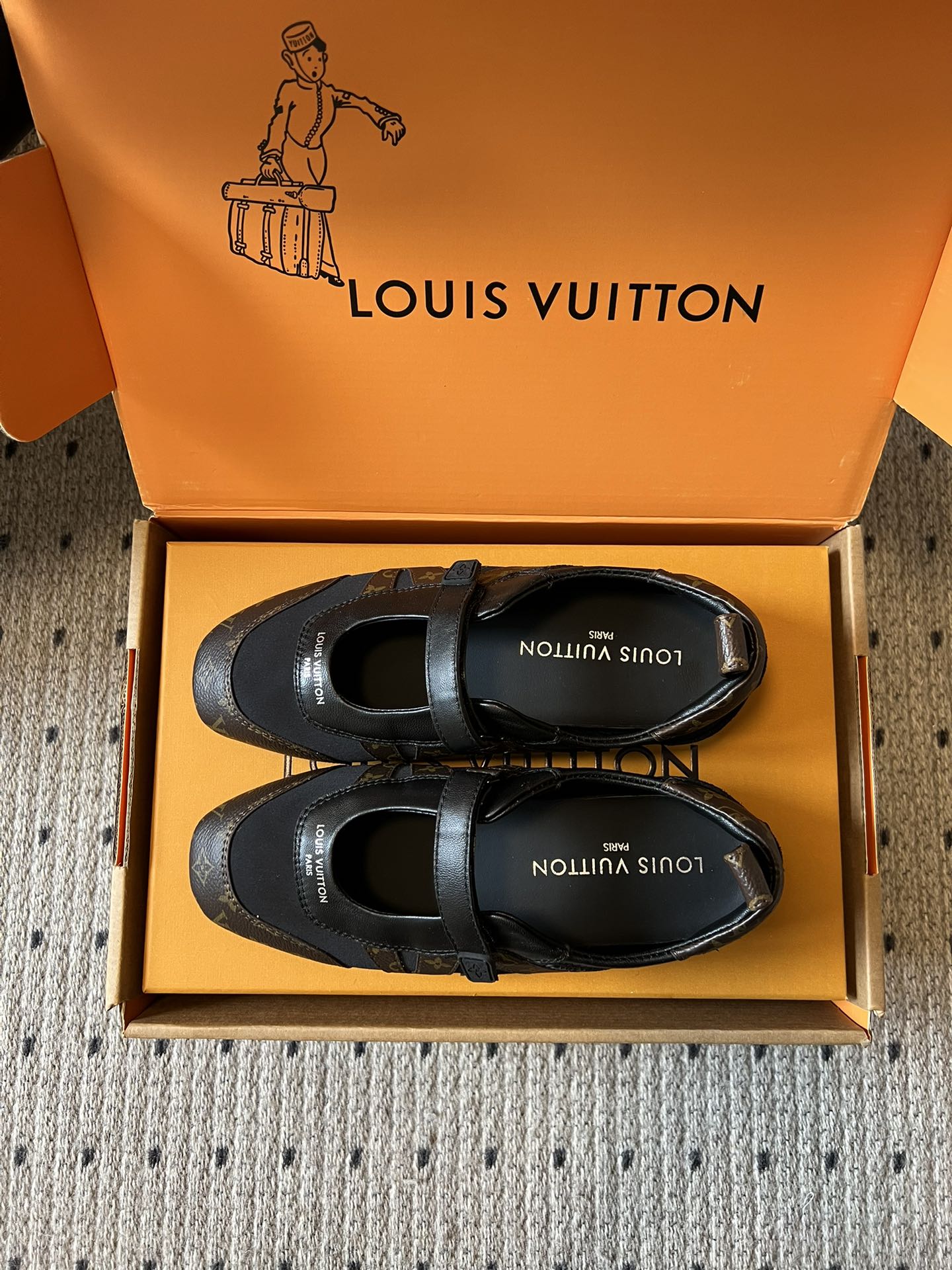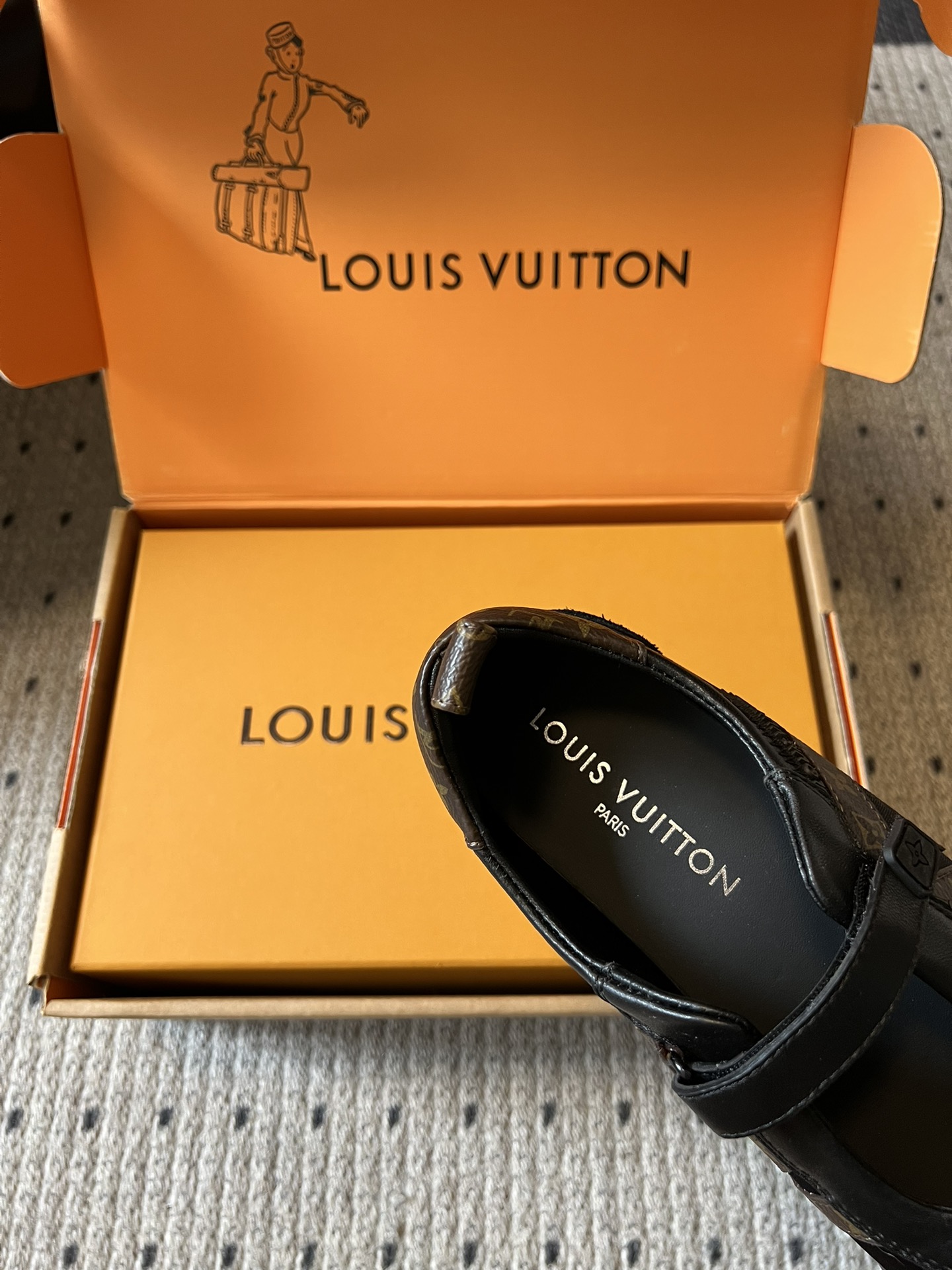 这款鞋子是AAAAA 1:1 质量 (非常棒). 使用了和原版一模一样的材料. 商标部分也保持了和路易威登/Louis Vuitton一样. 图片拍摄是实物鞋子拍摄, 您所收到的实物保证和我们图片一模一样.