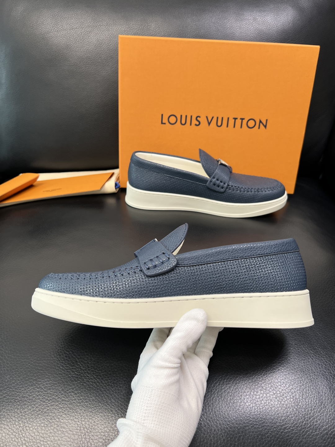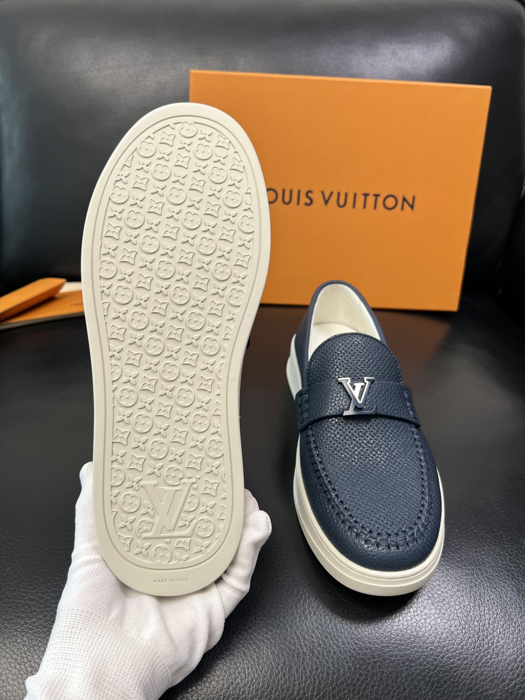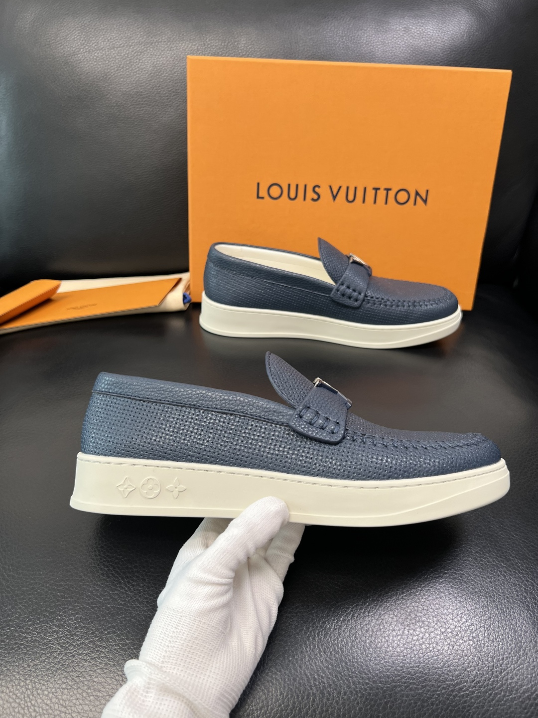 这款鞋子是AAAAA 1:1 质量 (非常棒). 使用了和原版一模一样的材料. 商标部分也保持了和路易威登/Louis Vuitton一样. 图片拍摄是实物鞋子拍摄, 您所收到的实物保证和我们图片一模一样.