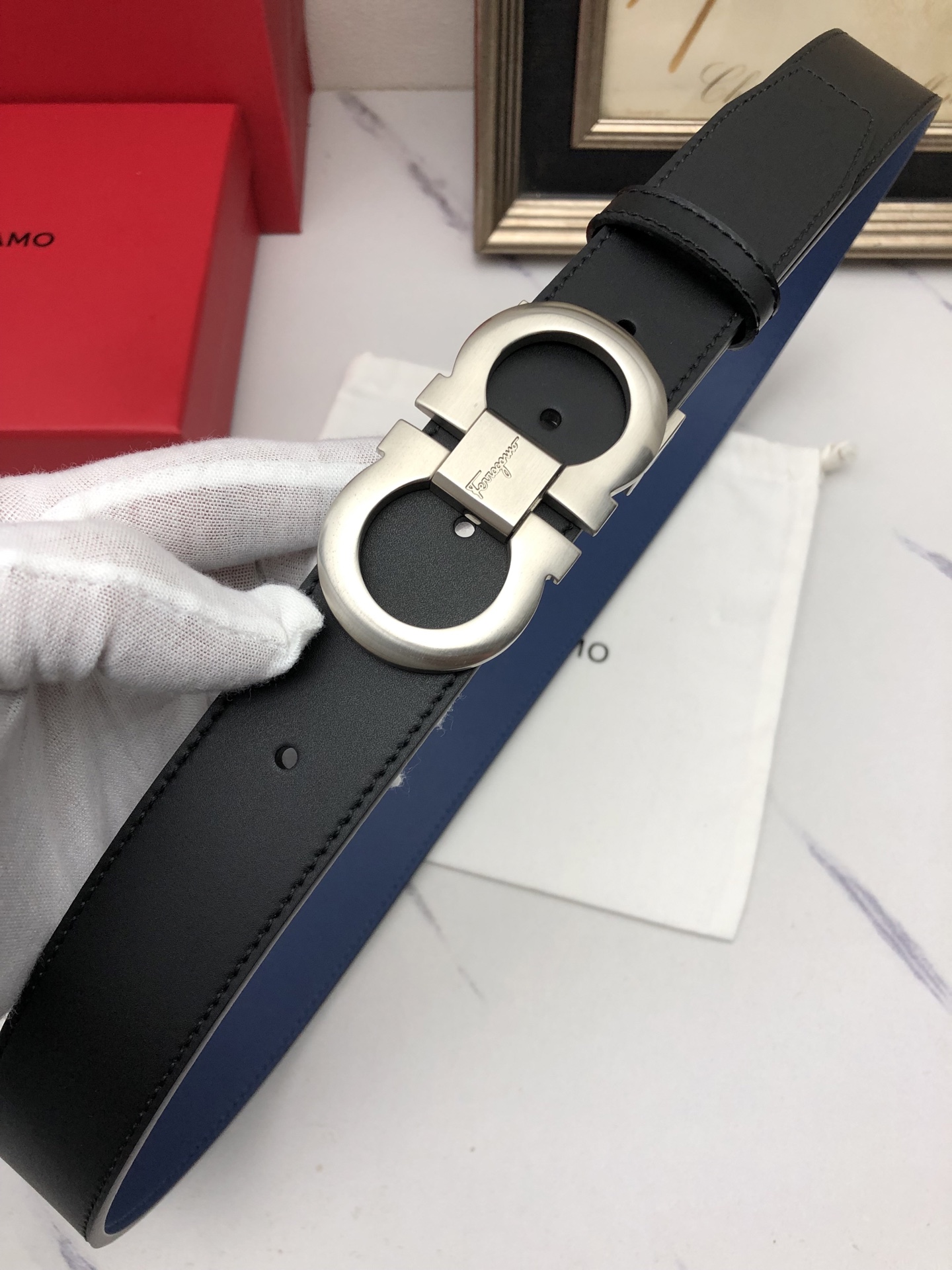 这款皮带是AAAAA 1:1 质量 (非常棒). 使用了和原版一模一样的材料. 商标部分也保持了和一样. 图片拍摄是实物皮带拍摄, 您所收到的实物保证和我们图片一模一样.