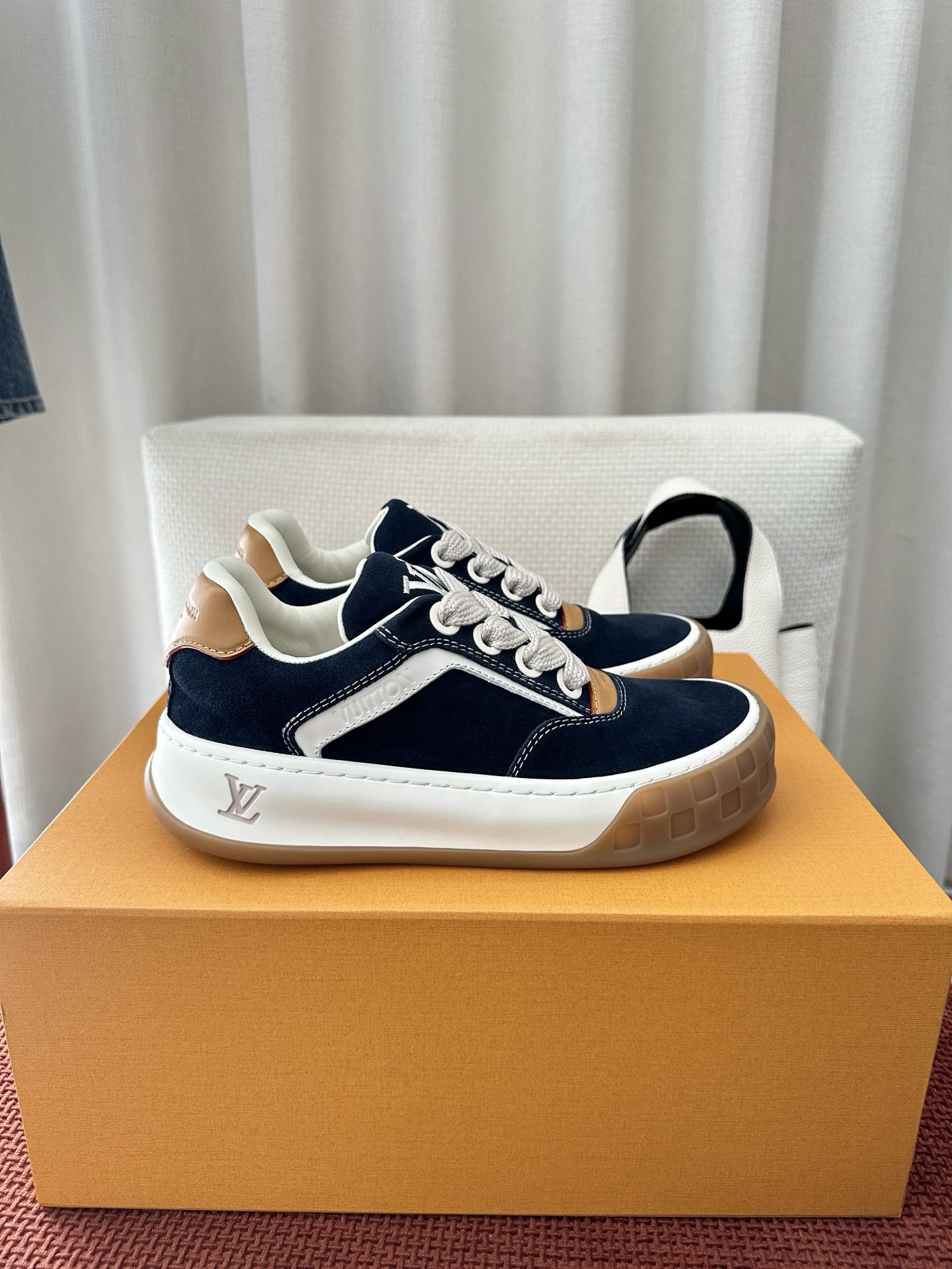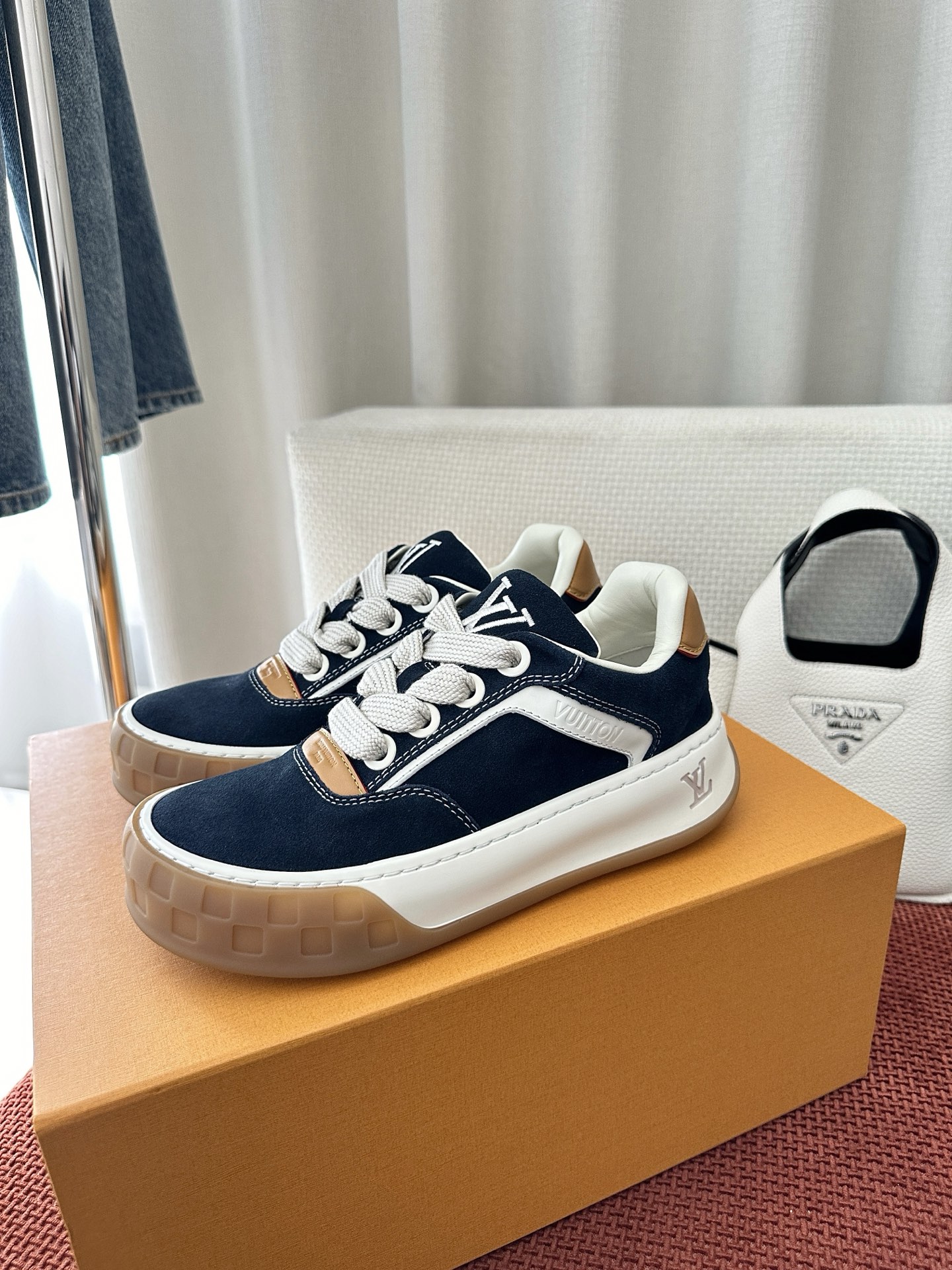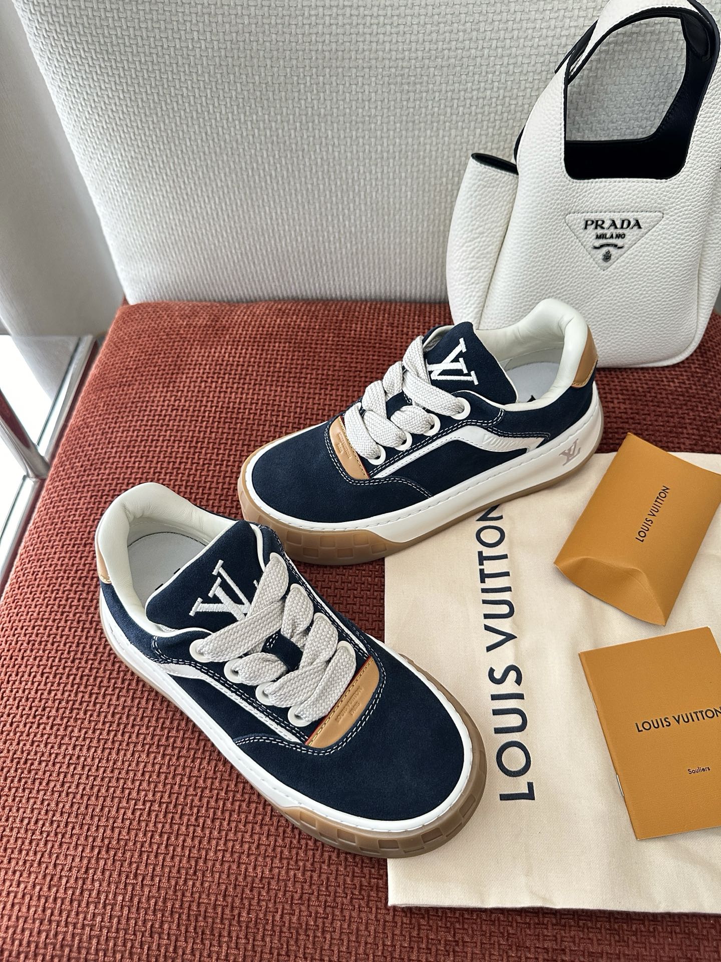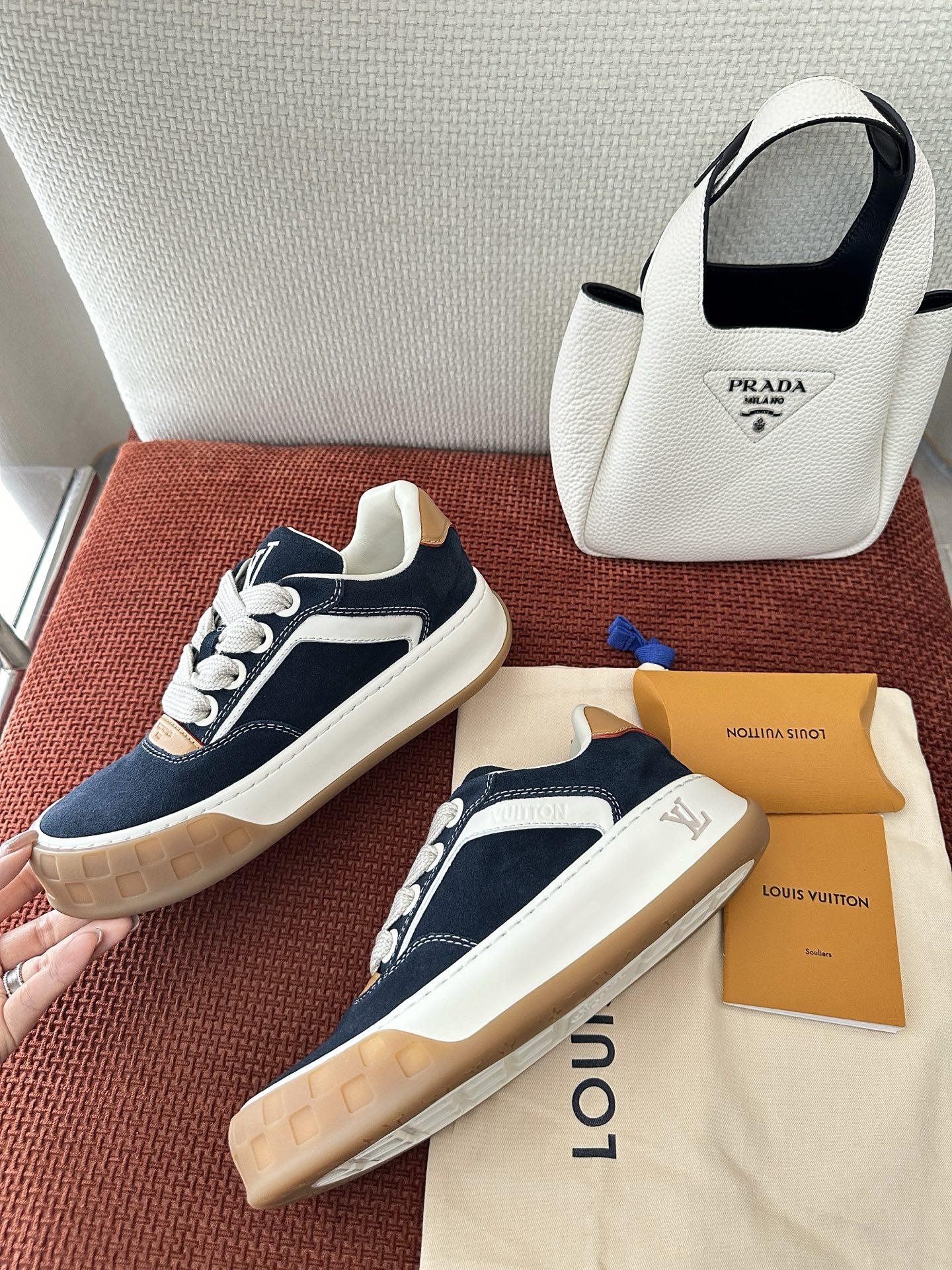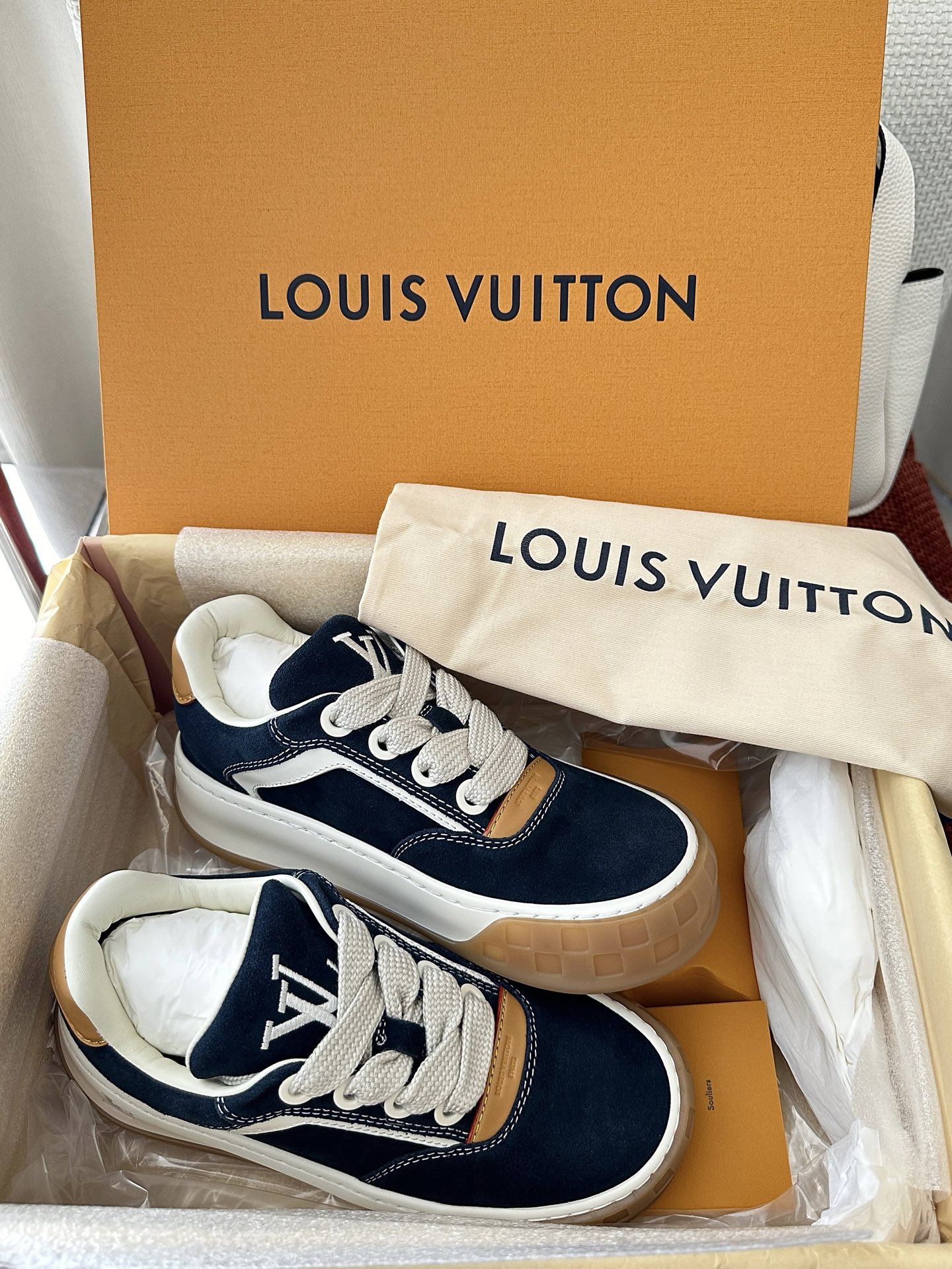 这款鞋子是AAAAA 1:1 质量 (非常棒). 使用了和原版一模一样的材料. 商标部分也保持了和路易威登/Louis Vuitton一样. 图片拍摄是实物鞋子拍摄, 您所收到的实物保证和我们图片一模一样.
