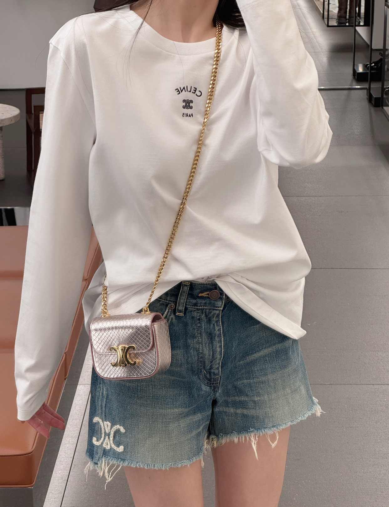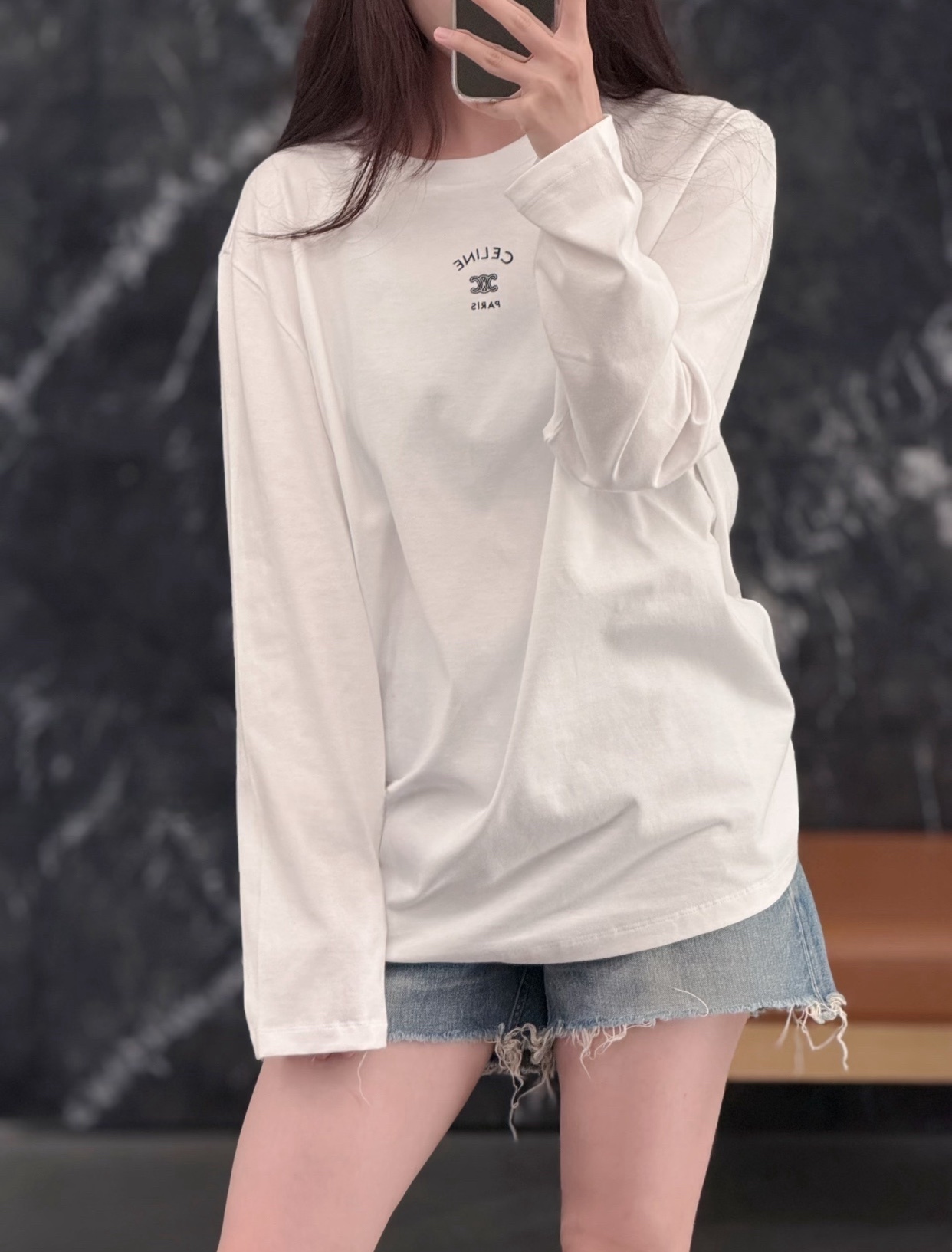 这款衣服是AAAAA 1:1 质量 (非常棒). 使用了和原版一模一样的材料. 商标部分也保持了和思琳/Celine一样. 图片拍摄是实物衣服拍摄, 您所收到的实物保证和我们图片一模一样.