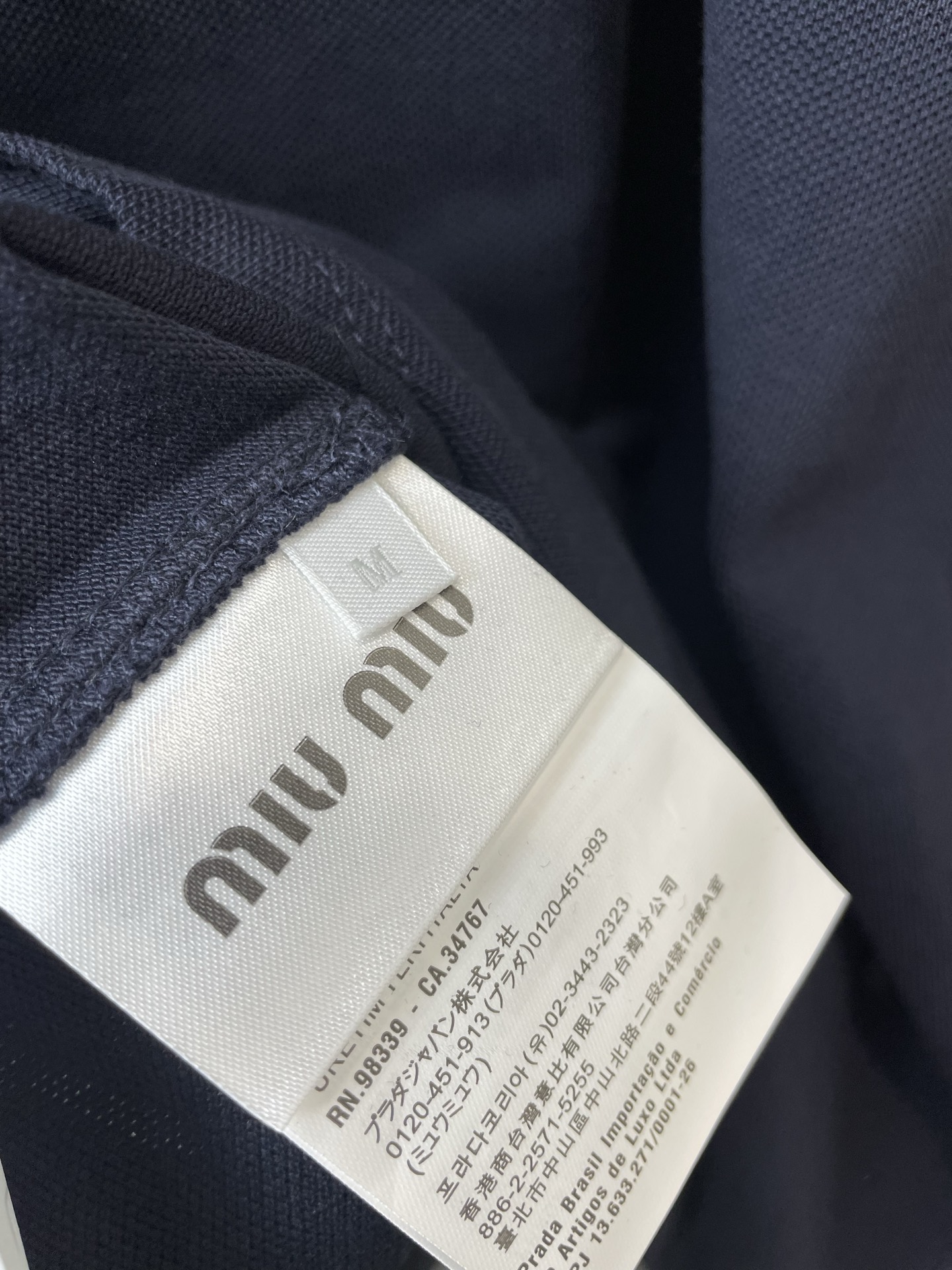 这款衣服是AAAAA 1:1 质量 (非常棒). 使用了和原版一模一样的材料. 商标部分也保持了和缪缪/Miu Miu一样. 图片拍摄是实物衣服拍摄, 您所收到的实物保证和我们图片一模一样.