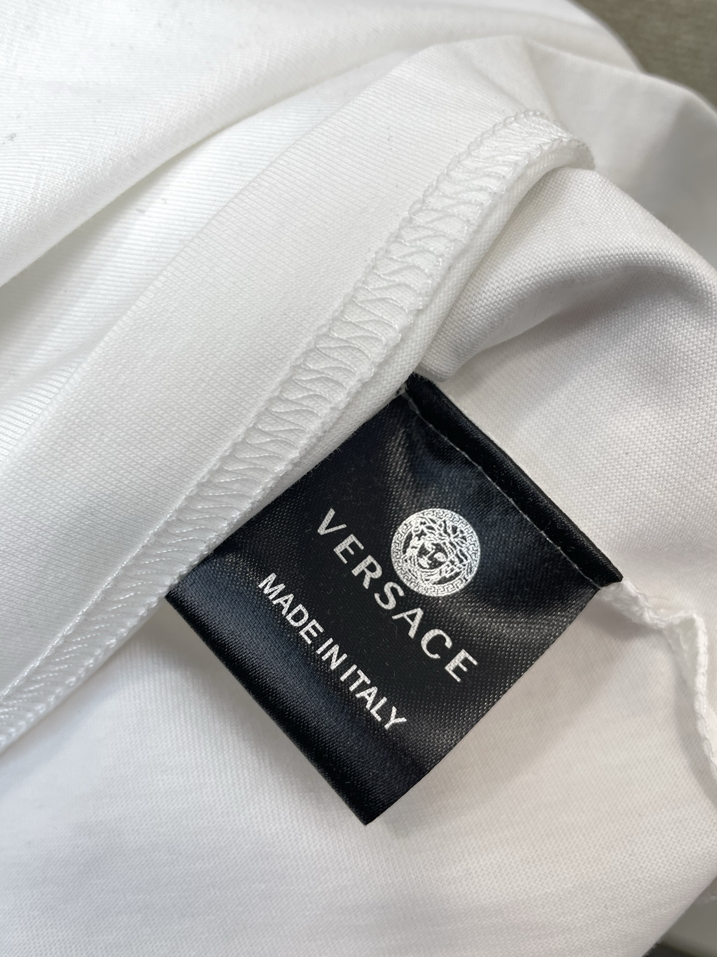 这款衣服是AAAAA 1:1 质量 (非常棒). 使用了和原版一模一样的材料. 商标部分也保持了和范思哲/Versace一样. 图片拍摄是实物衣服拍摄, 您所收到的实物保证和我们图片一模一样.