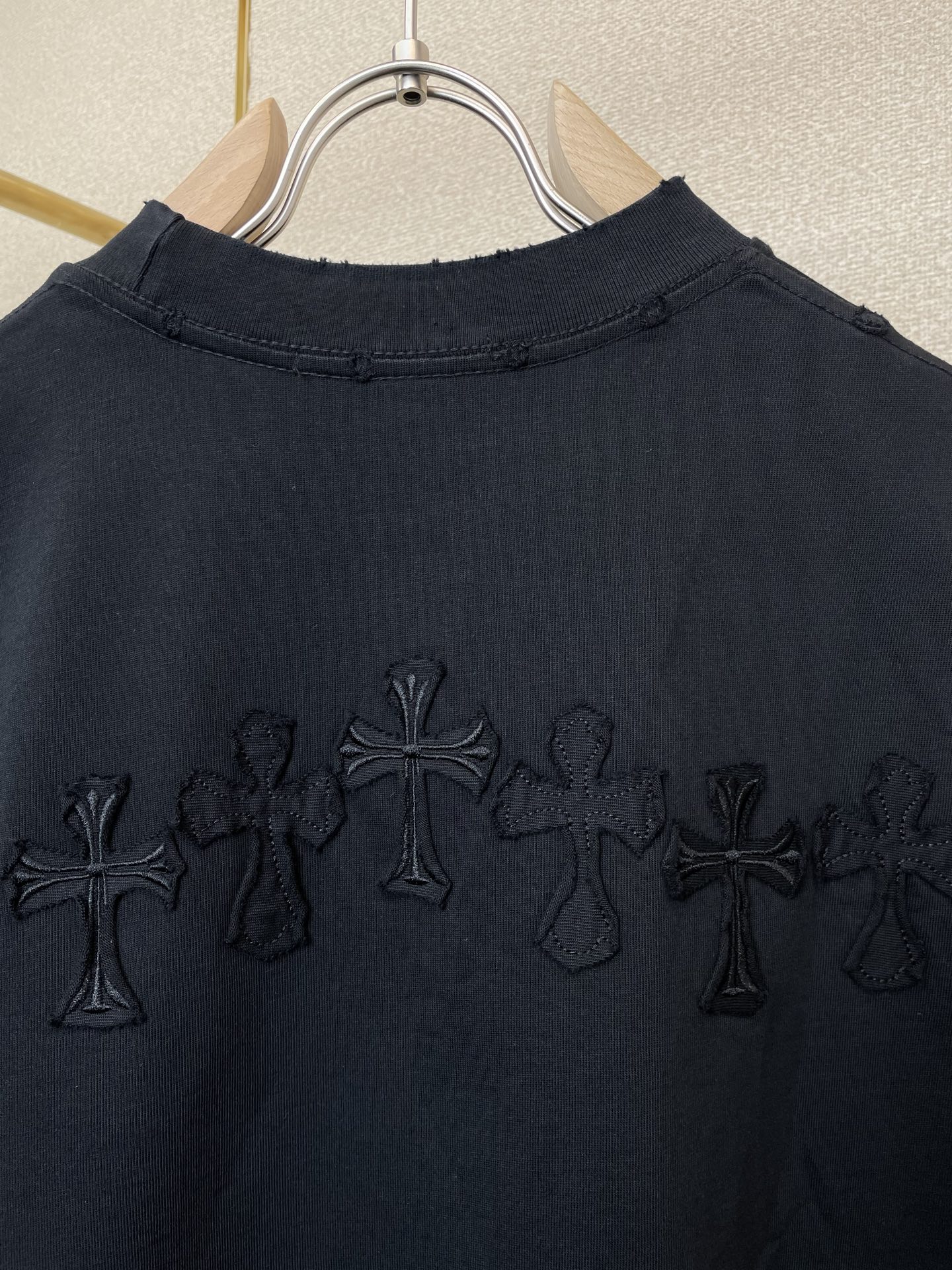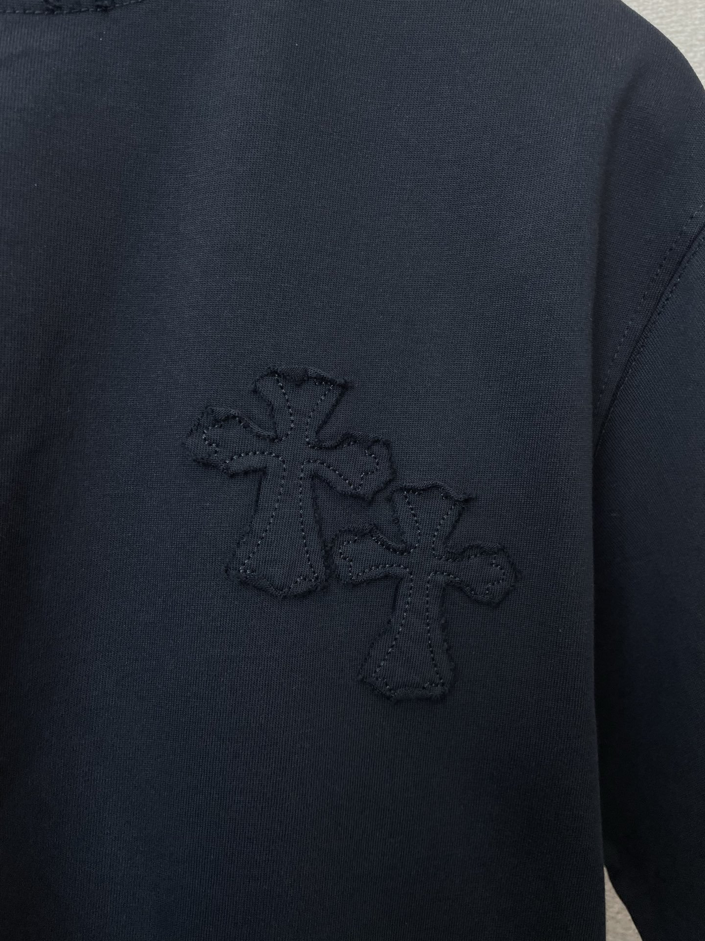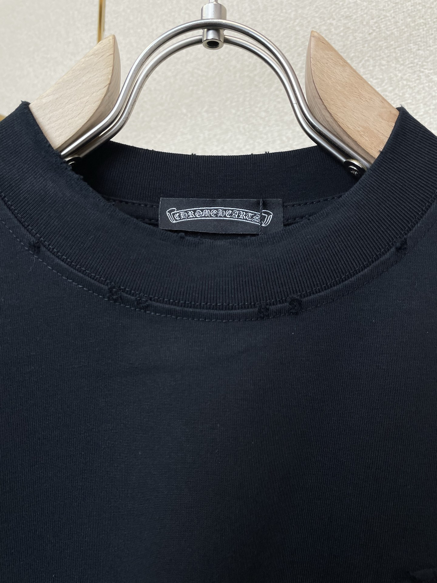 这款衣服是AAAAA 1:1 质量 (非常棒). 使用了和原版一模一样的材料. 商标部分也保持了和克罗心/Chrome Hearts一样. 图片拍摄是实物衣服拍摄, 您所收到的实物保证和我们图片一模一样.