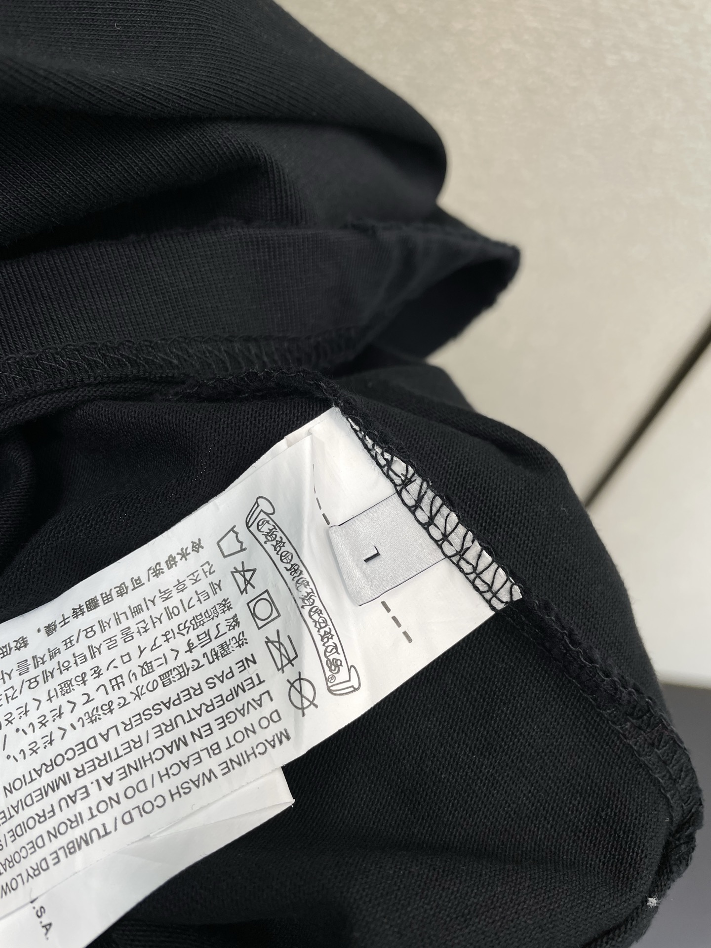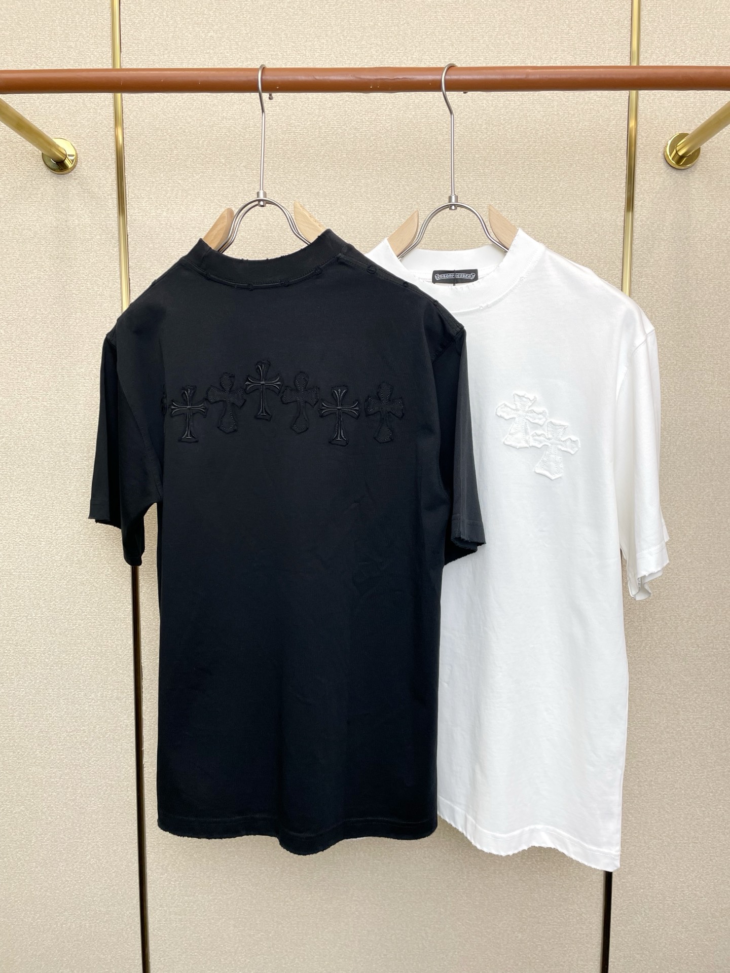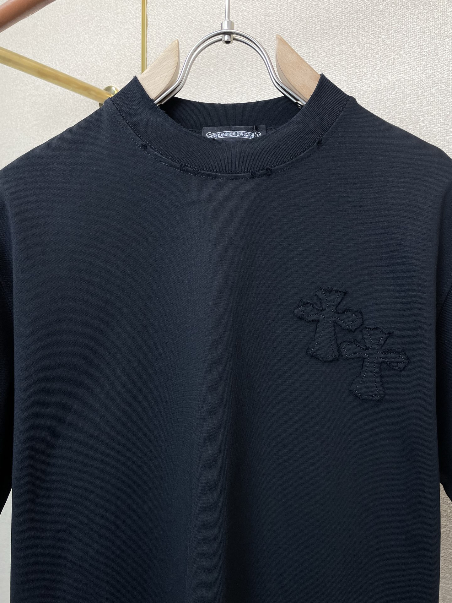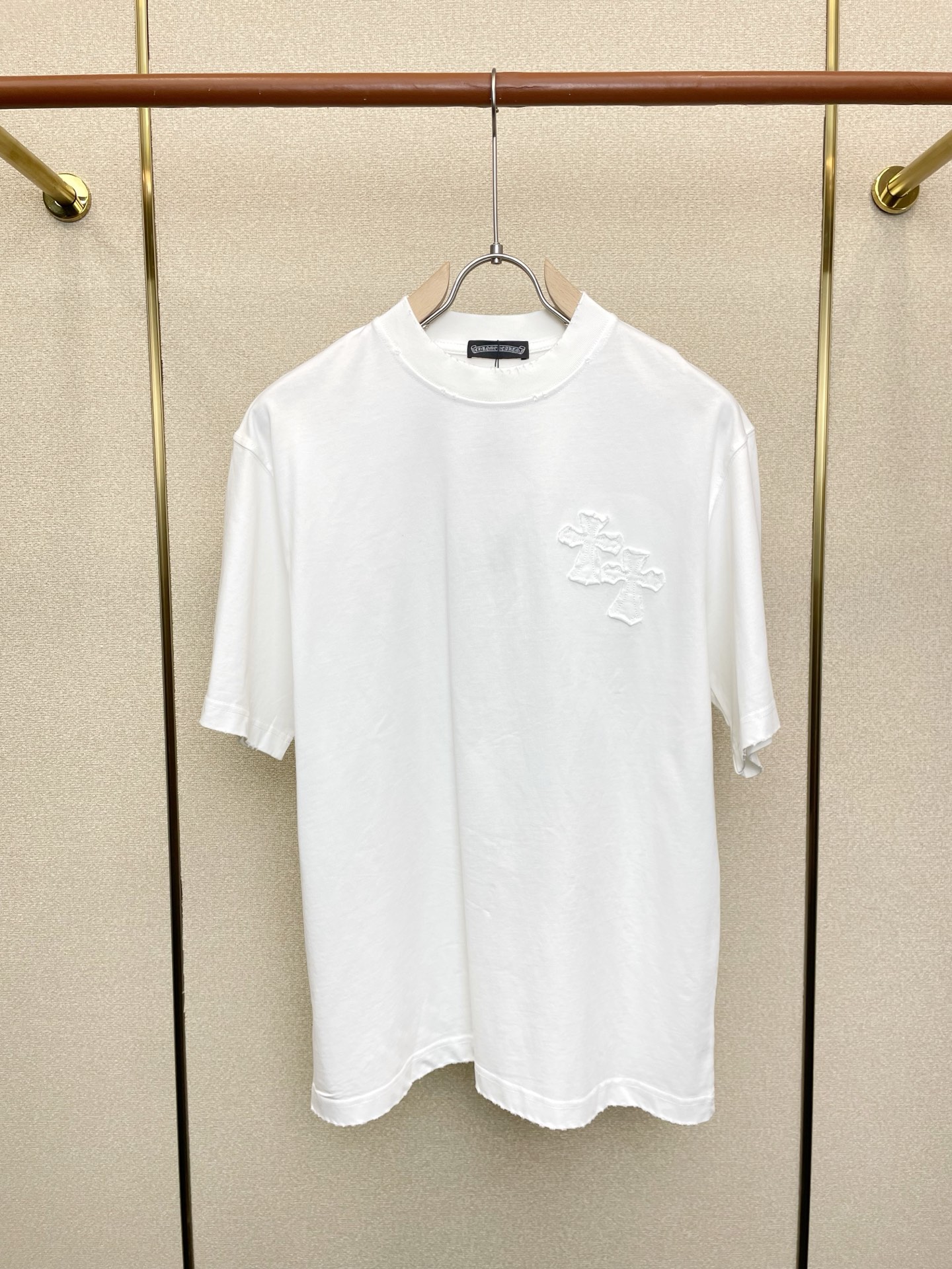 这款衣服是AAAAA 1:1 质量 (非常棒). 使用了和原版一模一样的材料. 商标部分也保持了和克罗心/Chrome Hearts一样. 图片拍摄是实物衣服拍摄, 您所收到的实物保证和我们图片一模一样.