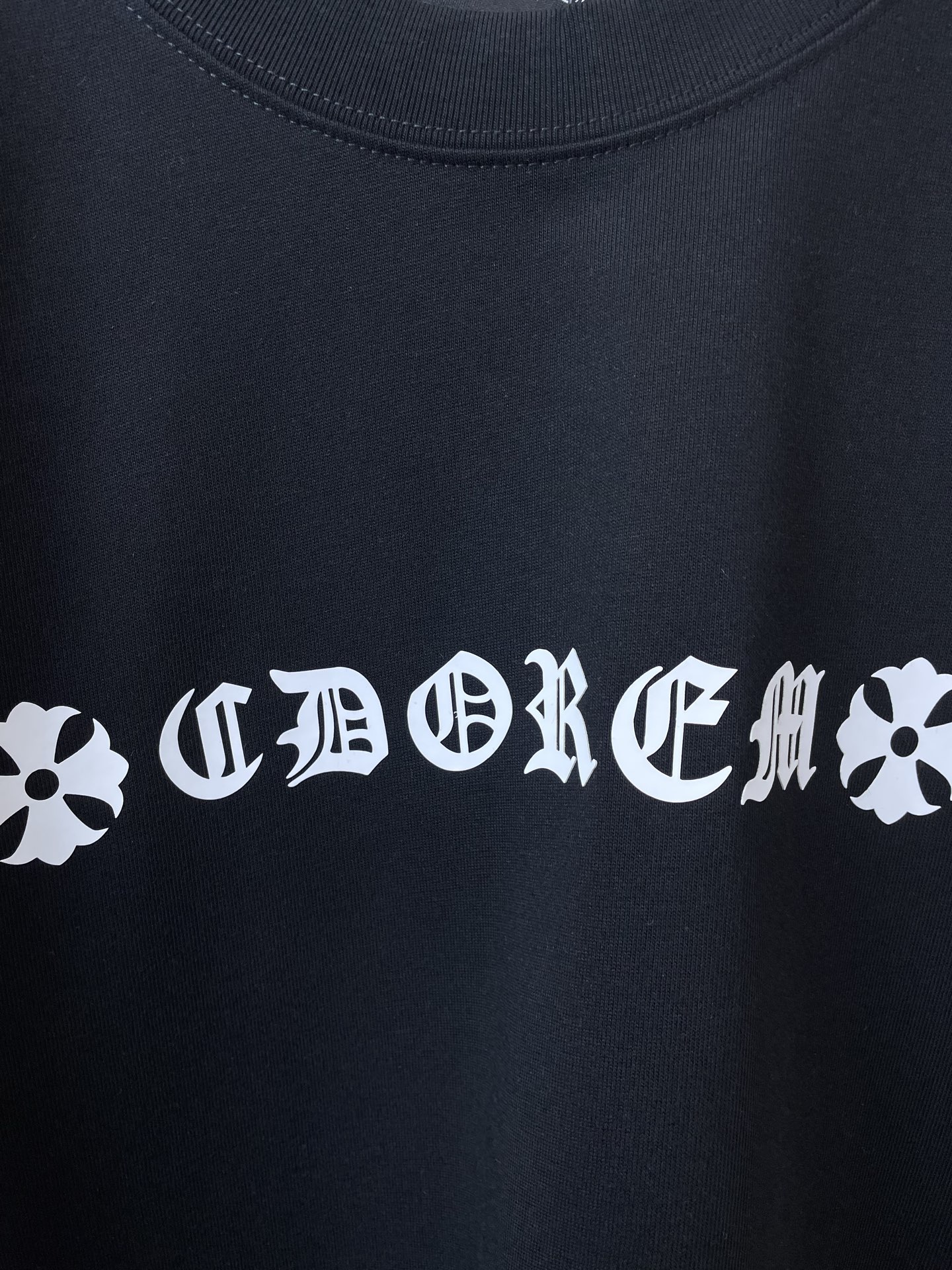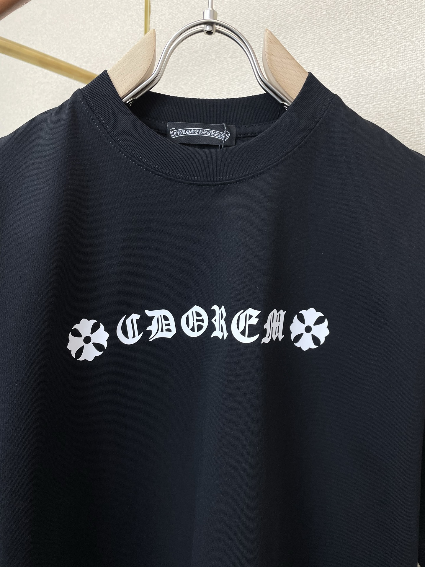 这款衣服是AAAAA 1:1 质量 (非常棒). 使用了和原版一模一样的材料. 商标部分也保持了和克罗心/Chrome Hearts一样. 图片拍摄是实物衣服拍摄, 您所收到的实物保证和我们图片一模一样.