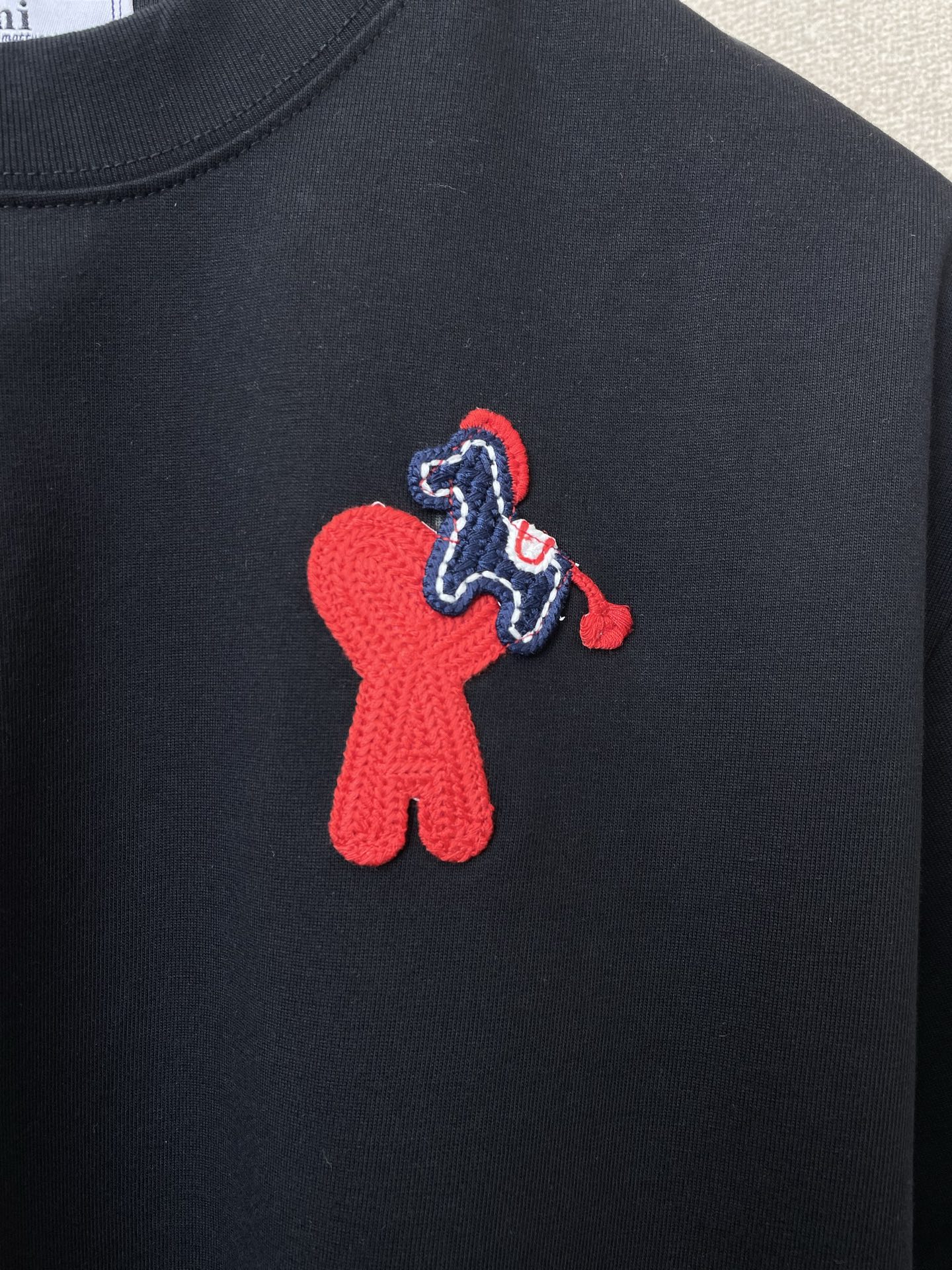 这款衣服是AAAAA 1:1 质量 (非常棒). 使用了和原版一模一样的材料. 商标部分也保持了和Ami一样. 图片拍摄是实物衣服拍摄, 您所收到的实物保证和我们图片一模一样.