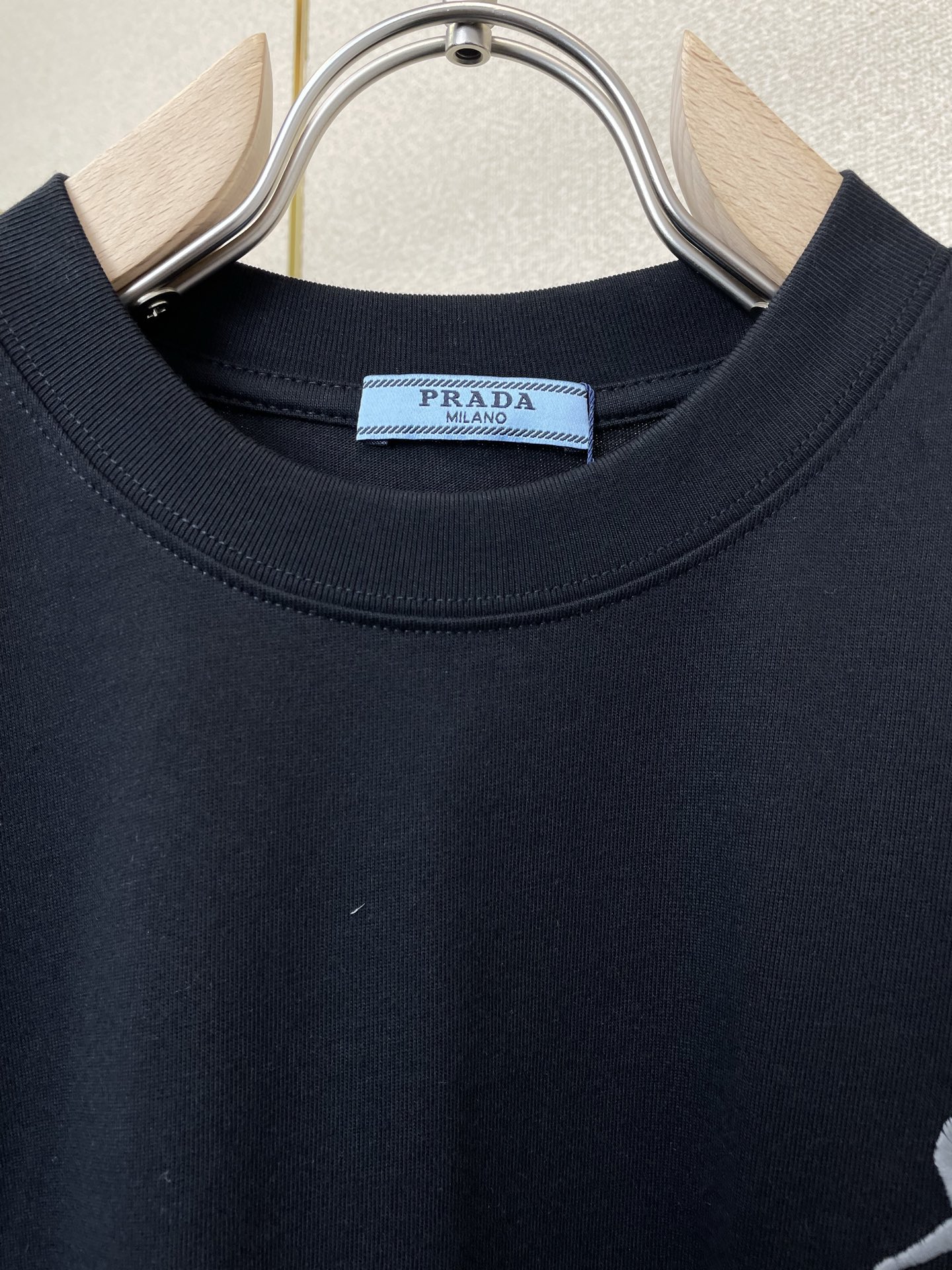 这款衣服是AAAAA 1:1 质量 (非常棒). 使用了和原版一模一样的材料. 商标部分也保持了和普拉达/Prada一样. 图片拍摄是实物衣服拍摄, 您所收到的实物保证和我们图片一模一样.
