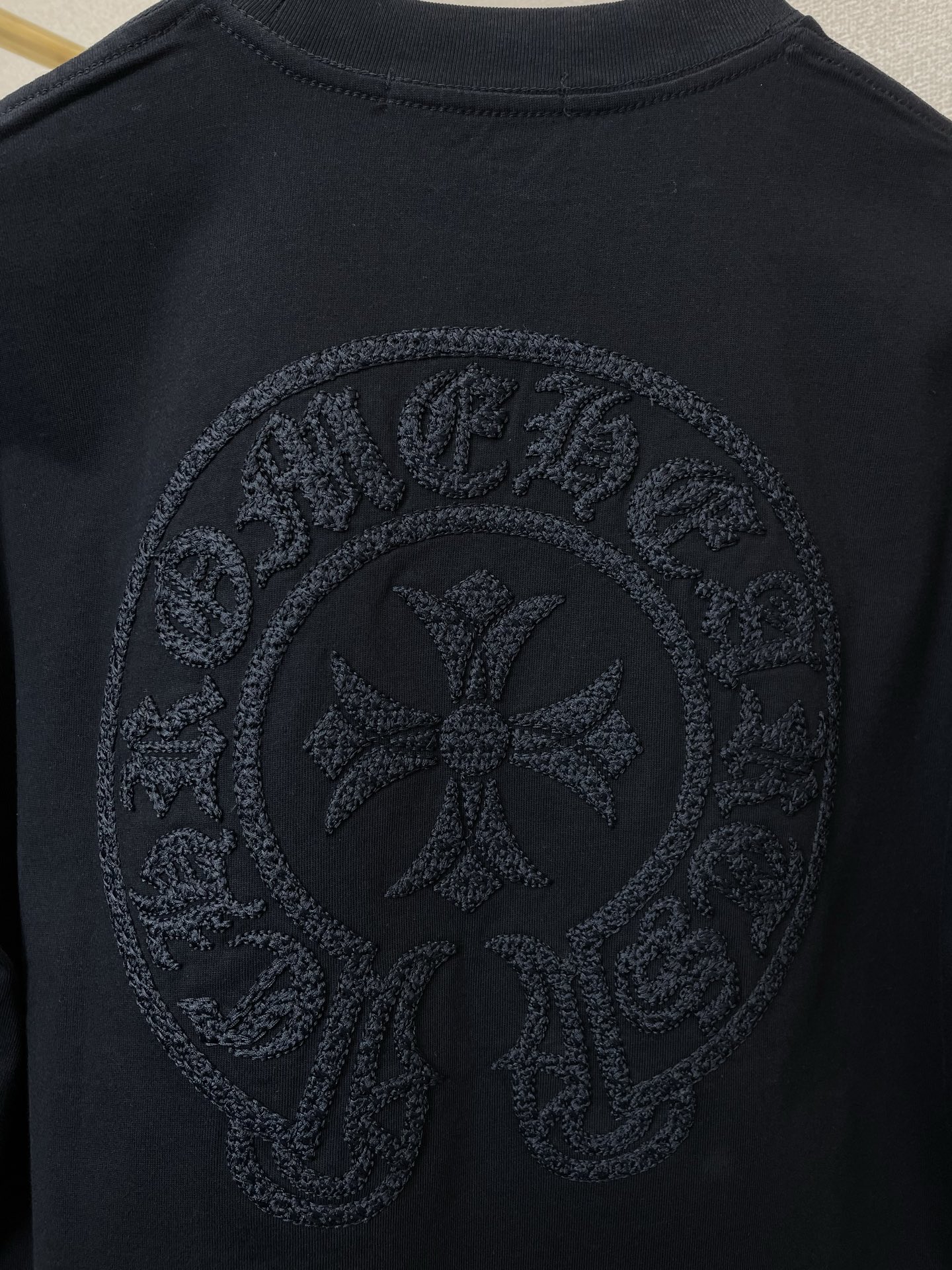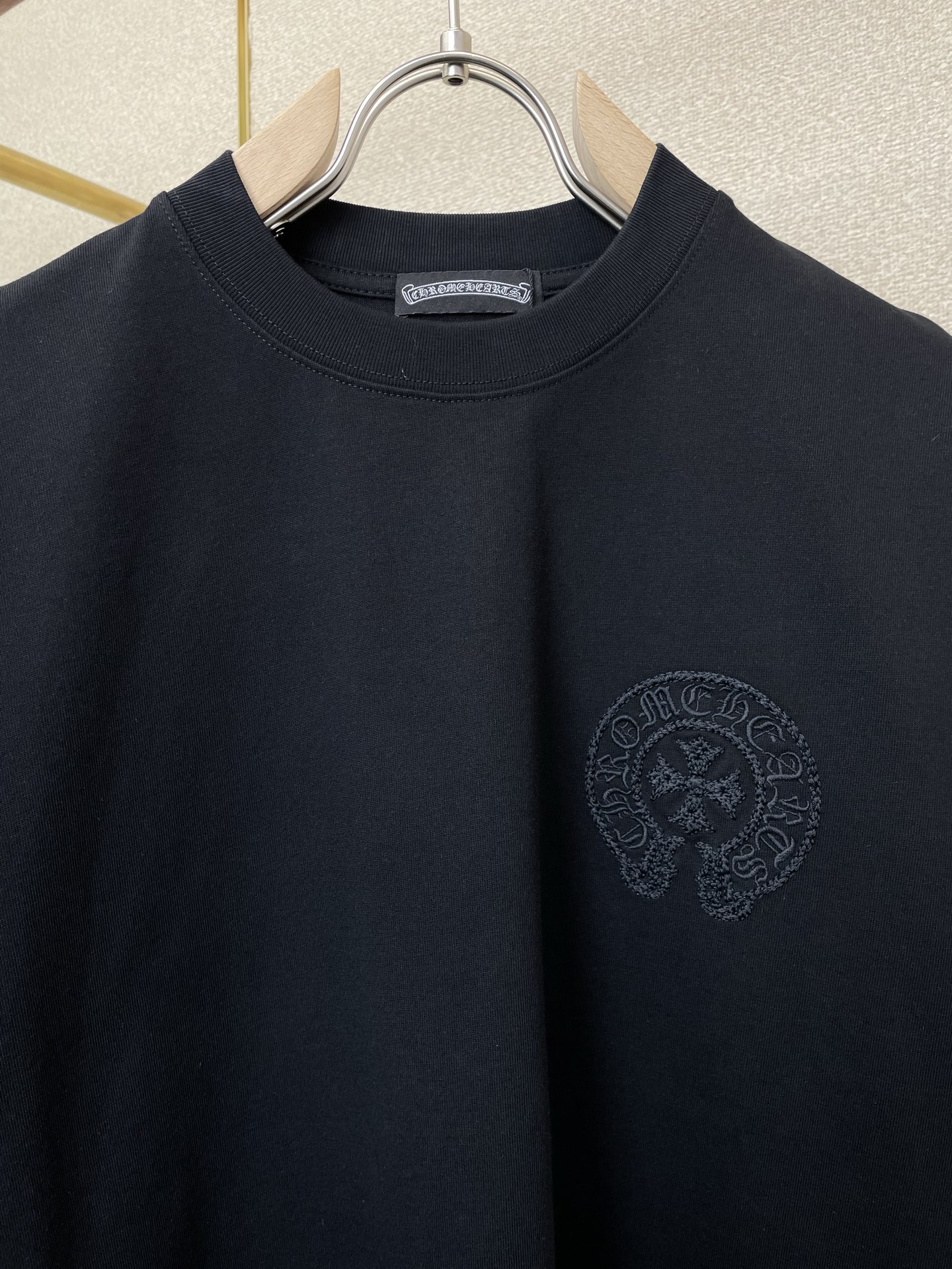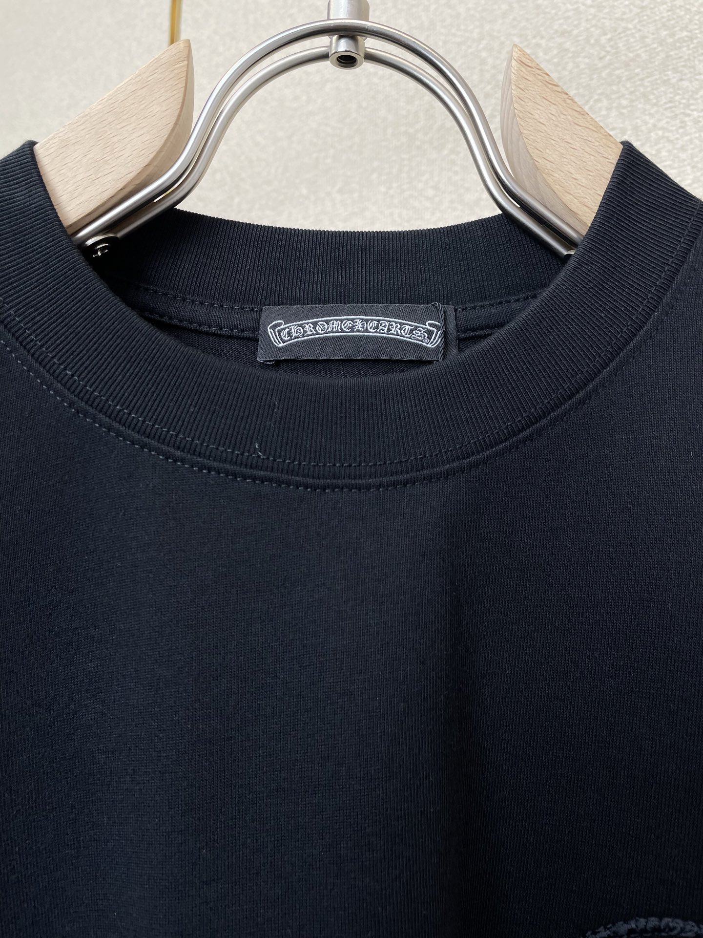 这款衣服是AAAAA 1:1 质量 (非常棒). 使用了和原版一模一样的材料. 商标部分也保持了和克罗心/Chrome Hearts一样. 图片拍摄是实物衣服拍摄, 您所收到的实物保证和我们图片一模一样.