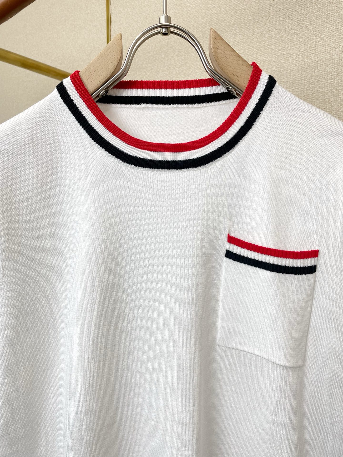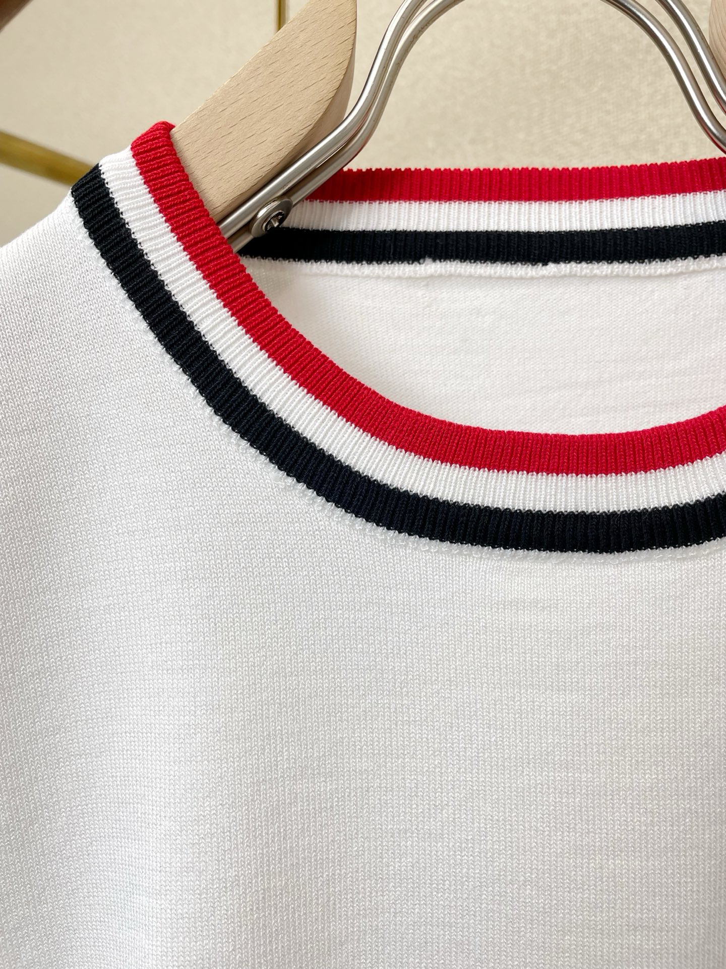 这款衣服是AAAAA 1:1 质量 (非常棒). 使用了和原版一模一样的材料. 商标部分也保持了和汤姆布朗/Thom Browne一样. 图片拍摄是实物衣服拍摄, 您所收到的实物保证和我们图片一模一样.
