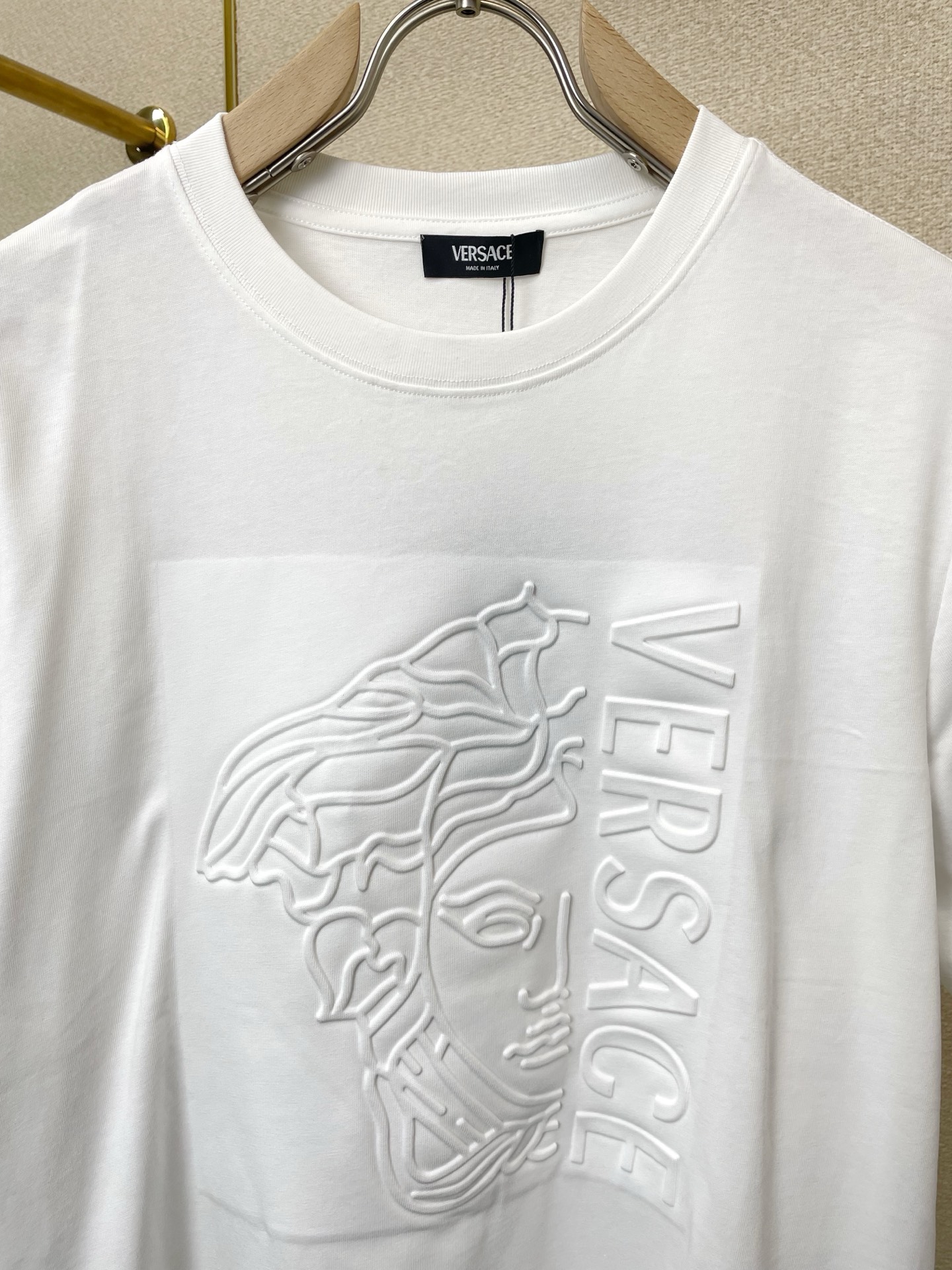 这款衣服是AAAAA 1:1 质量 (非常棒). 使用了和原版一模一样的材料. 商标部分也保持了和范思哲/Versace一样. 图片拍摄是实物衣服拍摄, 您所收到的实物保证和我们图片一模一样.
