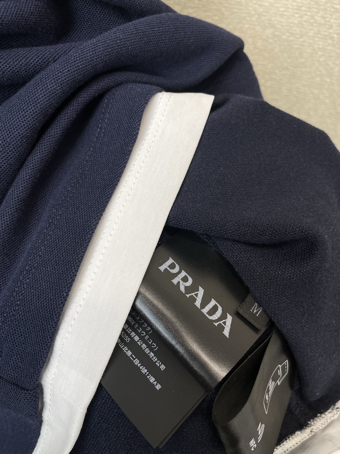 这款衣服是AAAAA 1:1 质量 (非常棒). 使用了和原版一模一样的材料. 商标部分也保持了和普拉达/Prada一样. 图片拍摄是实物衣服拍摄, 您所收到的实物保证和我们图片一模一样.