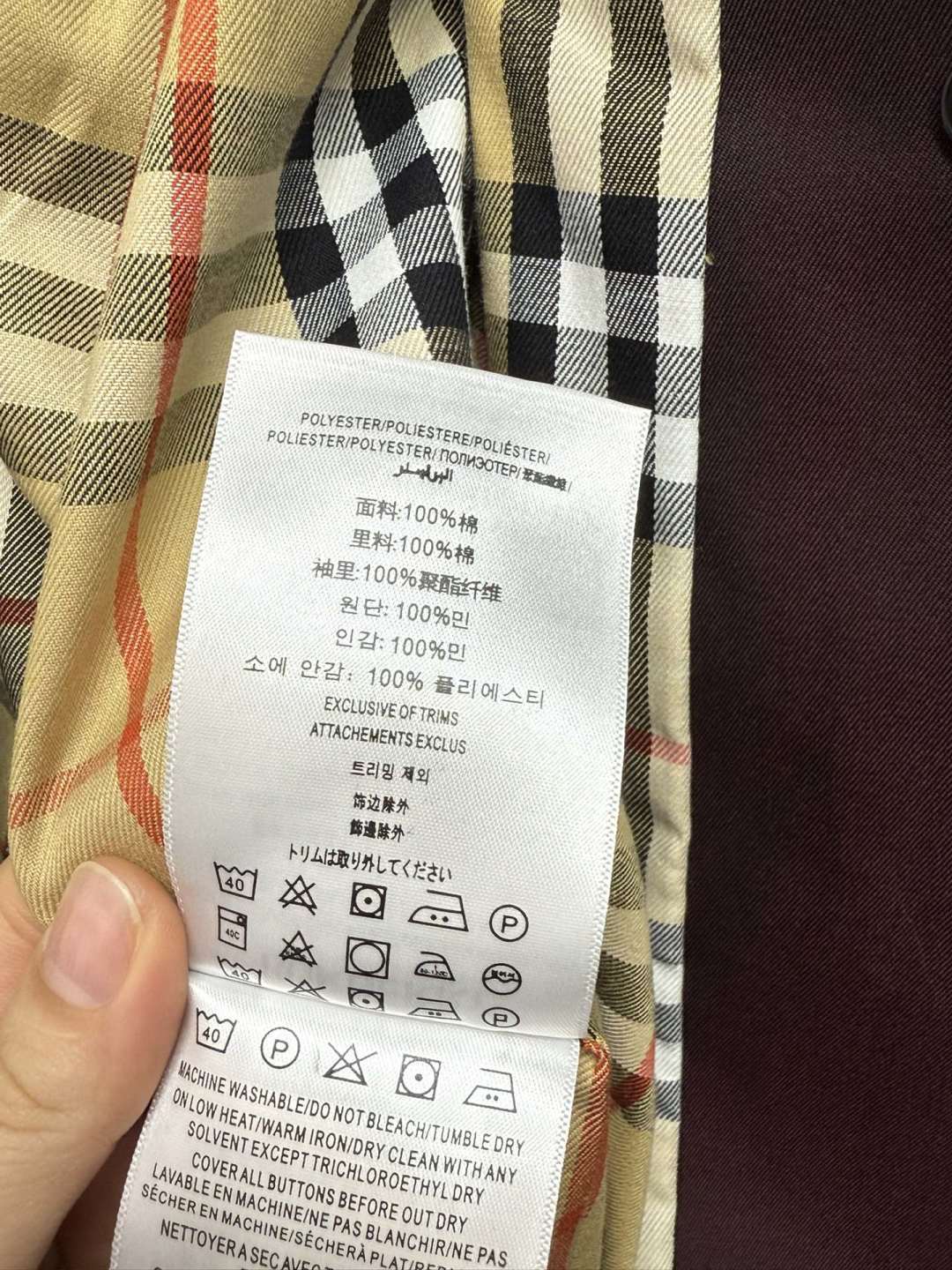 这款衣服是AAAAA 1:1 质量 (非常棒). 使用了和原版一模一样的材料. 商标部分也保持了和巴宝莉/Burberry一样. 图片拍摄是实物衣服拍摄, 您所收到的实物保证和我们图片一模一样.
