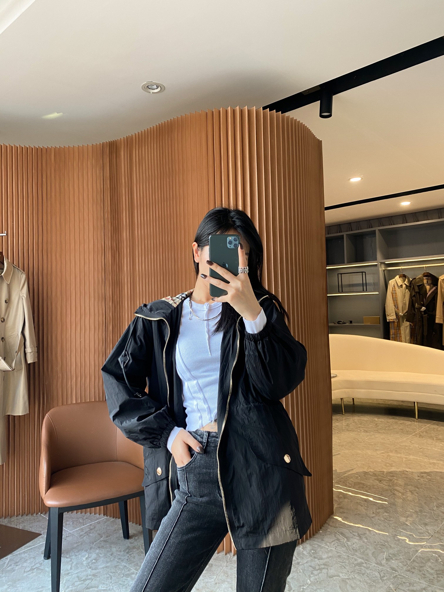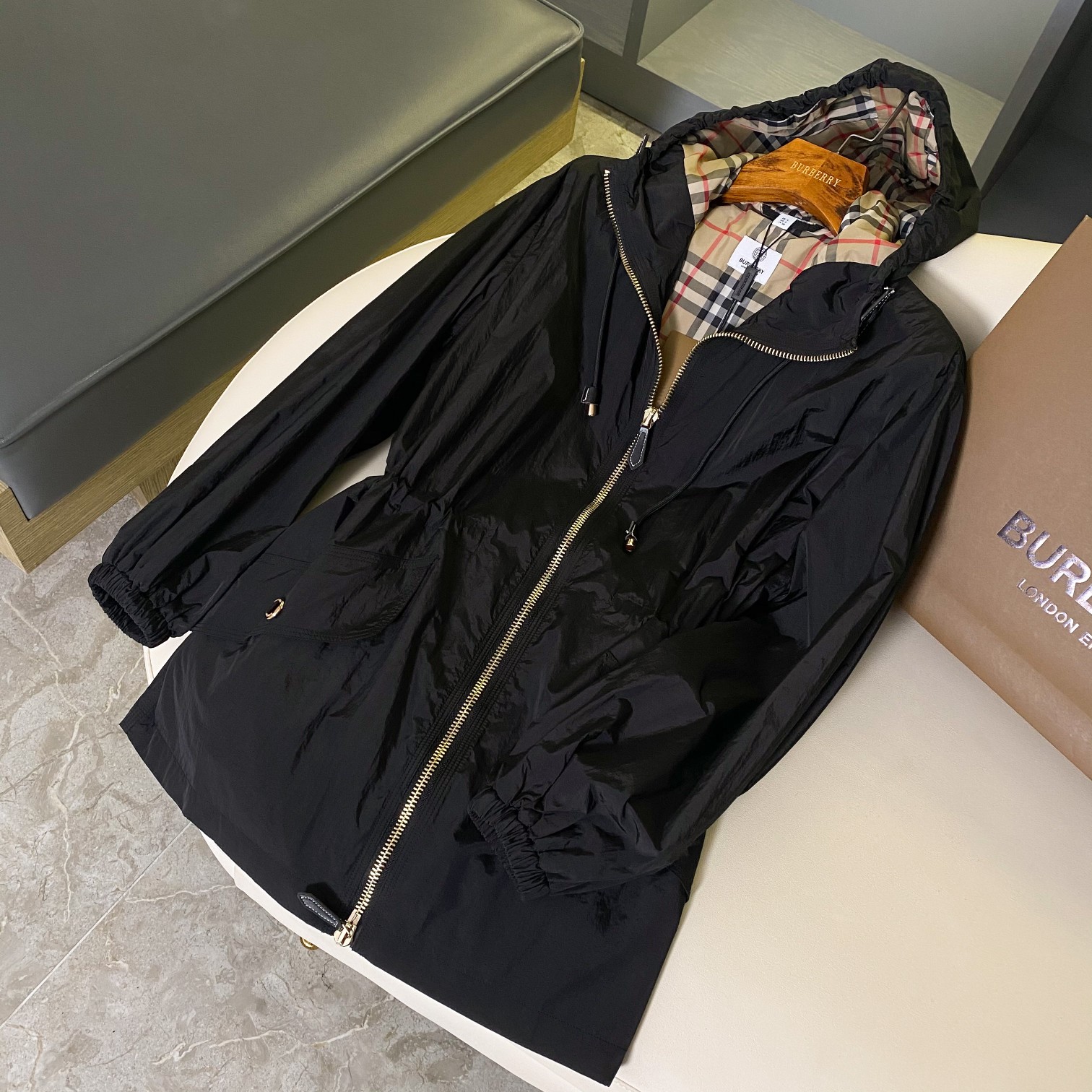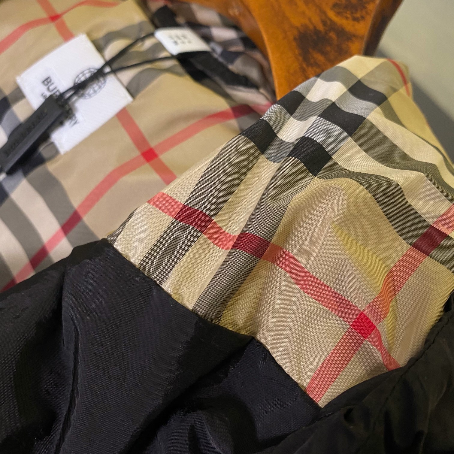 这款衣服是AAAAA 1:1 质量 (非常棒). 使用了和原版一模一样的材料. 商标部分也保持了和巴宝莉/Burberry一样. 图片拍摄是实物衣服拍摄, 您所收到的实物保证和我们图片一模一样.