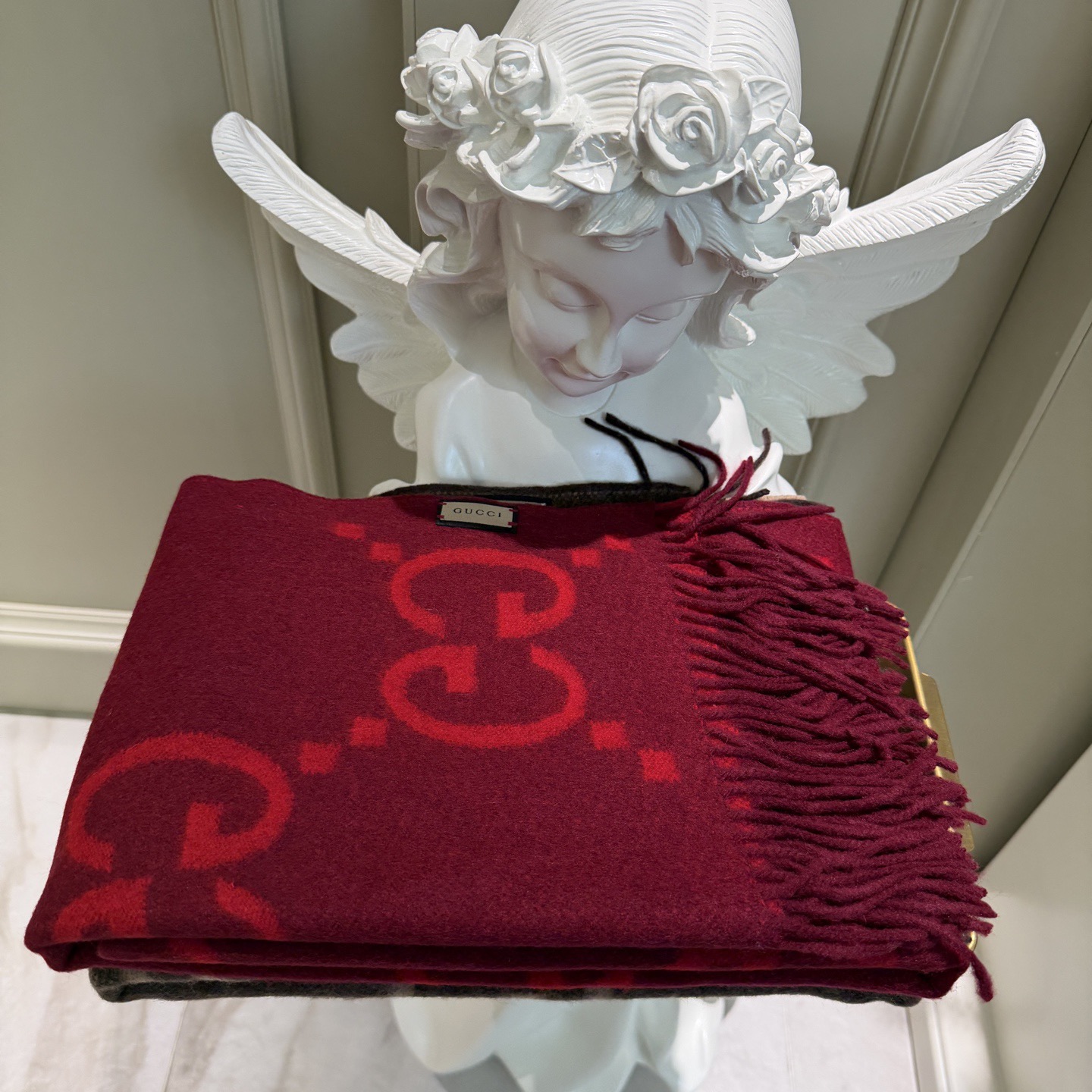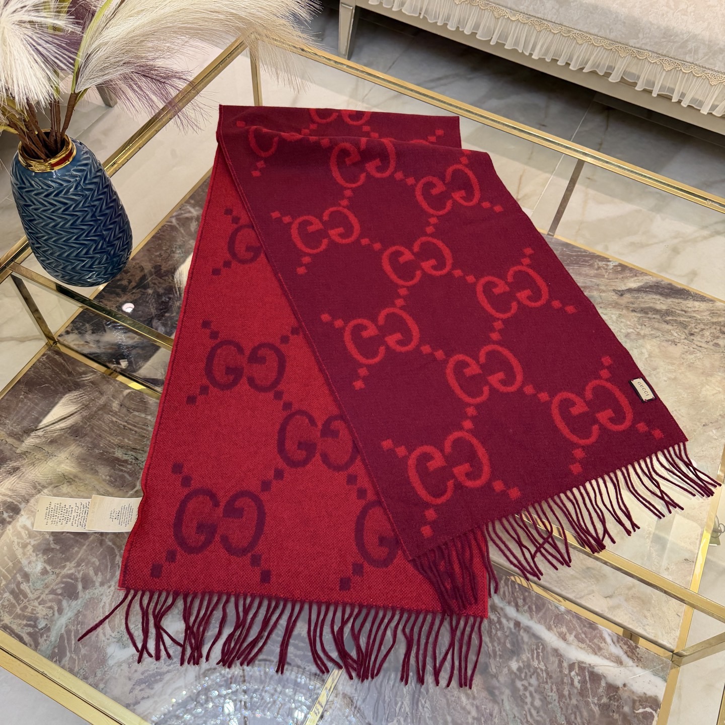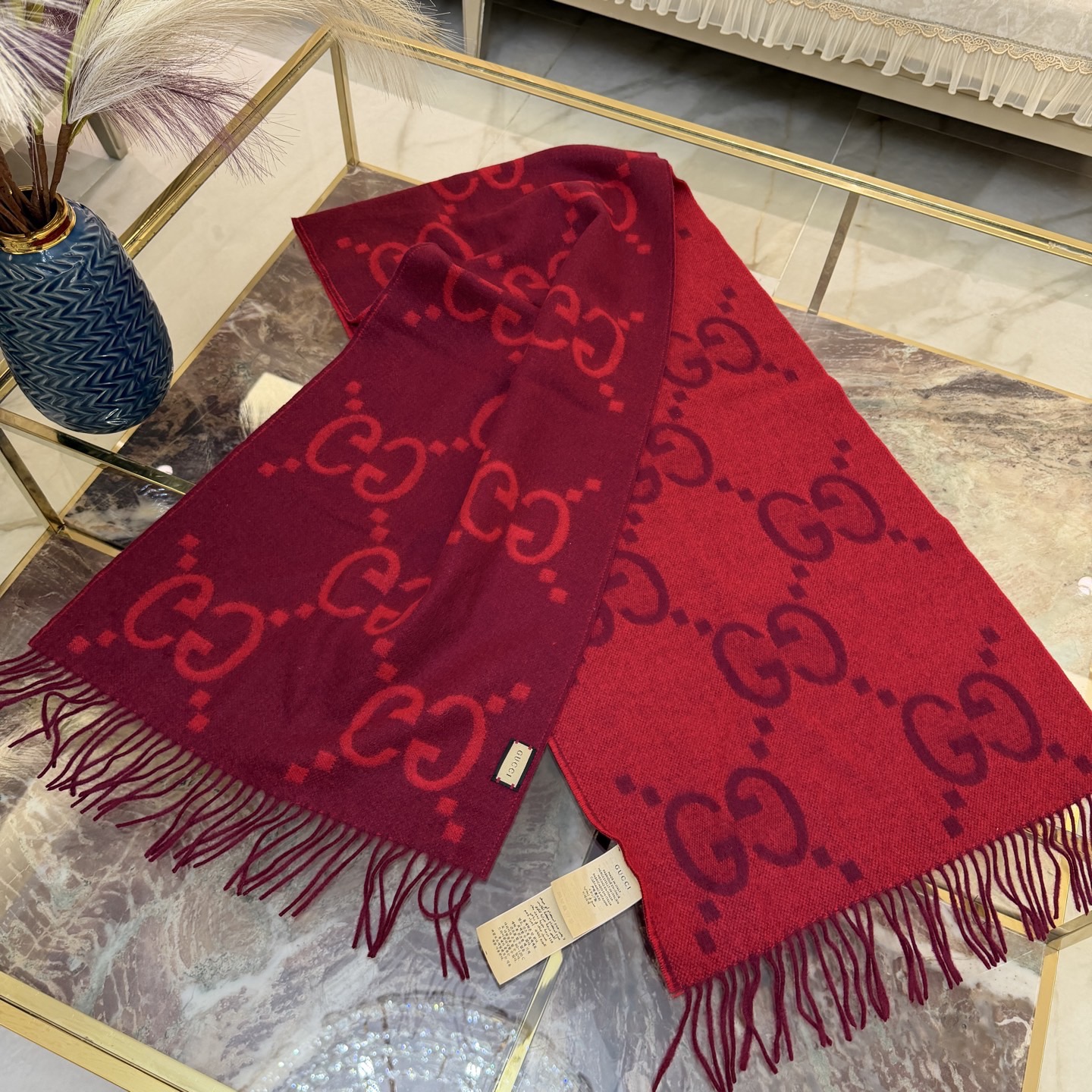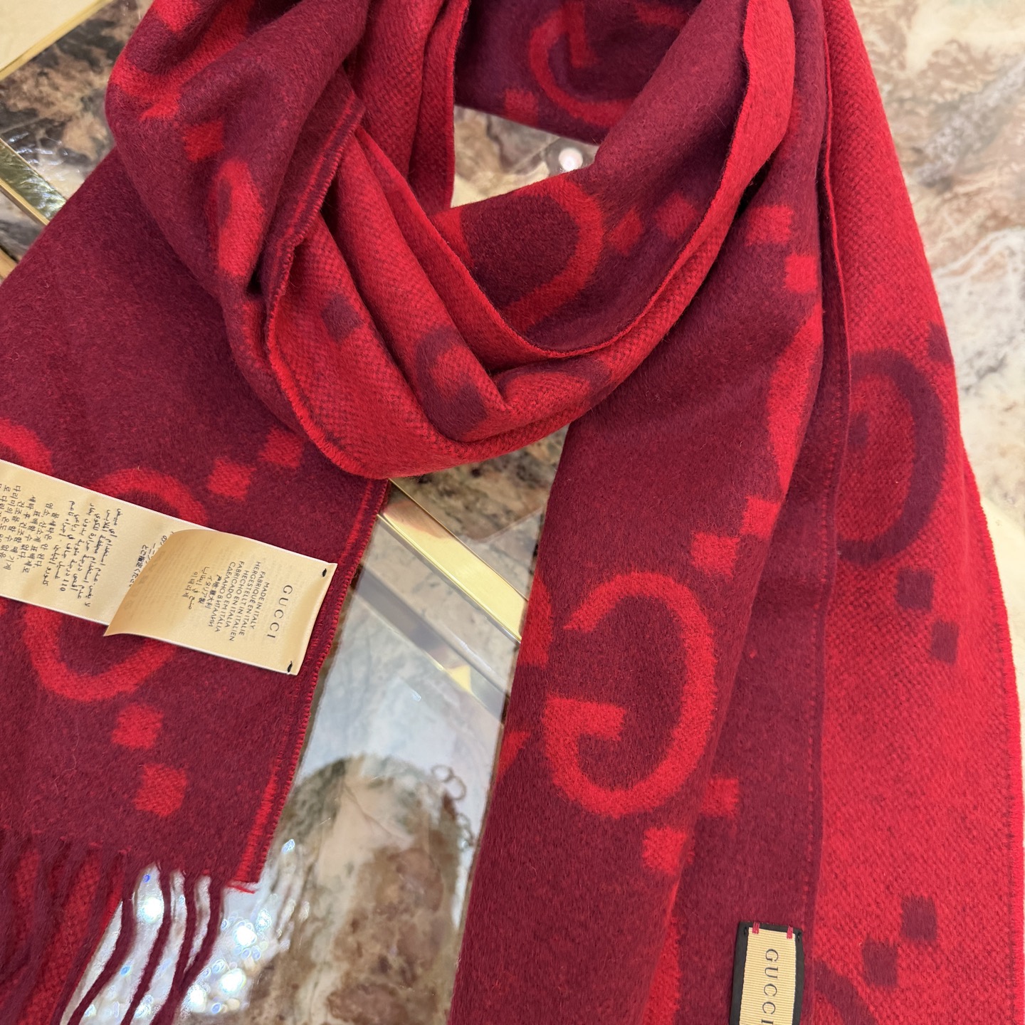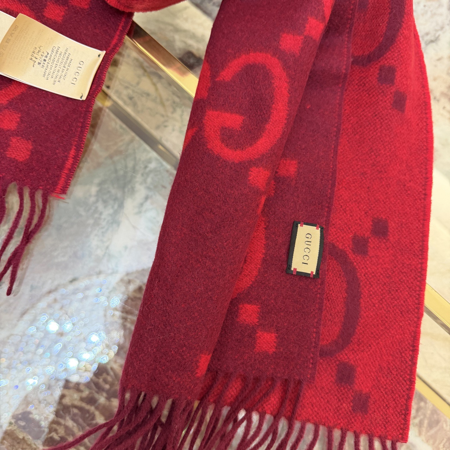 这款围巾是AAAAA 1:1 质量 (非常棒). 使用了和原版一模一样的材料. 商标部分也保持了和古奇/Gucci一样. 图片拍摄是实物围巾拍摄, 您所收到的实物保证和我们图片一模一样.