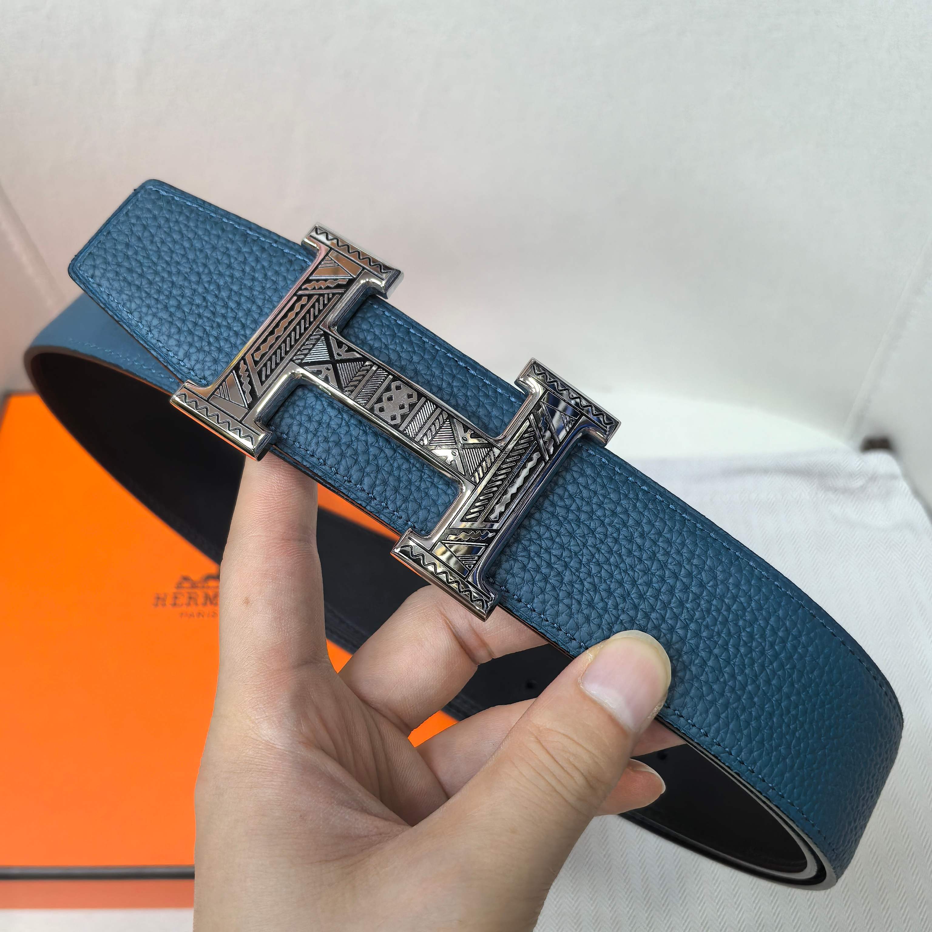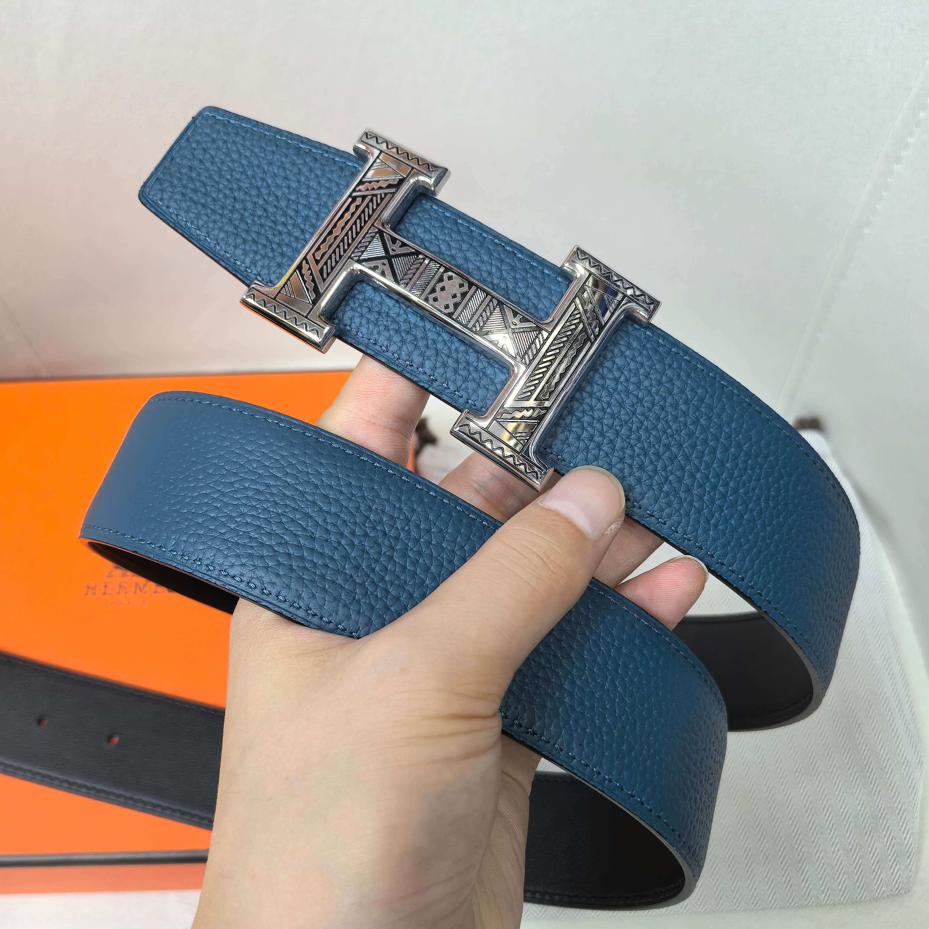 这款皮带是AAAAA 1:1 质量 (非常棒). 使用了和原版一模一样的材料. 商标部分也保持了和爱马仕/Hermes一样. 图片拍摄是实物皮带拍摄, 您所收到的实物保证和我们图片一模一样.