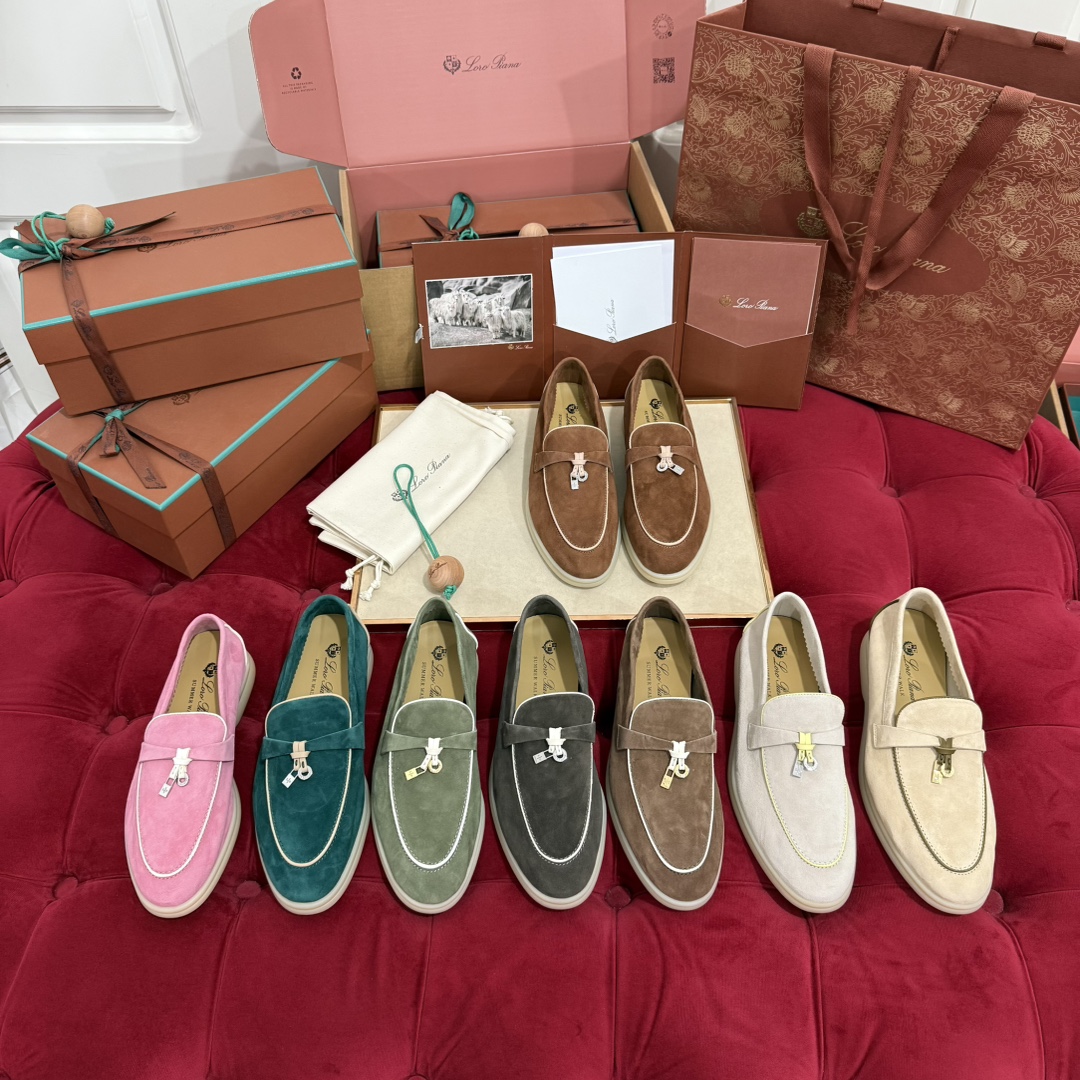 这款鞋子是AAAAA 1:1 质量 (非常棒). 使用了和原版一模一样的材料. 商标部分也保持了和洛罗皮亚纳/Loro Piana一样. 图片拍摄是实物鞋子拍摄, 您所收到的实物保证和我们图片一模一样.