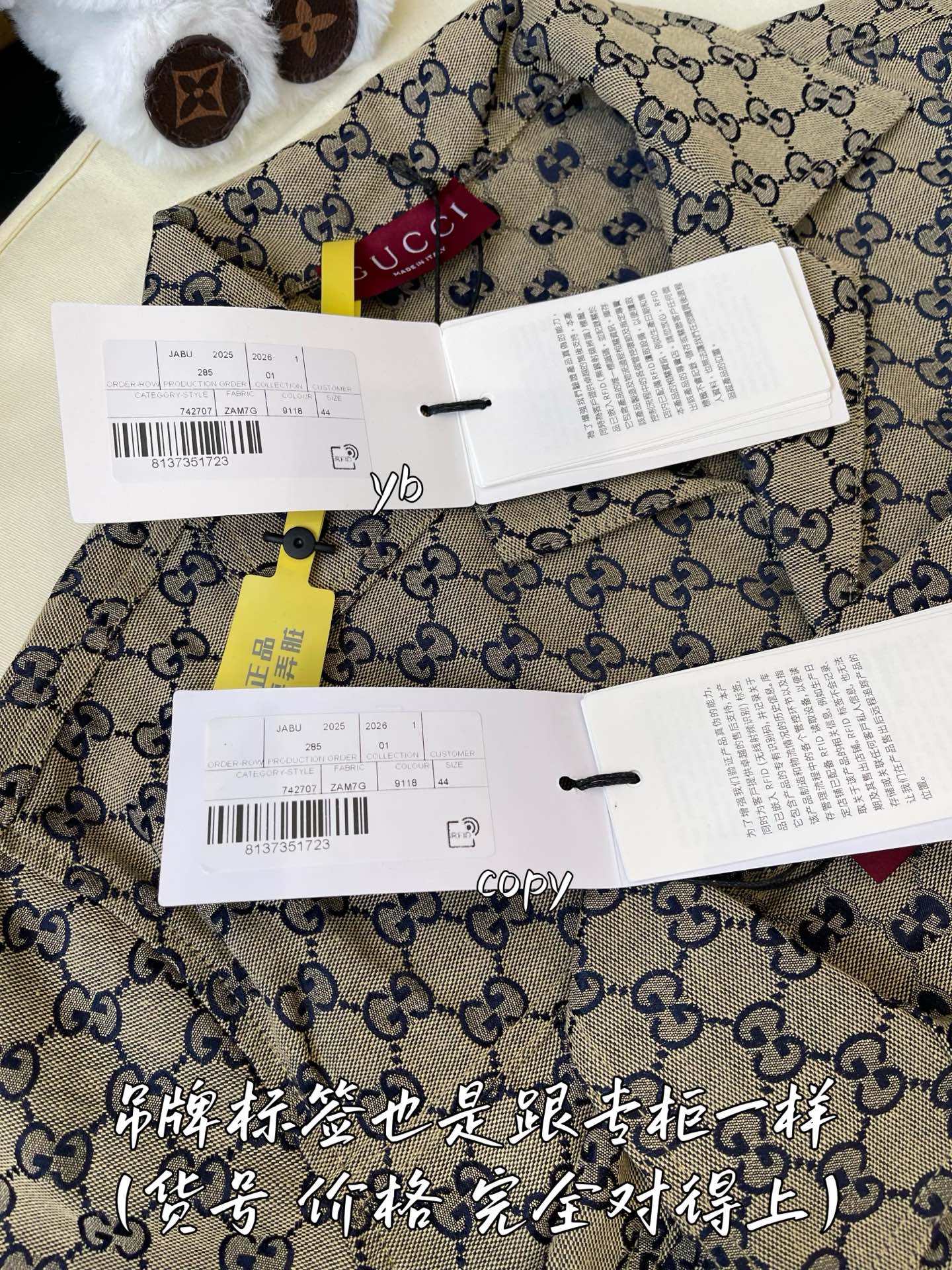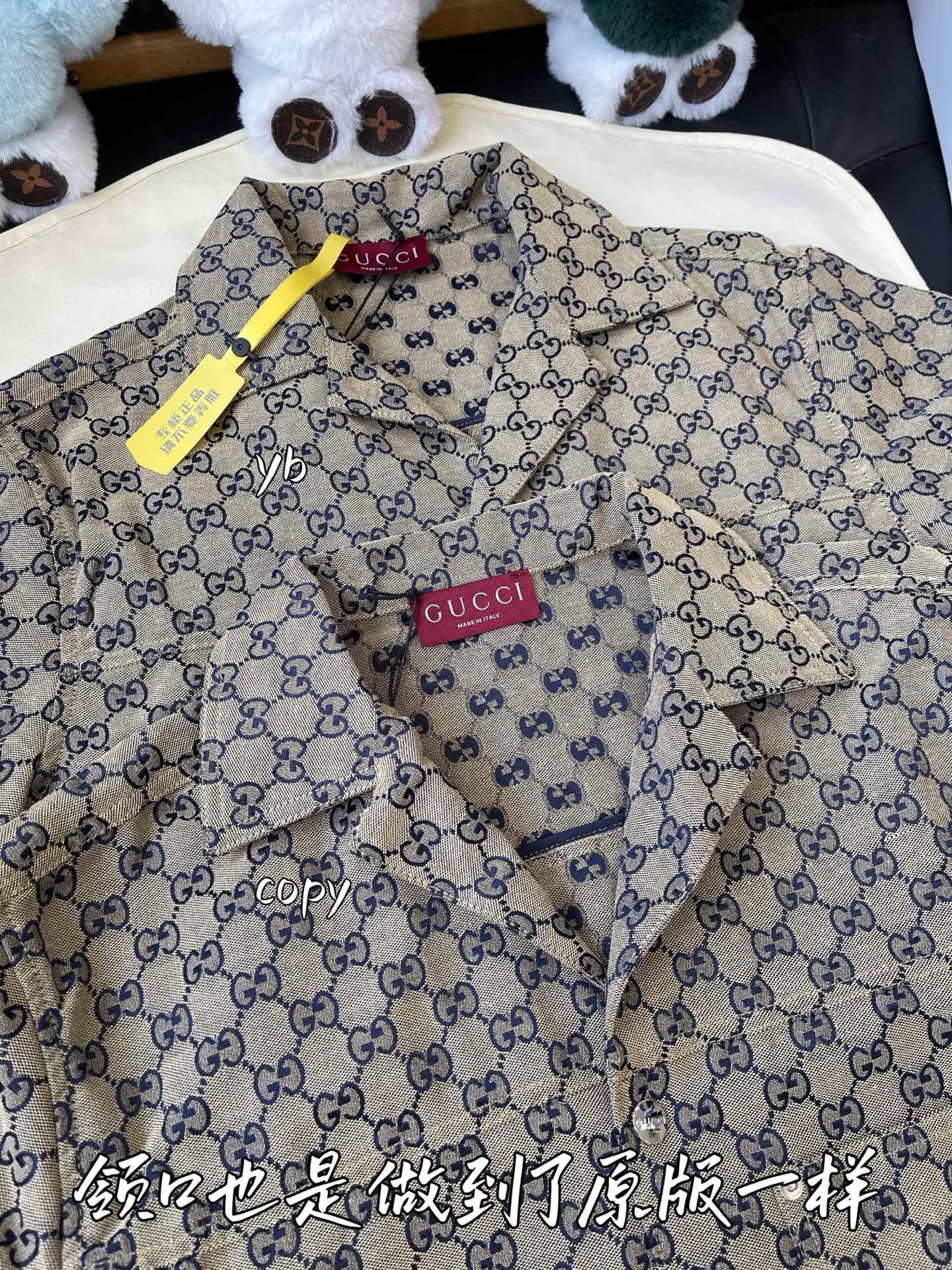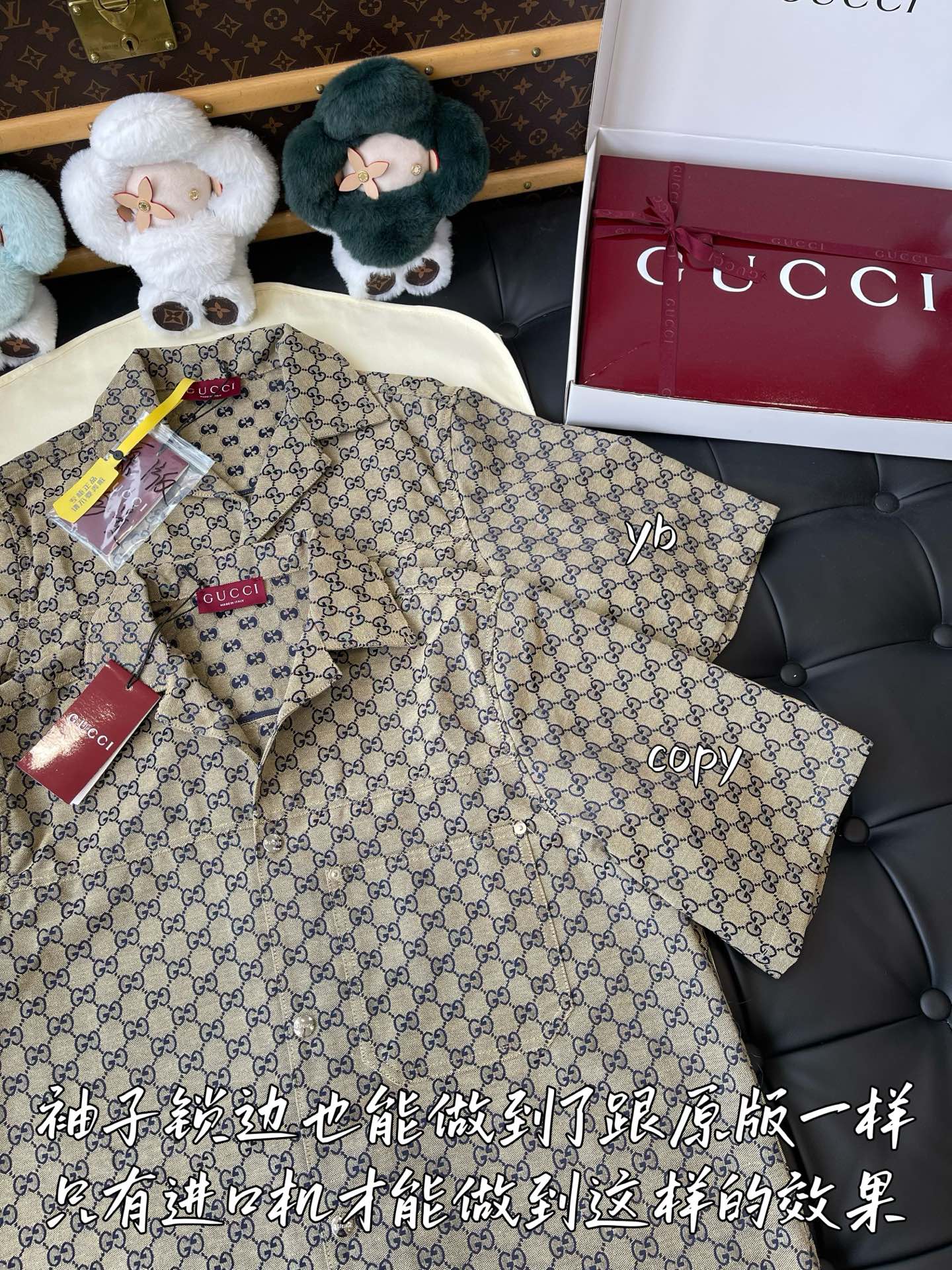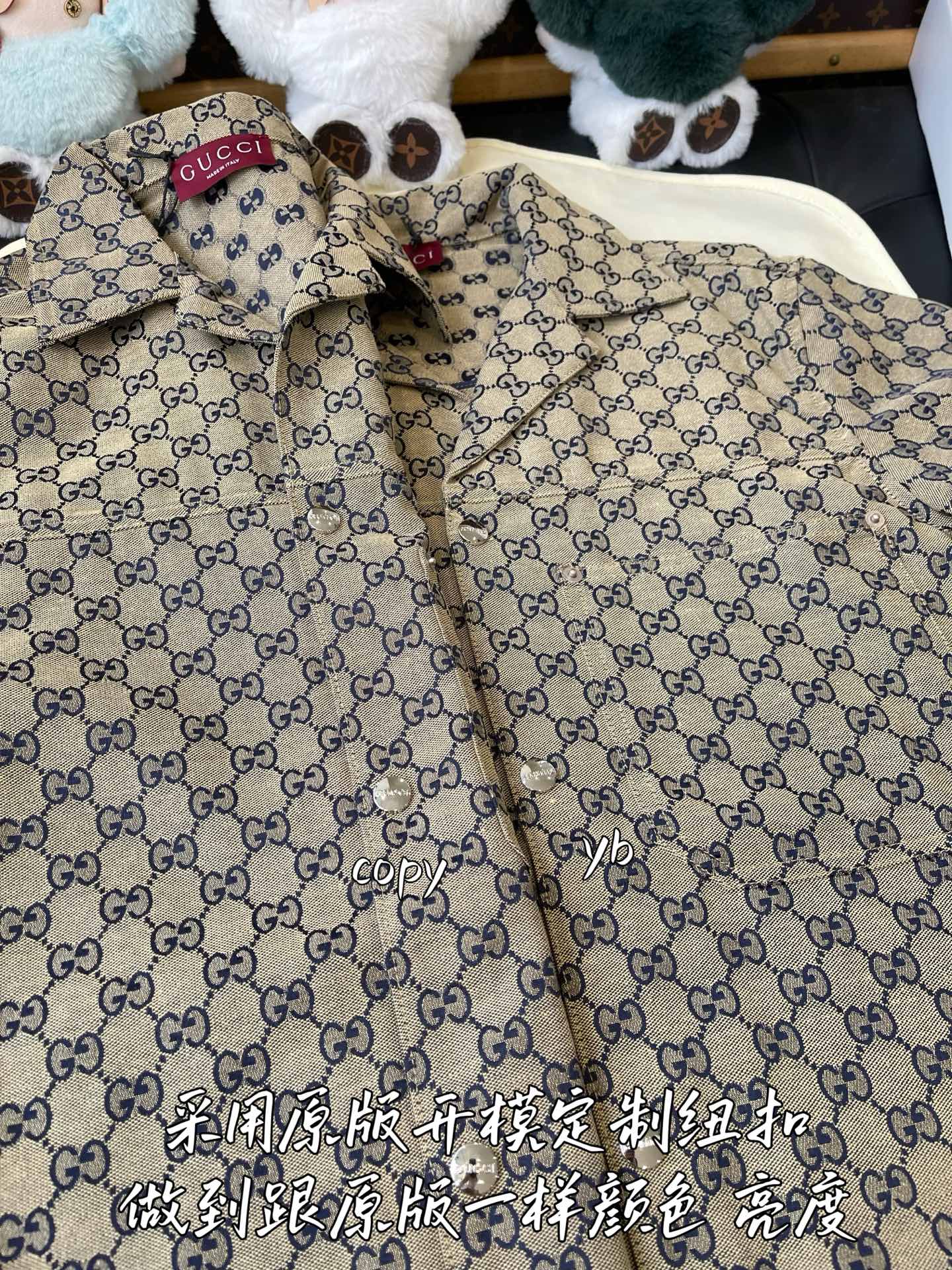 这款衣服是AAAAA 1:1 质量 (非常棒). 使用了和原版一模一样的材料. 商标部分也保持了和古奇/Gucci一样. 图片拍摄是实物衣服拍摄, 您所收到的实物保证和我们图片一模一样.