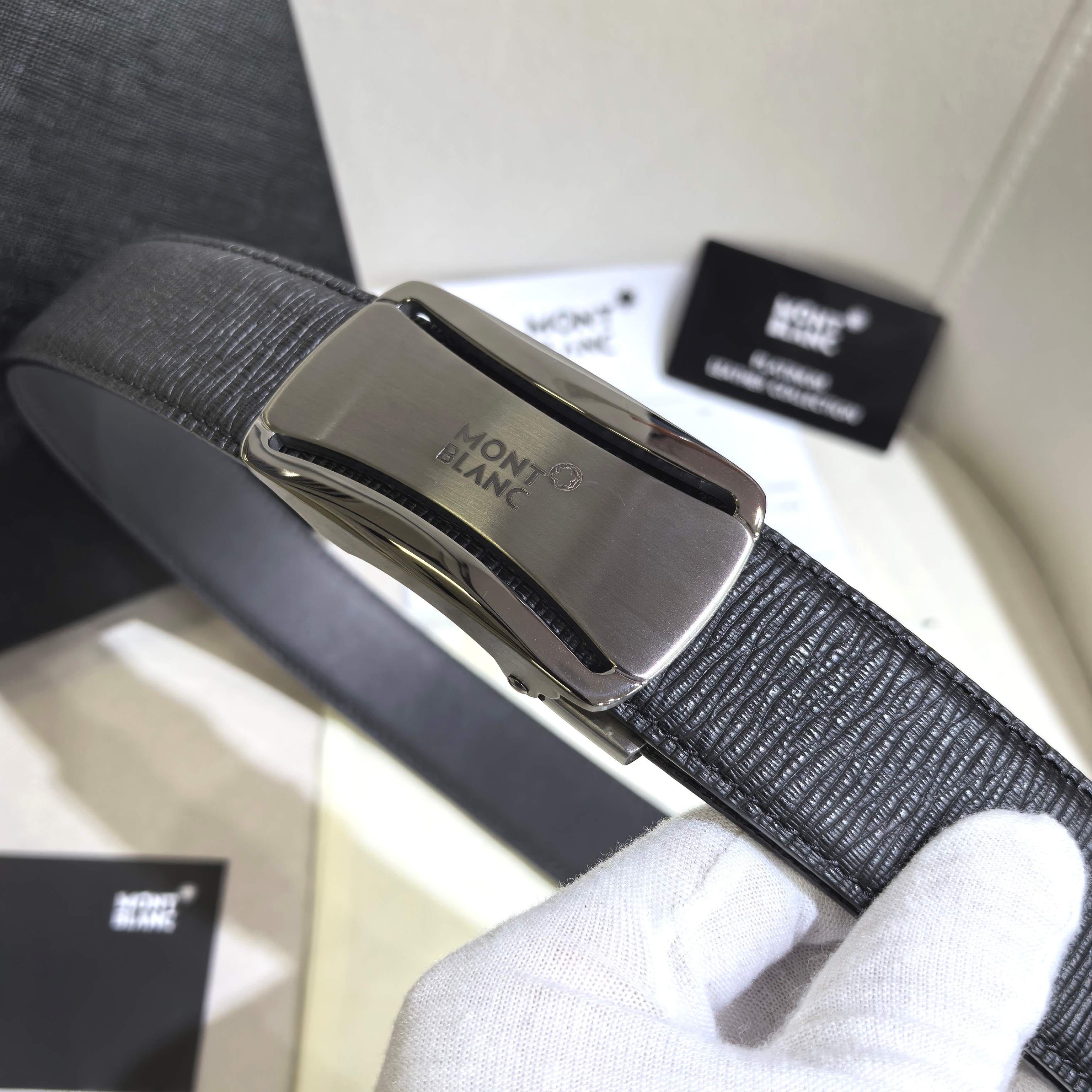 这款皮带是AAAAA 1:1 质量 (非常棒). 使用了和原版一模一样的材料. 商标部分也保持了和万宝龙/Montblanc一样. 图片拍摄是实物皮带拍摄, 您所收到的实物保证和我们图片一模一样.