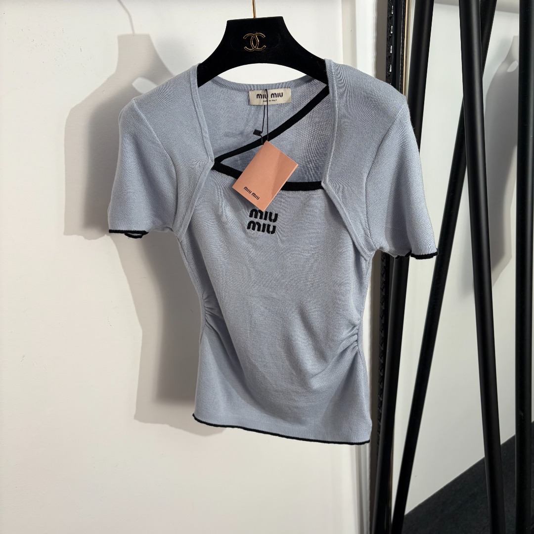 这款衣服是AAAAA 1:1 质量 (非常棒). 使用了和原版一模一样的材料. 商标部分也保持了和缪缪/Miu Miu一样. 图片拍摄是实物衣服拍摄, 您所收到的实物保证和我们图片一模一样.