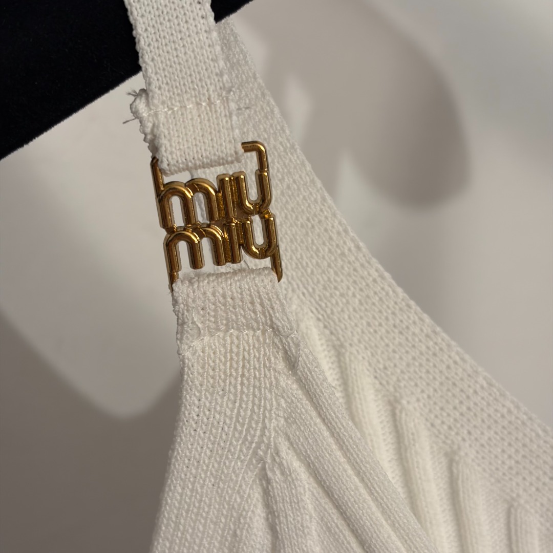 这款衣服是AAAAA 1:1 质量 (非常棒). 使用了和原版一模一样的材料. 商标部分也保持了和缪缪/Miu Miu一样. 图片拍摄是实物衣服拍摄, 您所收到的实物保证和我们图片一模一样.