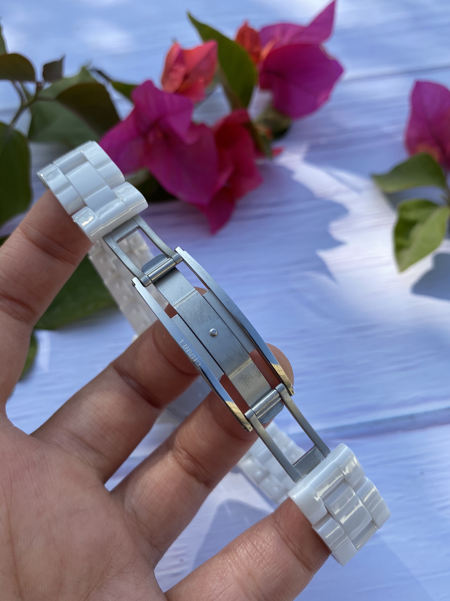 这款手表是AAAAA 1:1 质量 (非常棒). 使用了和原版一模一样的材料. 商标部分也保持了和香奈儿/Chanel一样. 图片拍摄是实物手表拍摄, 您所收到的实物保证和我们图片一模一样.