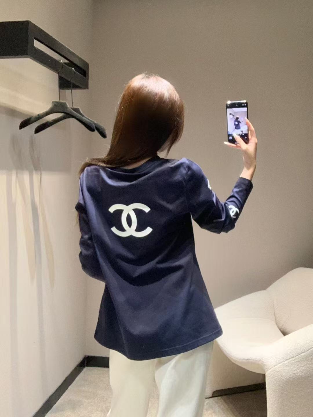 这款衣服是AAAAA 1:1 质量 (非常棒). 使用了和原版一模一样的材料. 商标部分也保持了和香奈儿/Chanel一样. 图片拍摄是实物衣服拍摄, 您所收到的实物保证和我们图片一模一样.