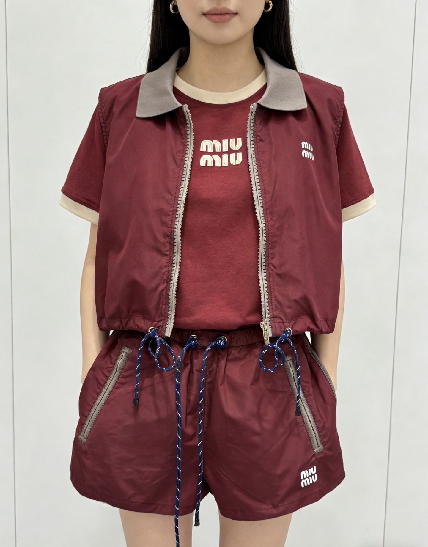 这款衣服是AAAAA 1:1 质量 (非常棒). 使用了和原版一模一样的材料. 商标部分也保持了和缪缪/Miu Miu一样. 图片拍摄是实物衣服拍摄, 您所收到的实物保证和我们图片一模一样.