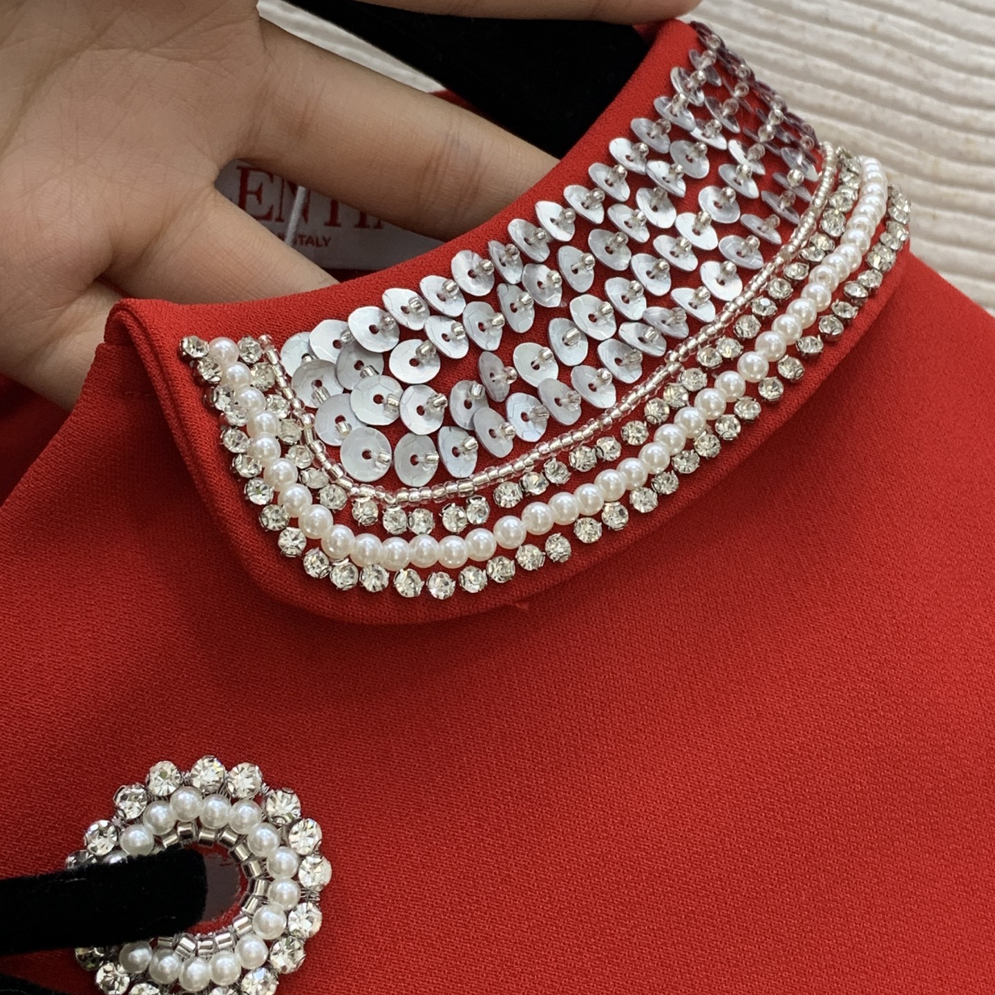 这款衣服是AAAAA 1:1 质量 (非常棒). 使用了和原版一模一样的材料. 商标部分也保持了和华伦天奴/Valentino一样. 图片拍摄是实物衣服拍摄, 您所收到的实物保证和我们图片一模一样.