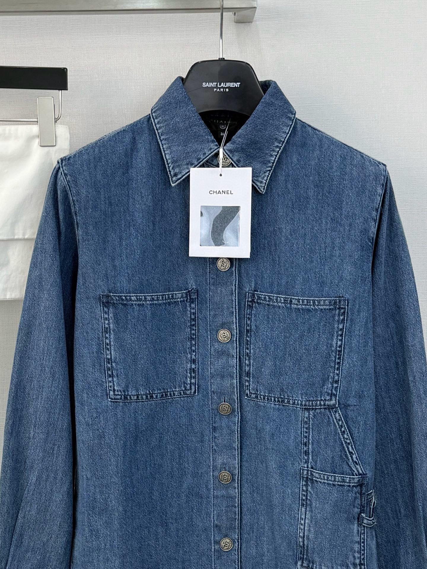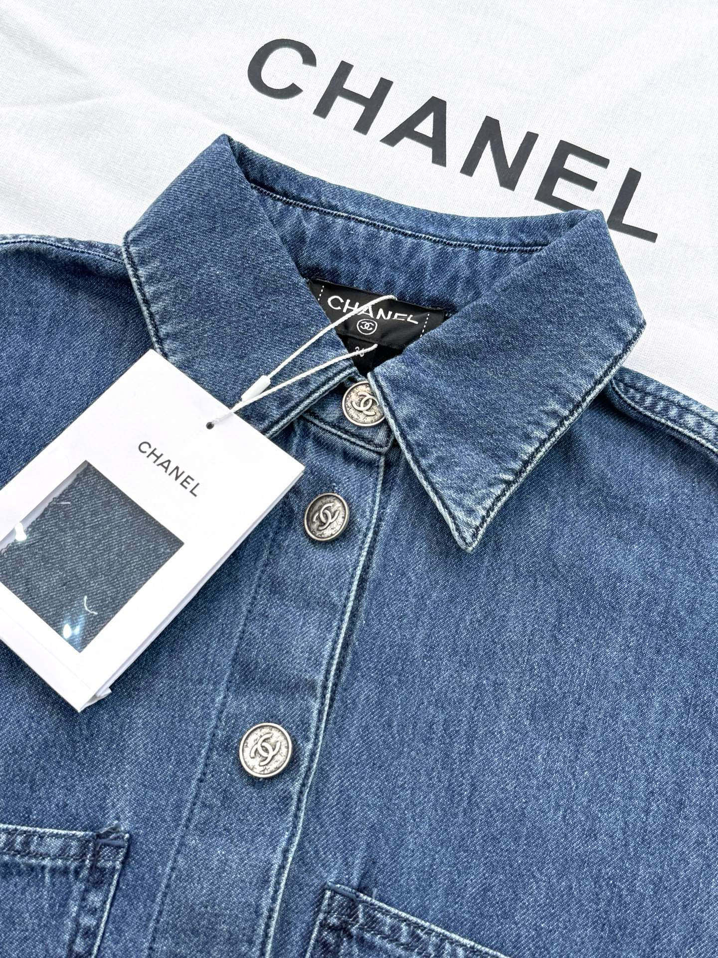 这款衣服是AAAAA 1:1 质量 (非常棒). 使用了和原版一模一样的材料. 商标部分也保持了和香奈儿/Chanel一样. 图片拍摄是实物衣服拍摄, 您所收到的实物保证和我们图片一模一样.
