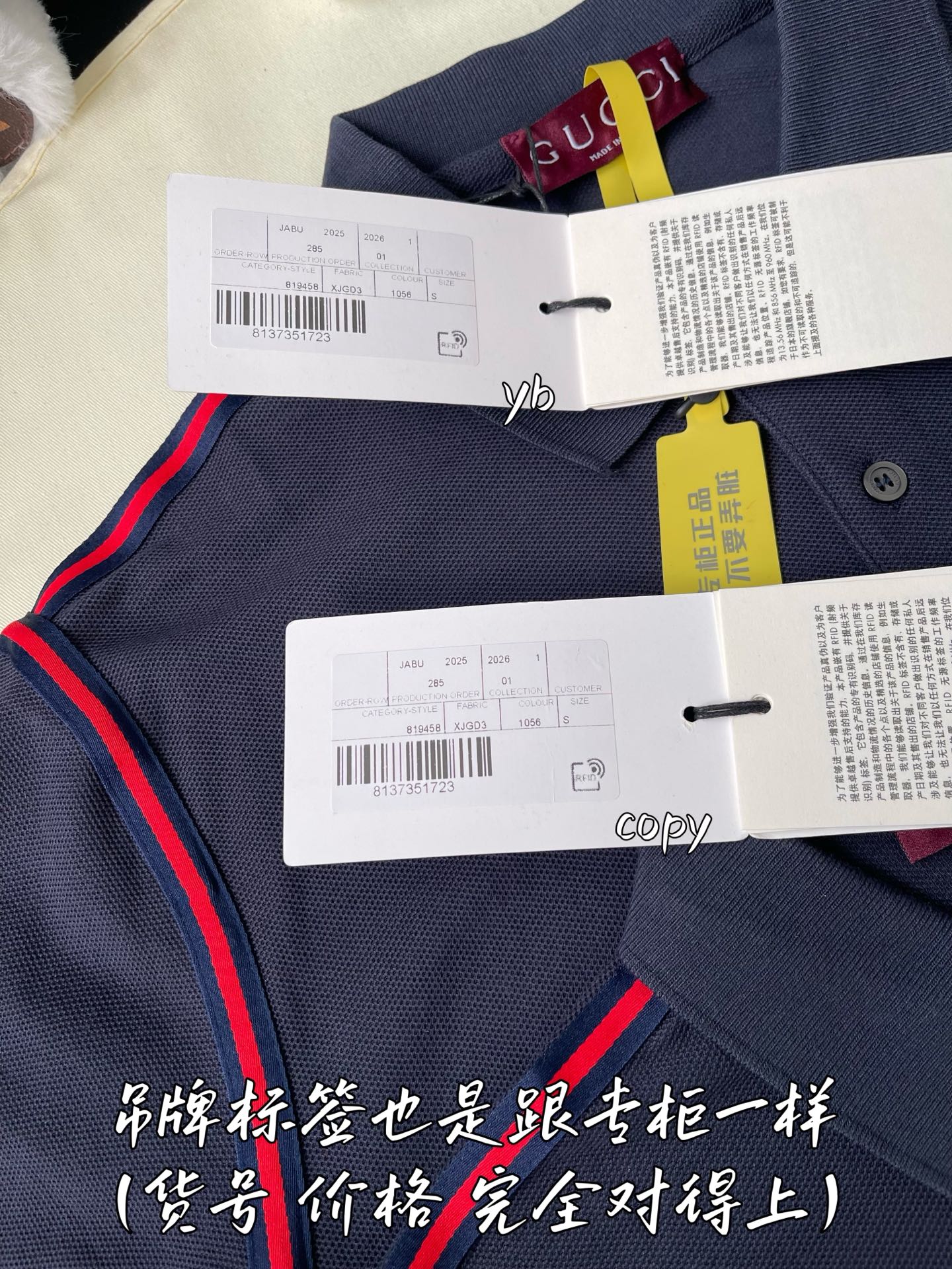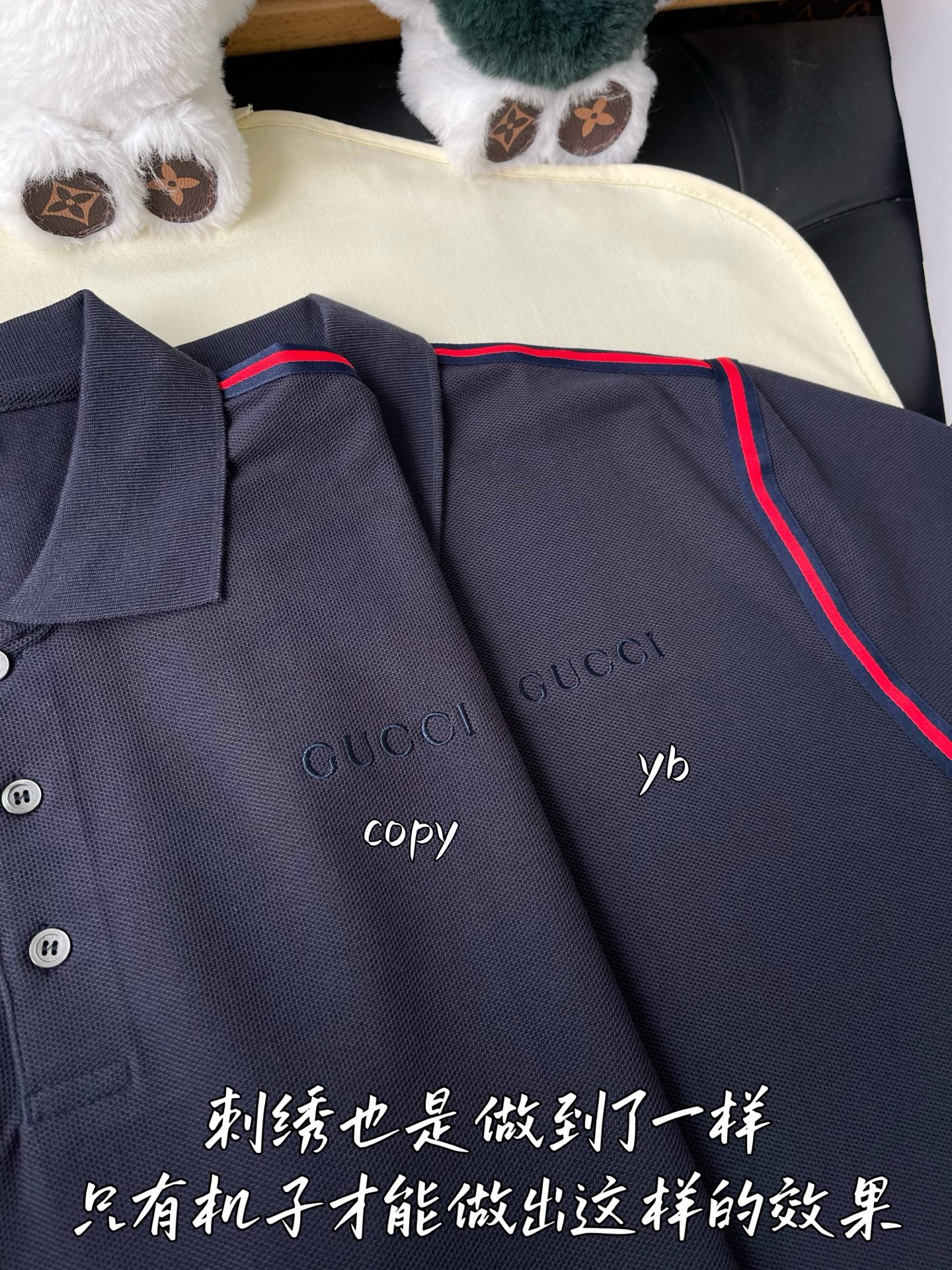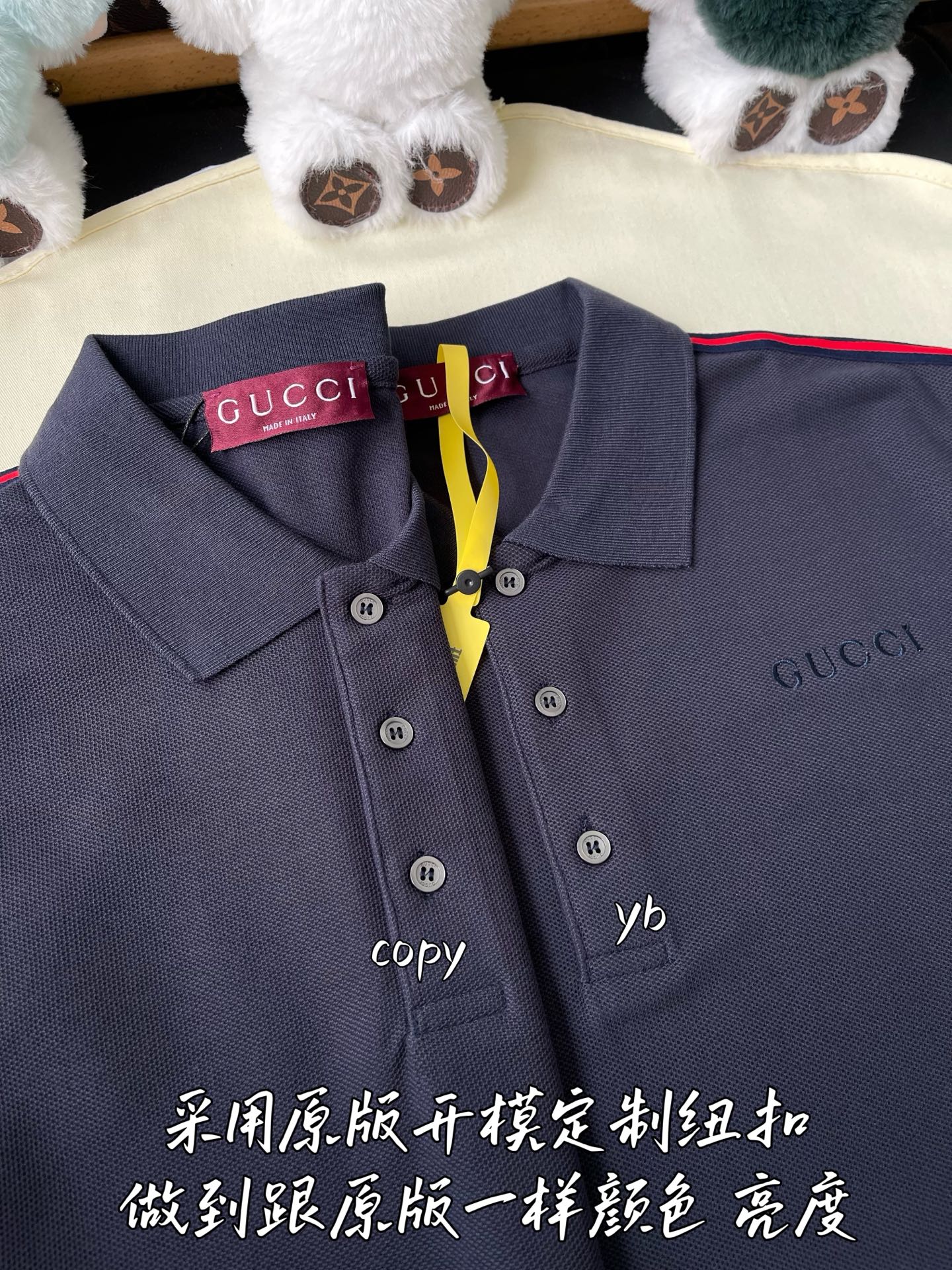 这款衣服是AAAAA 1:1 质量 (非常棒). 使用了和原版一模一样的材料. 商标部分也保持了和古奇/Gucci一样. 图片拍摄是实物衣服拍摄, 您所收到的实物保证和我们图片一模一样.