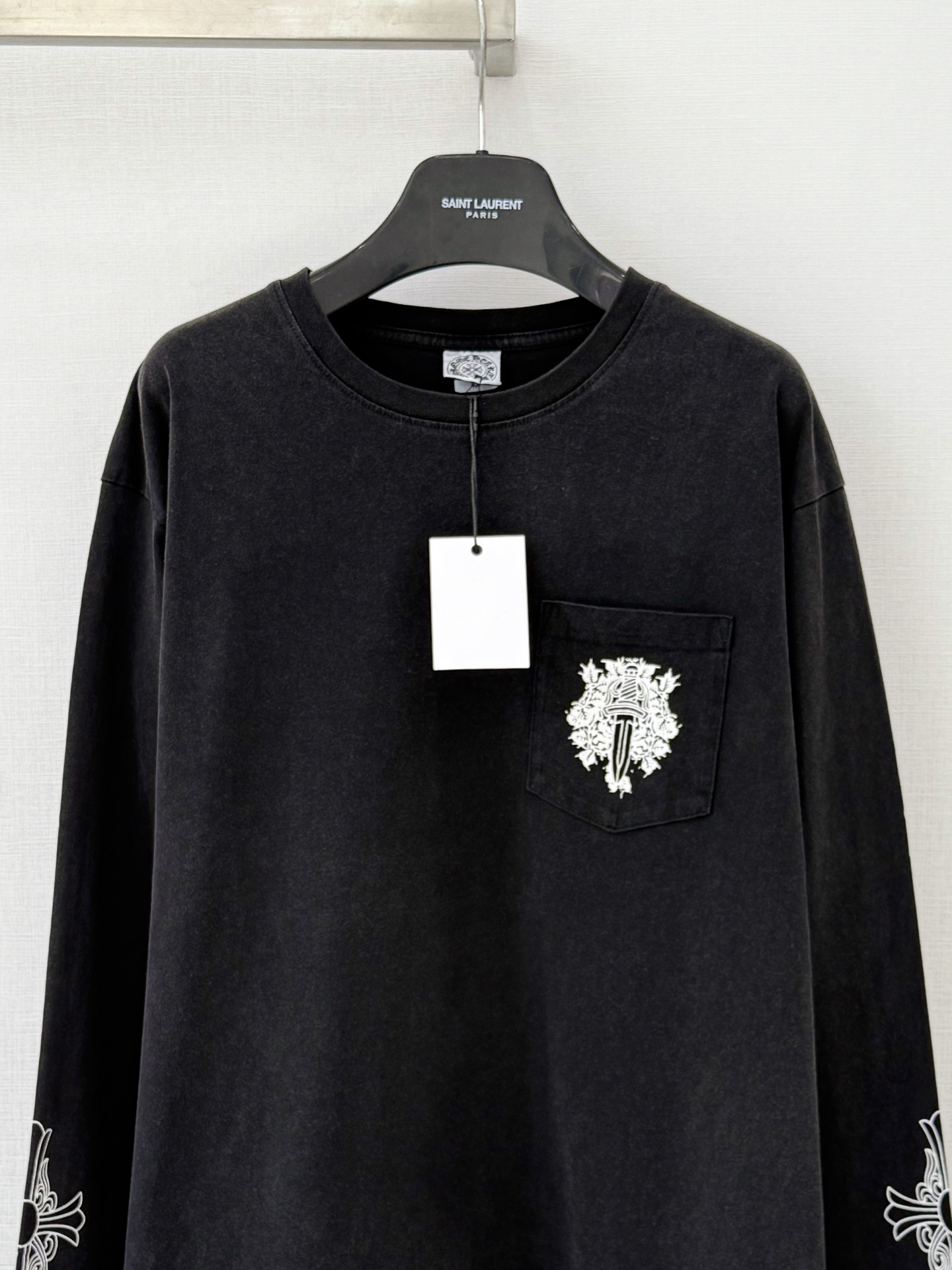 这款衣服是AAAAA 1:1 质量 (非常棒). 使用了和原版一模一样的材料. 商标部分也保持了和克罗心/Chrome Hearts一样. 图片拍摄是实物衣服拍摄, 您所收到的实物保证和我们图片一模一样.