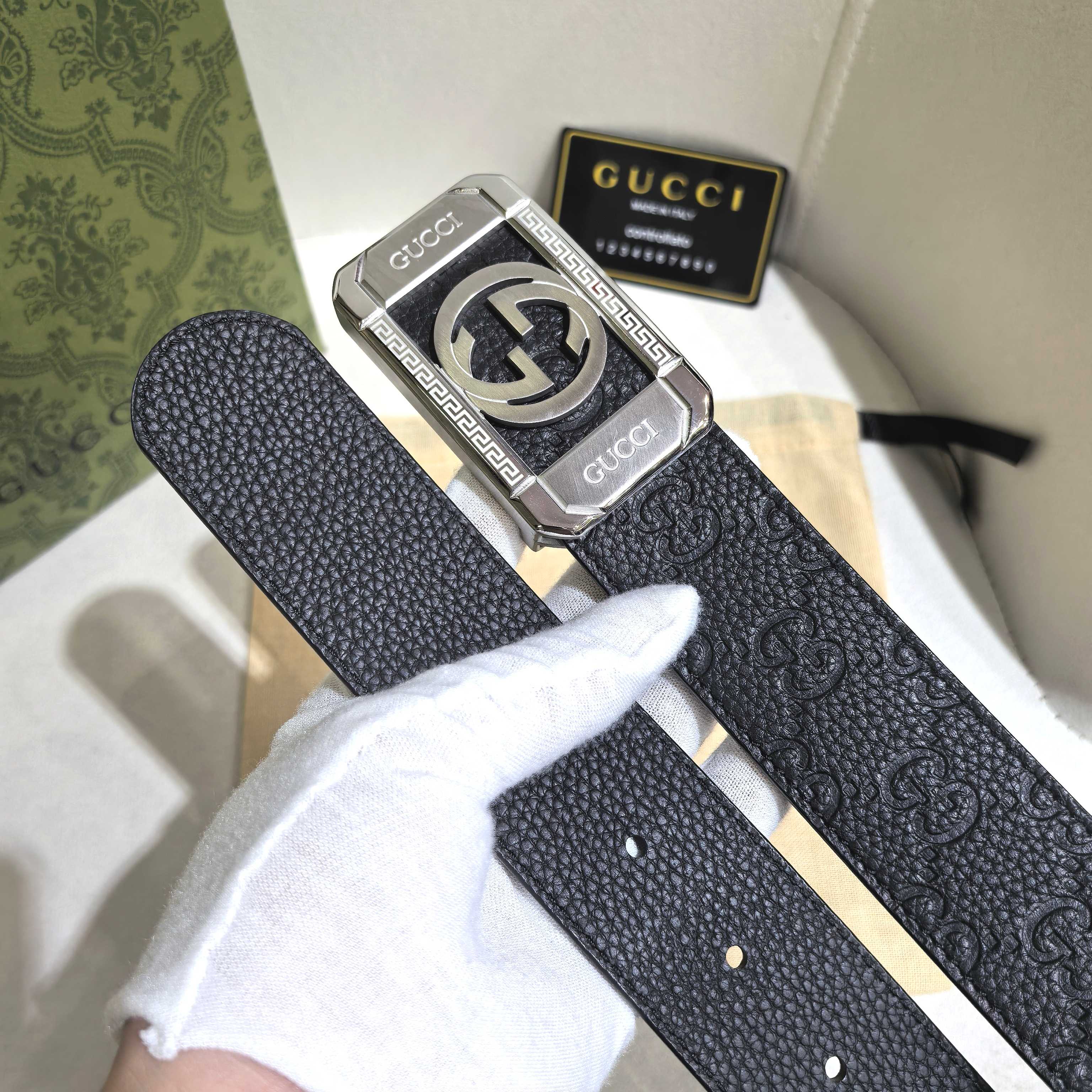 这款皮带是AAAAA 1:1 质量 (非常棒). 使用了和原版一模一样的材料. 商标部分也保持了和古奇/Gucci一样. 图片拍摄是实物皮带拍摄, 您所收到的实物保证和我们图片一模一样.