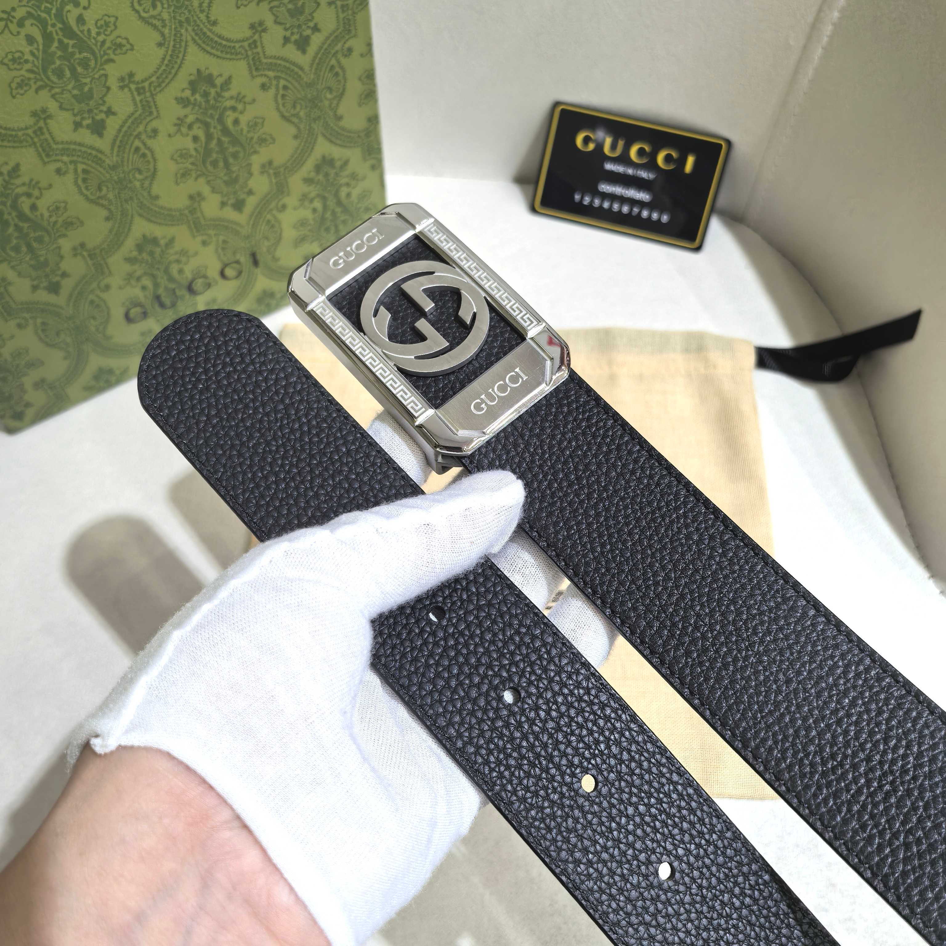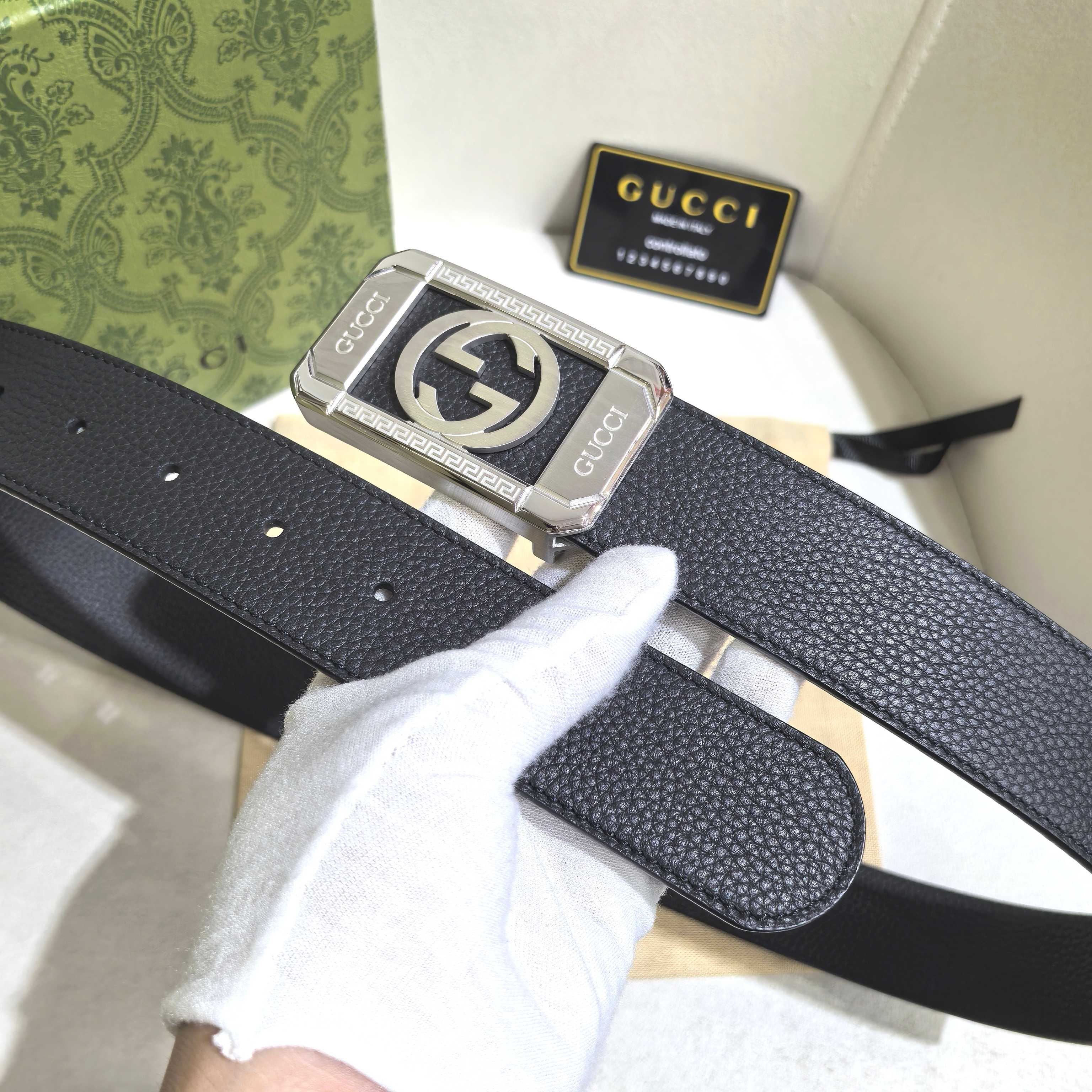 这款皮带是AAAAA 1:1 质量 (非常棒). 使用了和原版一模一样的材料. 商标部分也保持了和古奇/Gucci一样. 图片拍摄是实物皮带拍摄, 您所收到的实物保证和我们图片一模一样.