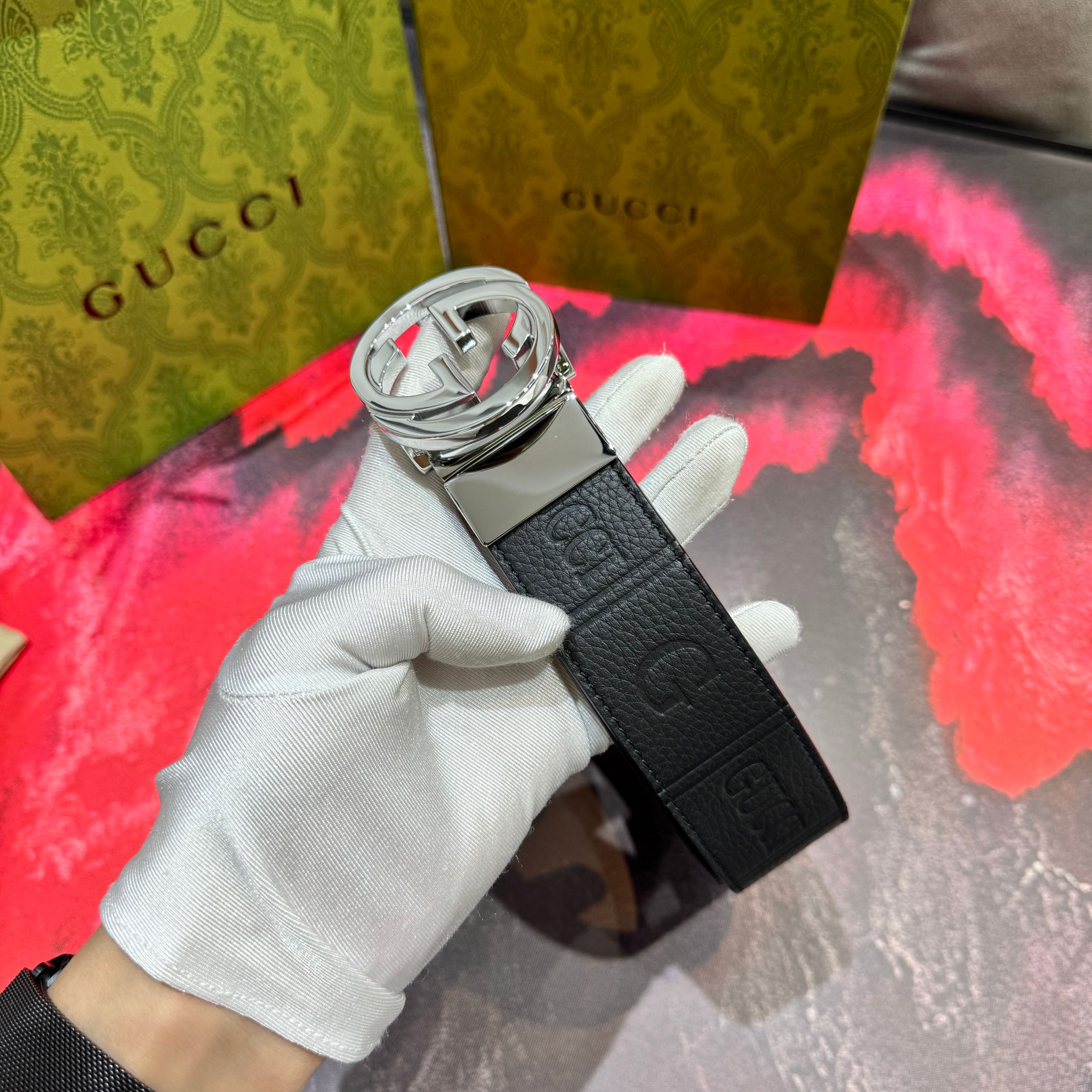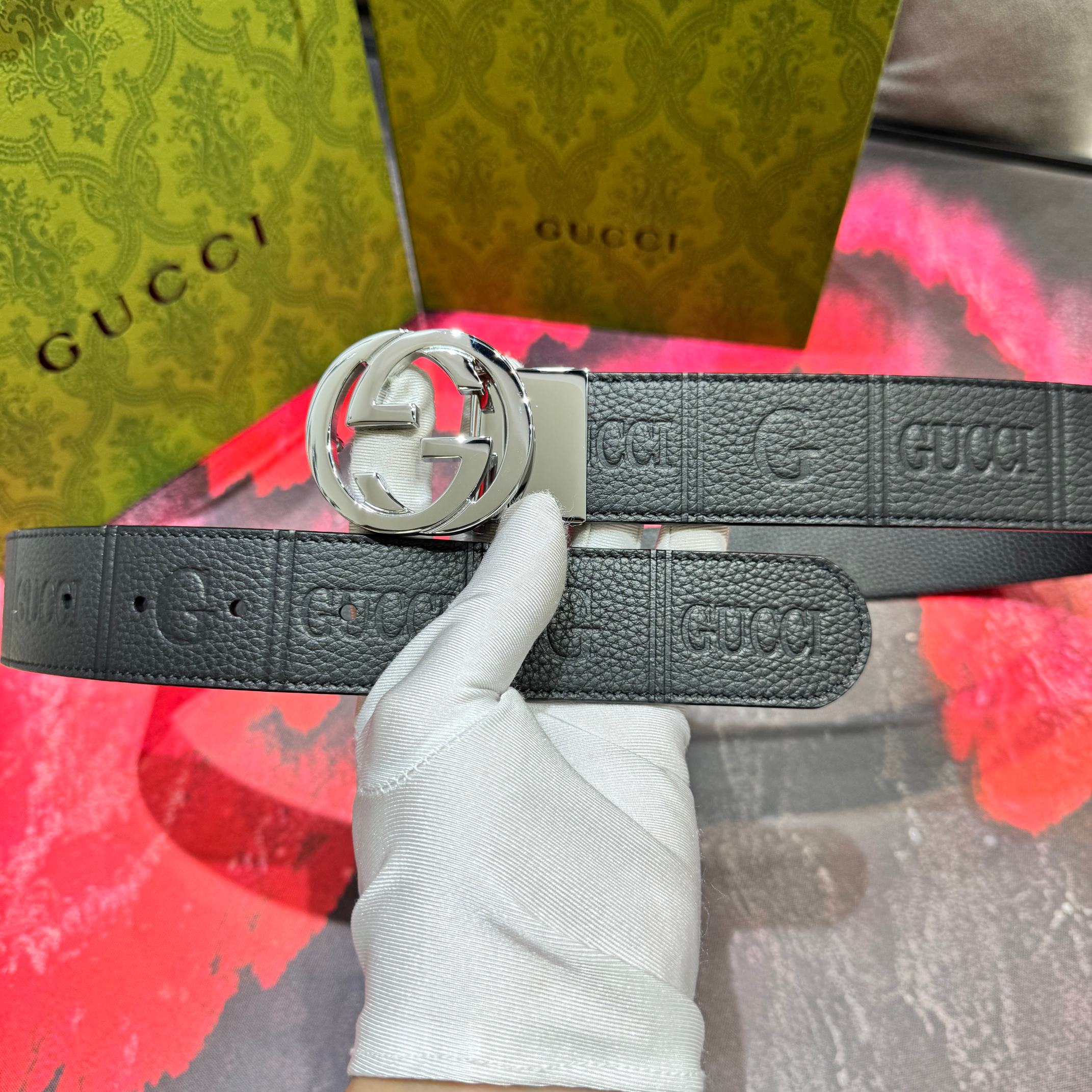 这款皮带是AAAAA 1:1 质量 (非常棒). 使用了和原版一模一样的材料. 商标部分也保持了和古奇/Gucci一样. 图片拍摄是实物皮带拍摄, 您所收到的实物保证和我们图片一模一样.