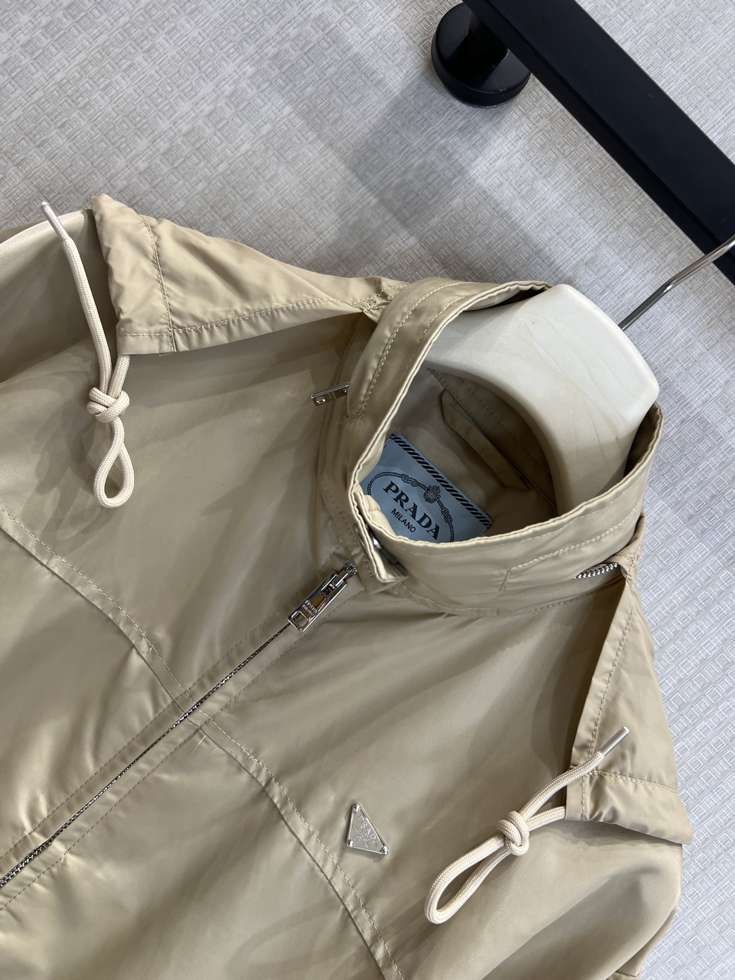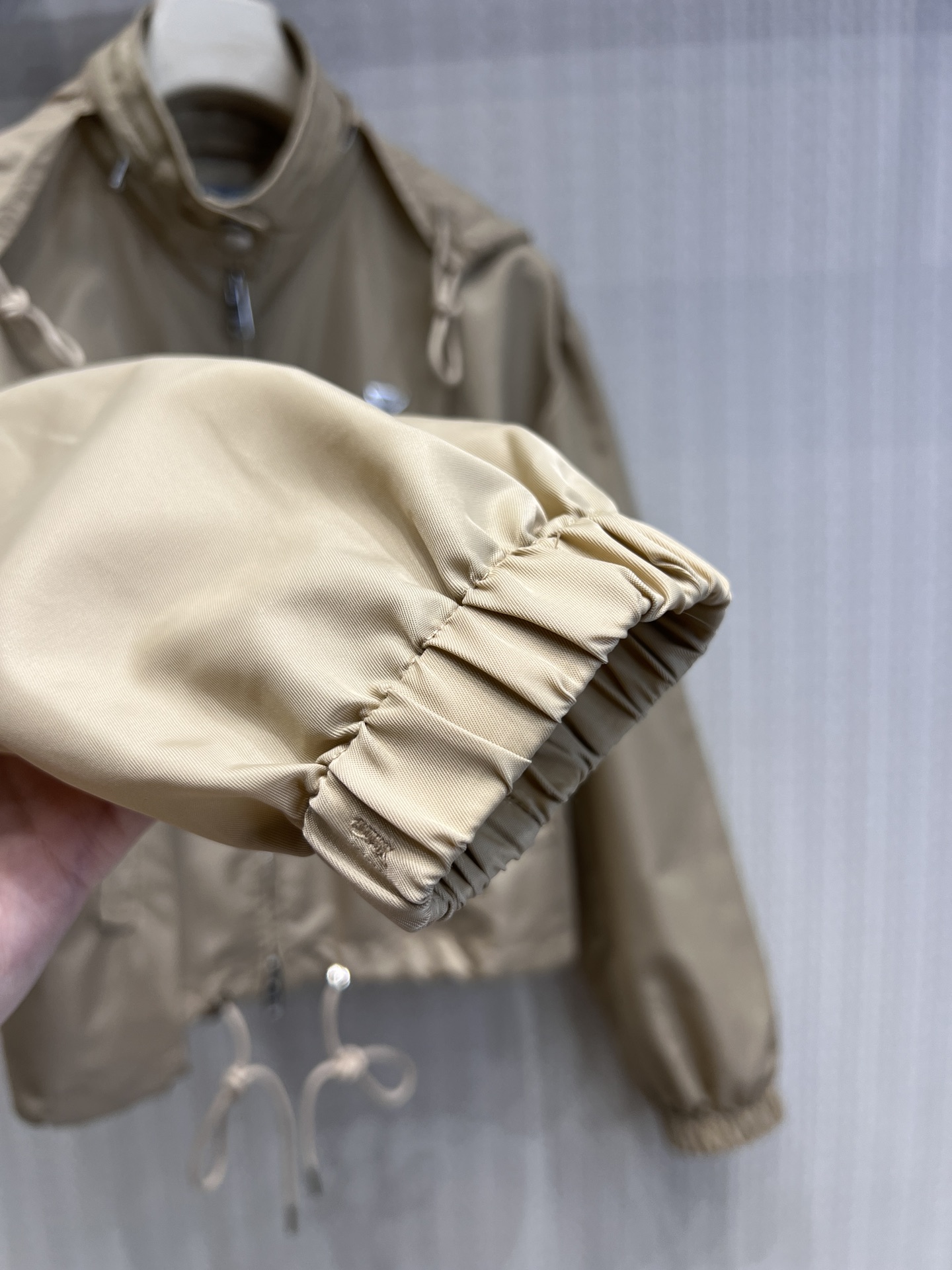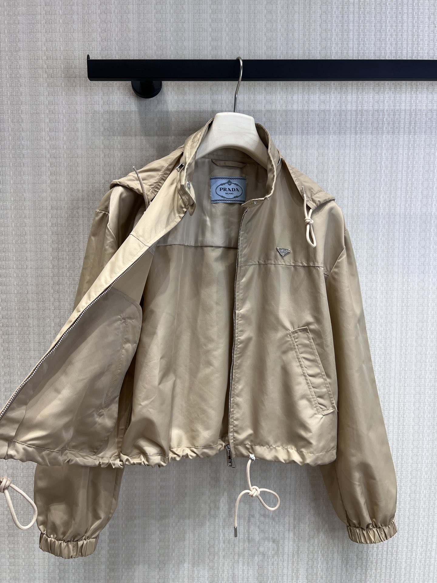 这款衣服是AAAAA 1:1 质量 (非常棒). 使用了和原版一模一样的材料. 商标部分也保持了和普拉达/Prada一样. 图片拍摄是实物衣服拍摄, 您所收到的实物保证和我们图片一模一样.