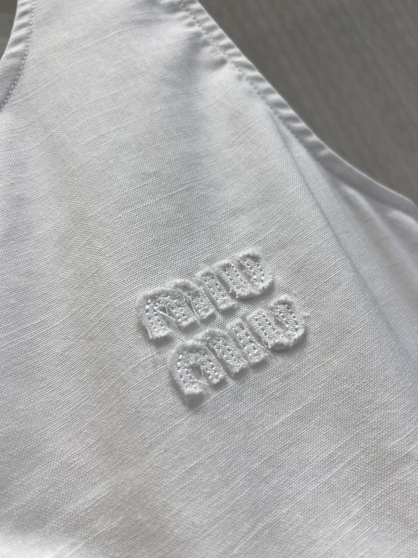 这款衣服是AAAAA 1:1 质量 (非常棒). 使用了和原版一模一样的材料. 商标部分也保持了和缪缪/Miu Miu一样. 图片拍摄是实物衣服拍摄, 您所收到的实物保证和我们图片一模一样.
