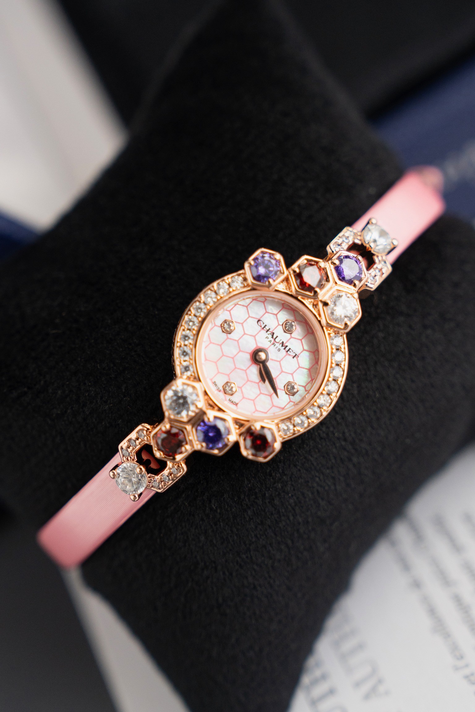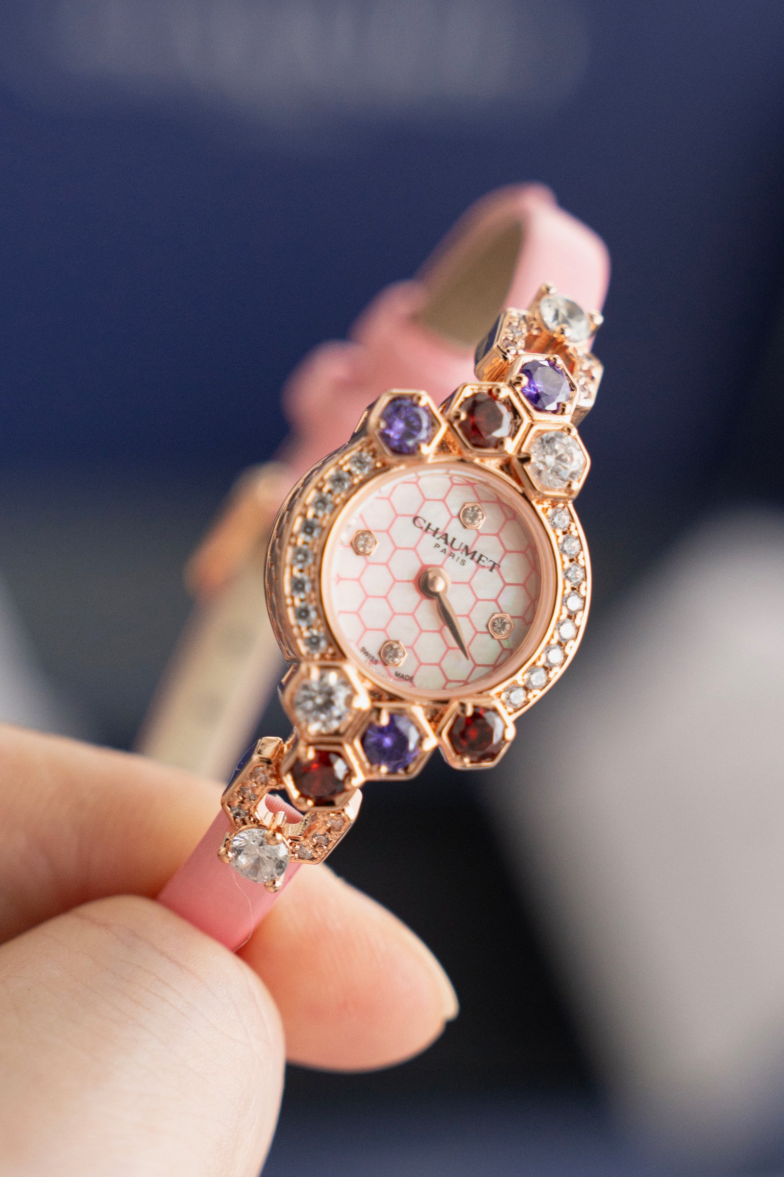 这款手表是AAAAA 1:1 质量 (非常棒). 使用了和原版一模一样的材料. 商标部分也保持了和Chaumet一样. 图片拍摄是实物手表拍摄, 您所收到的实物保证和我们图片一模一样.