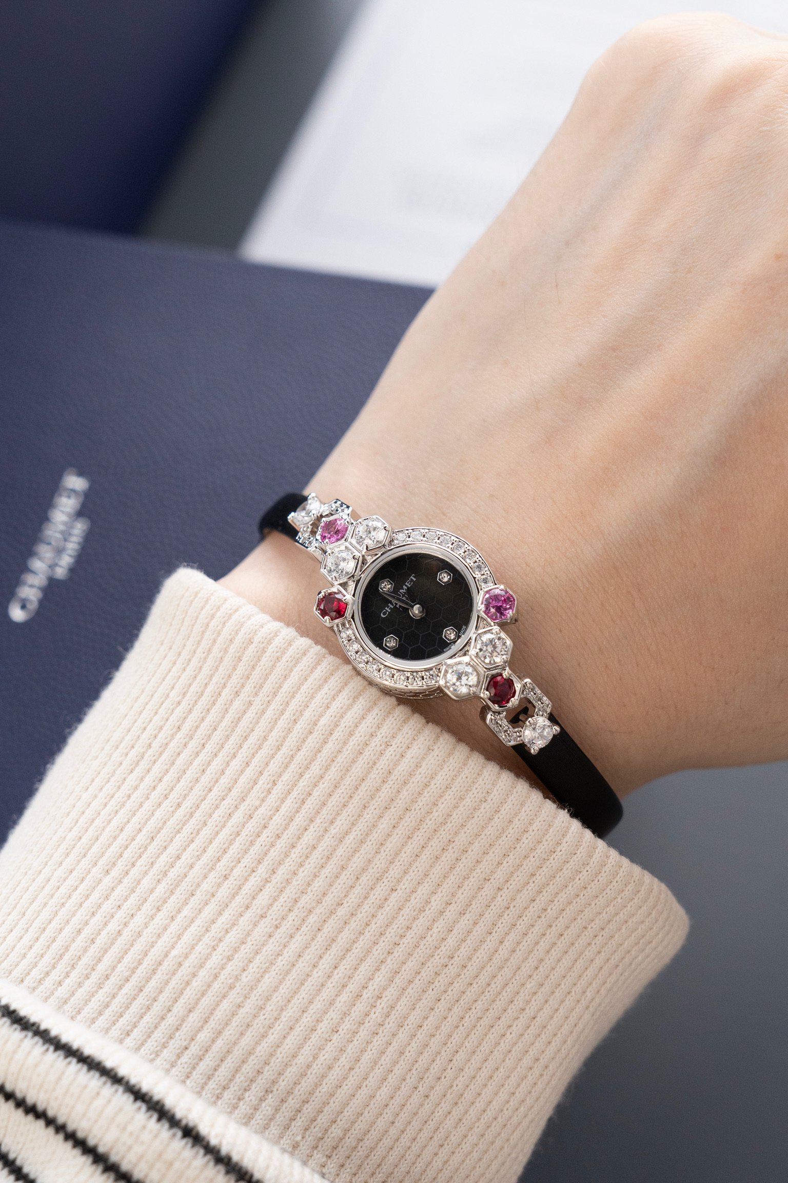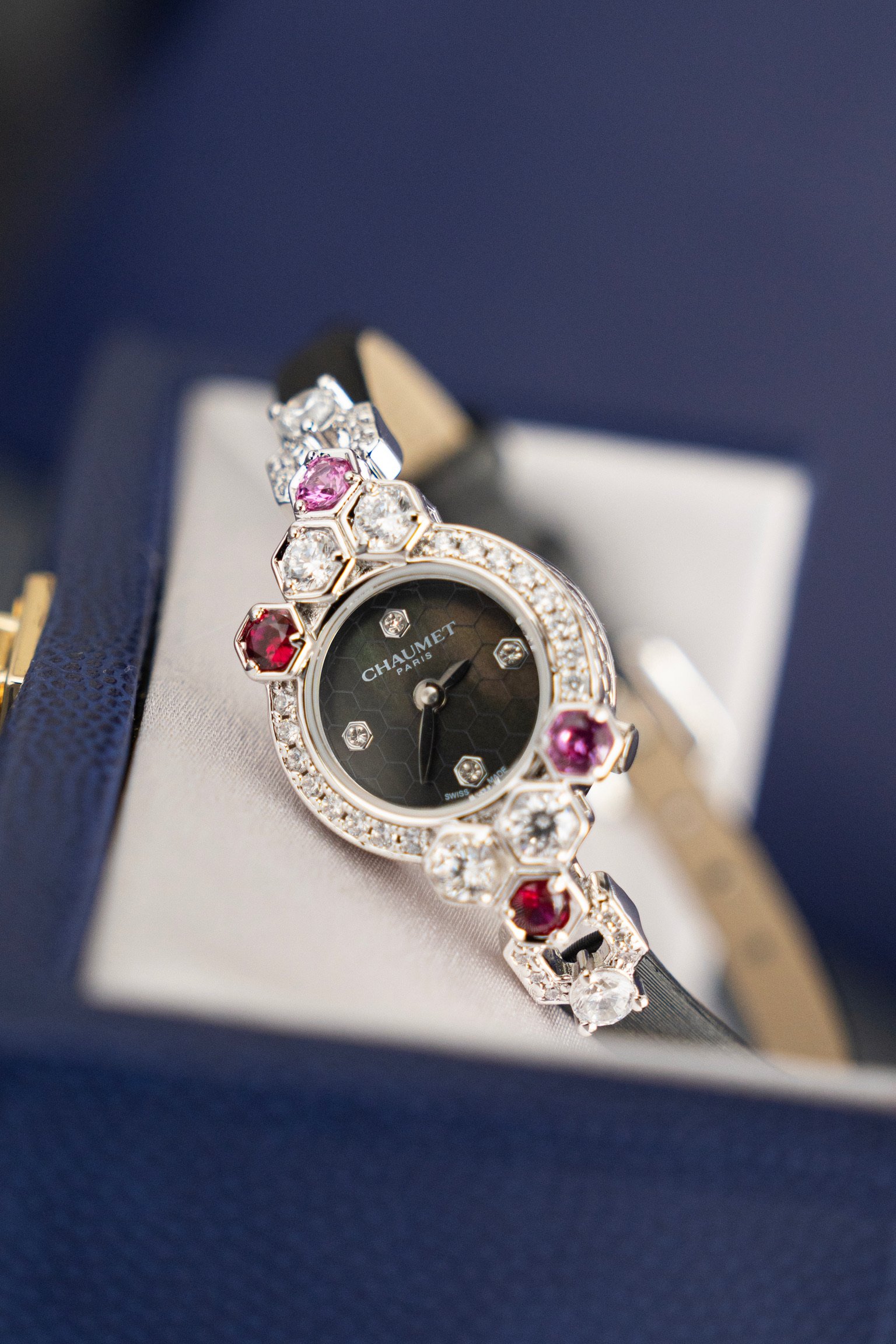 这款手表是AAAAA 1:1 质量 (非常棒). 使用了和原版一模一样的材料. 商标部分也保持了和Chaumet一样. 图片拍摄是实物手表拍摄, 您所收到的实物保证和我们图片一模一样.
