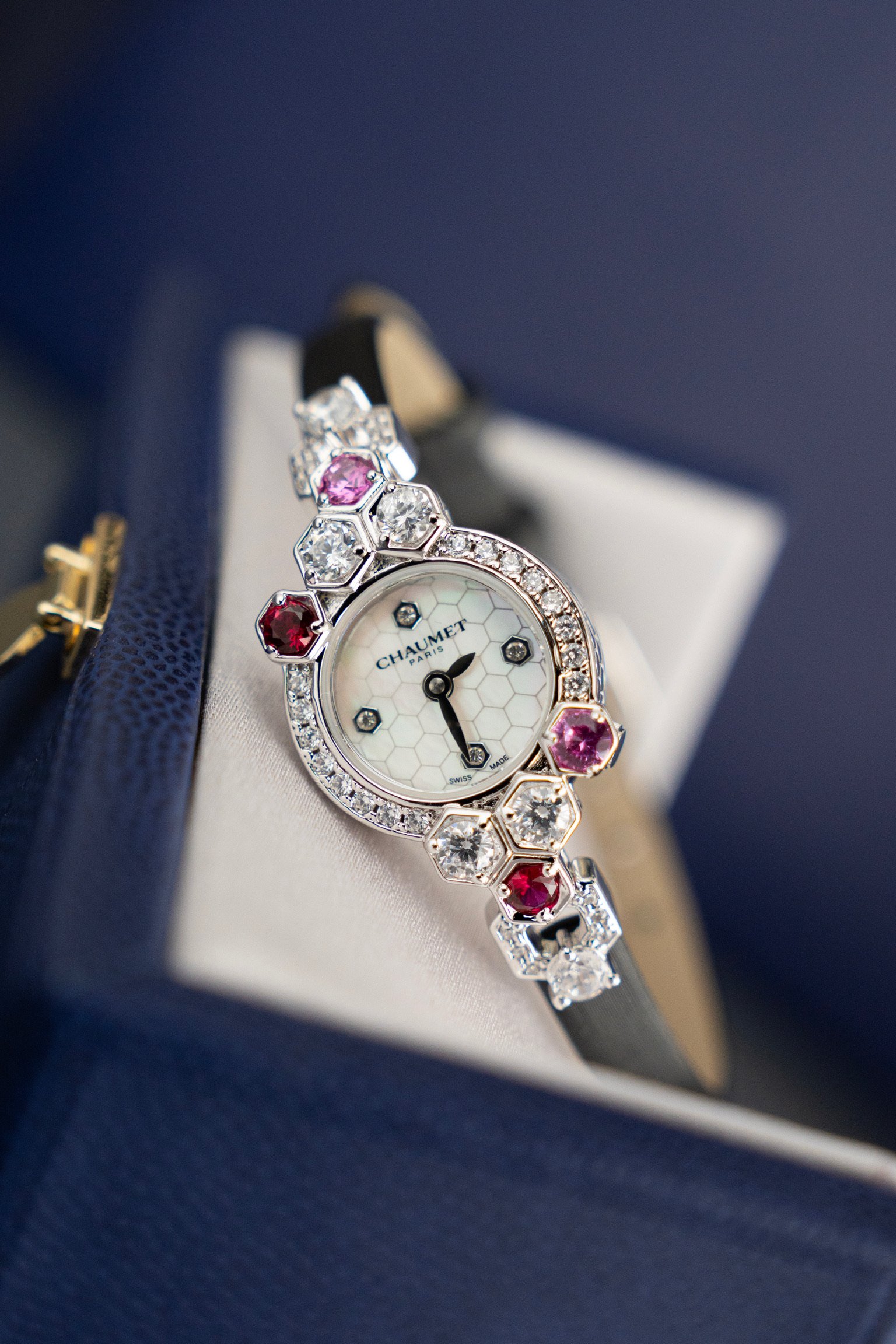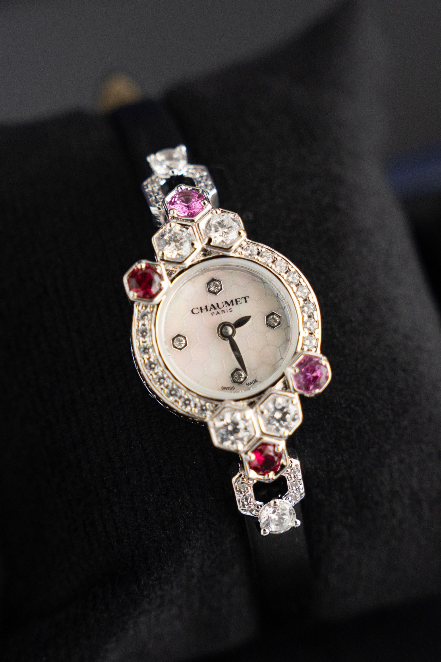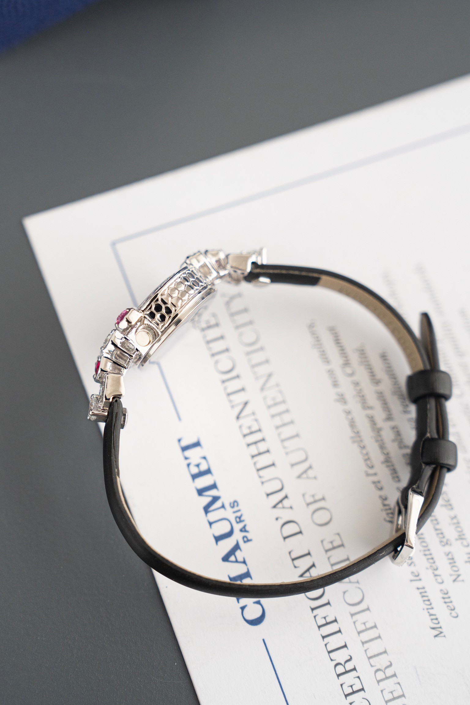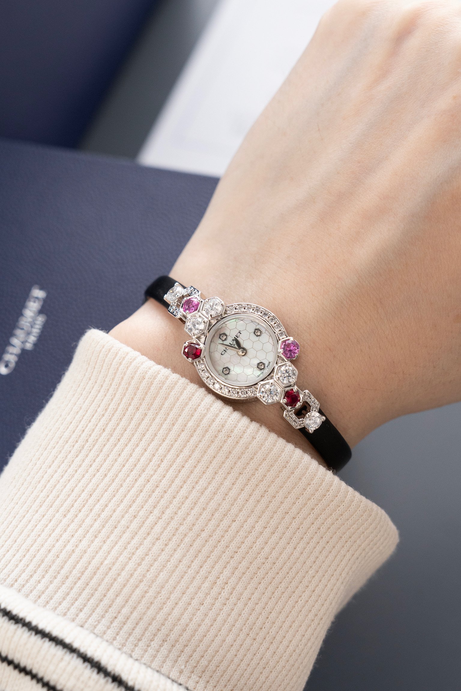 这款手表是AAAAA 1:1 质量 (非常棒). 使用了和原版一模一样的材料. 商标部分也保持了和Chaumet一样. 图片拍摄是实物手表拍摄, 您所收到的实物保证和我们图片一模一样.