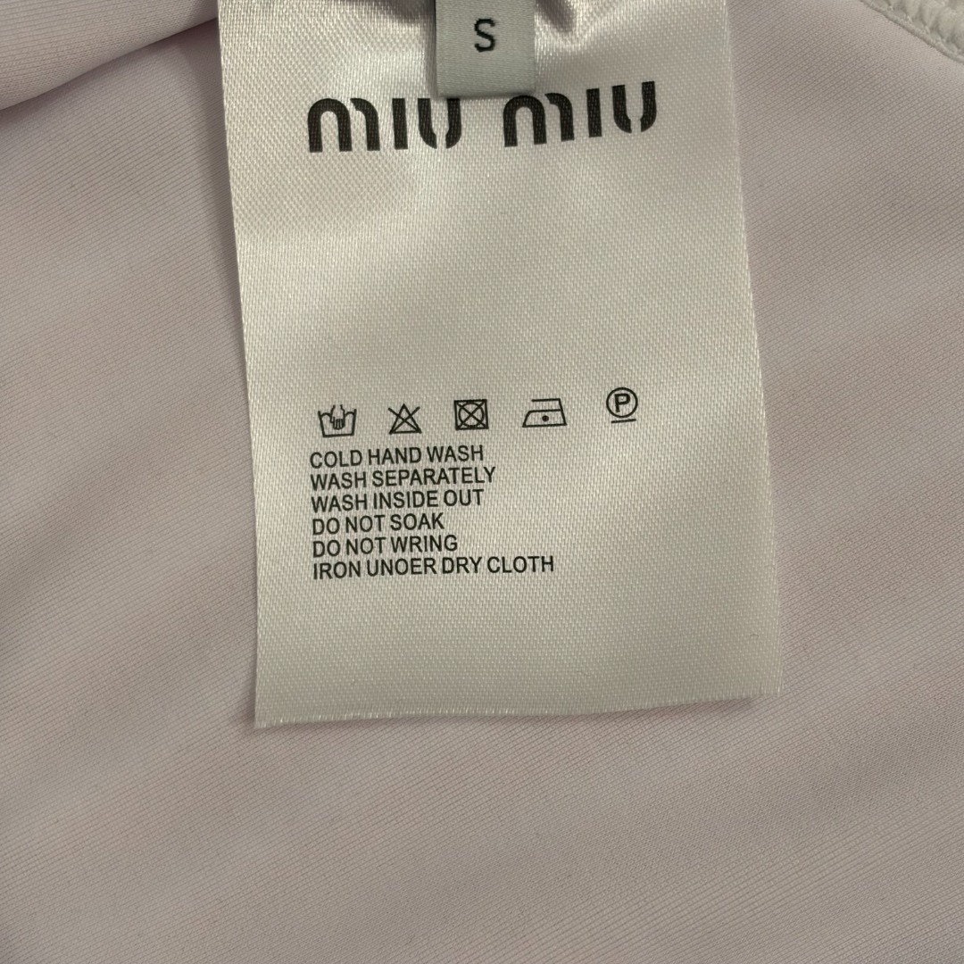 这款衣服是AAAAA 1:1 质量 (非常棒). 使用了和原版一模一样的材料. 商标部分也保持了和缪缪/Miu Miu一样. 图片拍摄是实物衣服拍摄, 您所收到的实物保证和我们图片一模一样.