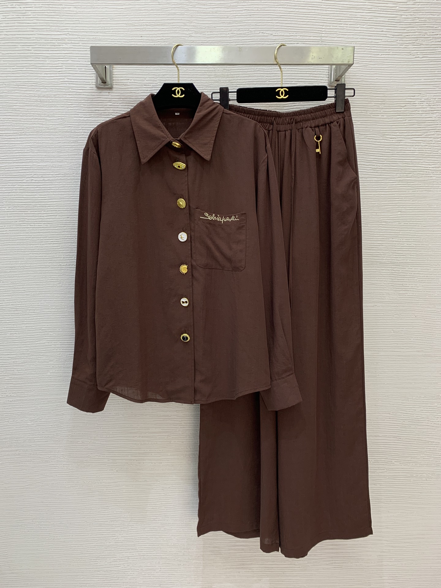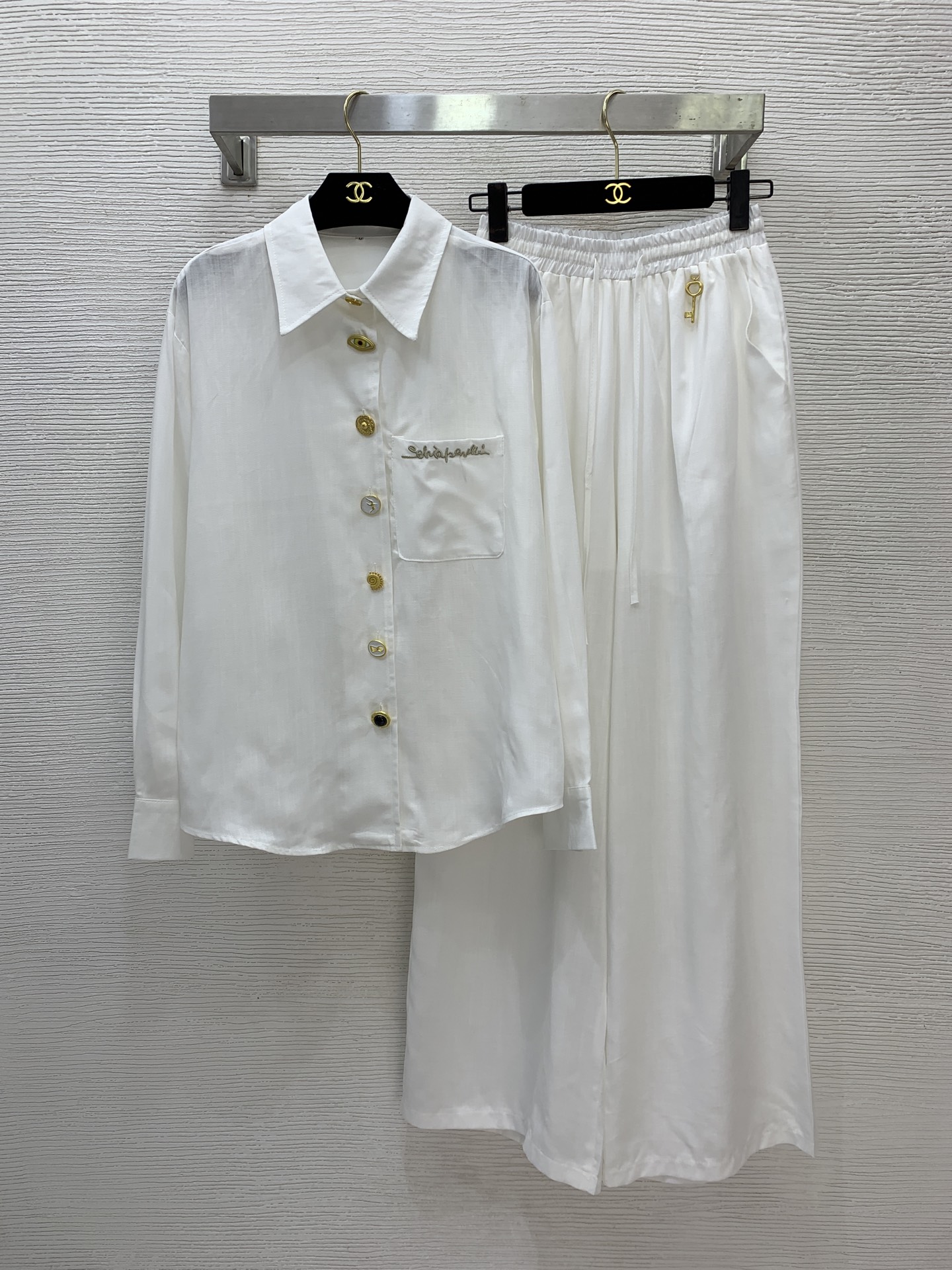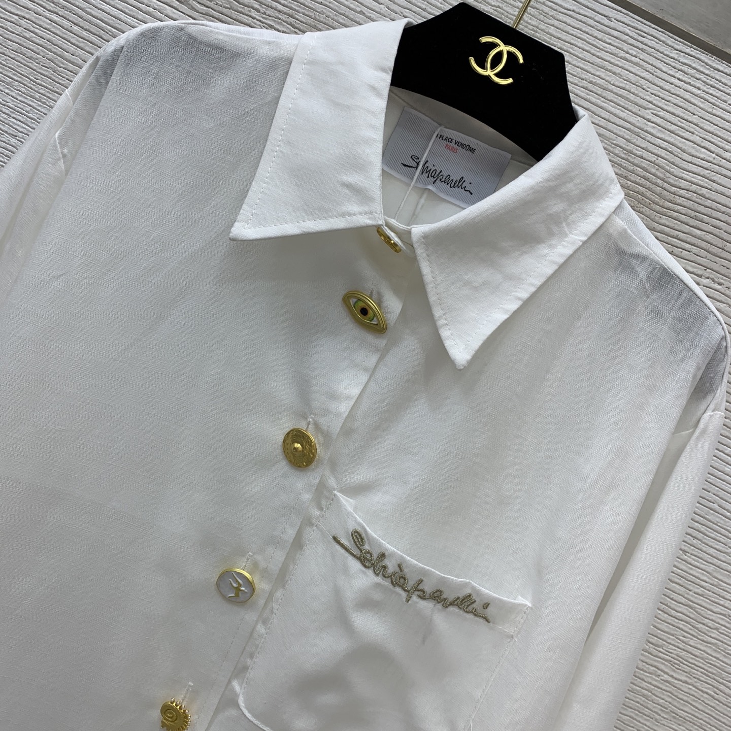 这款衣服是AAAAA 1:1 质量 (非常棒). 使用了和原版一模一样的材料. 商标部分也保持了和Schiaparelli一样. 图片拍摄是实物衣服拍摄, 您所收到的实物保证和我们图片一模一样.