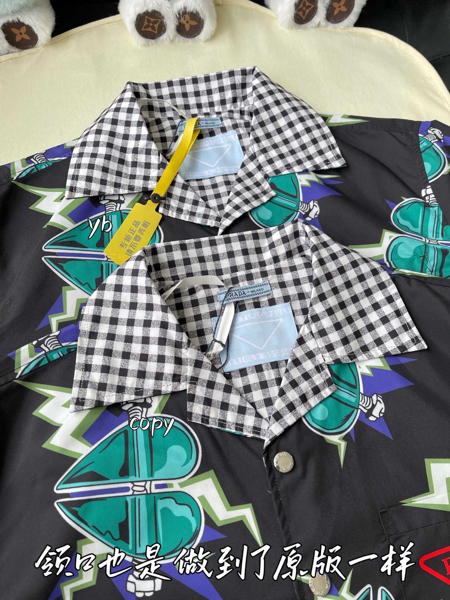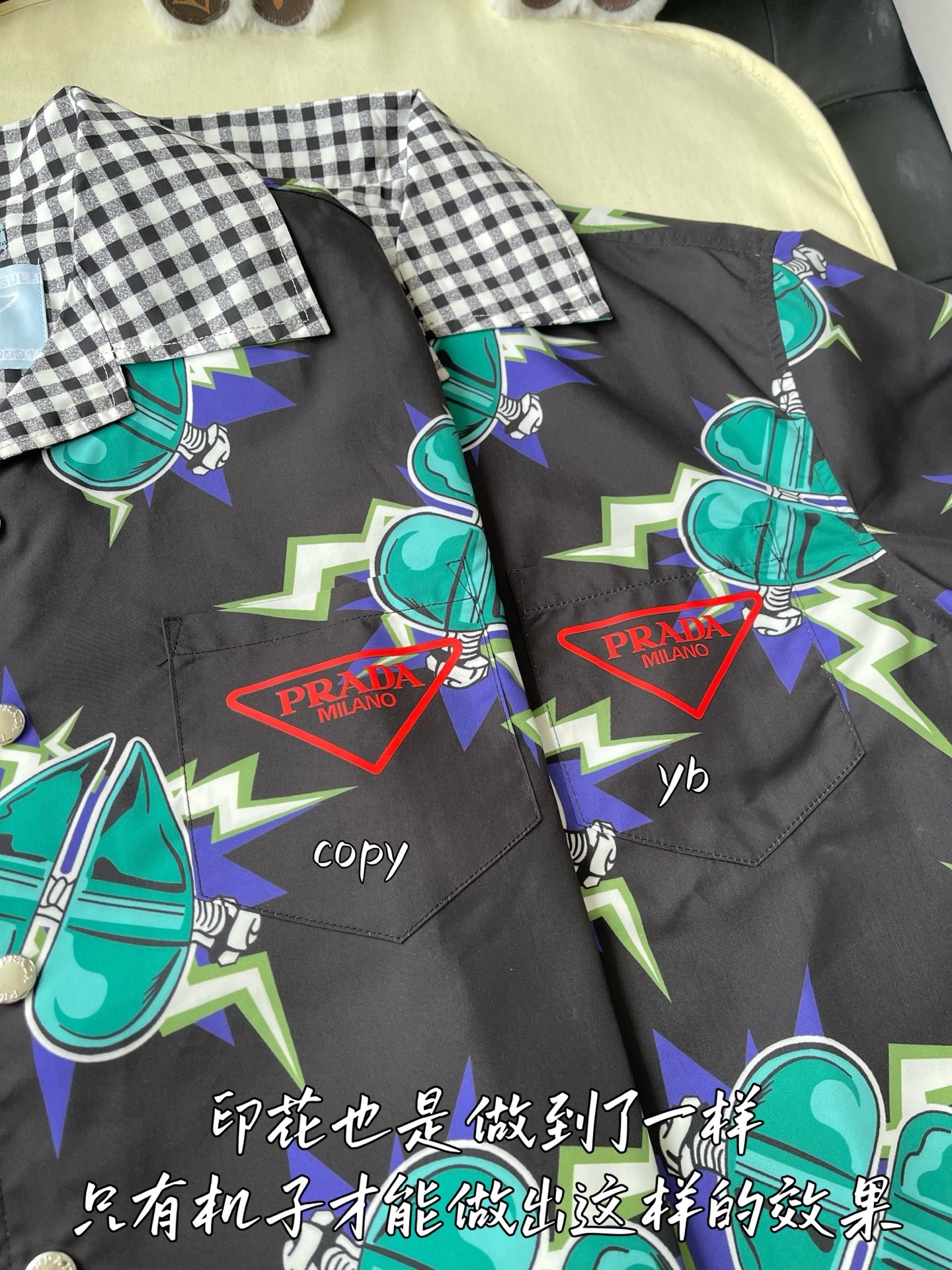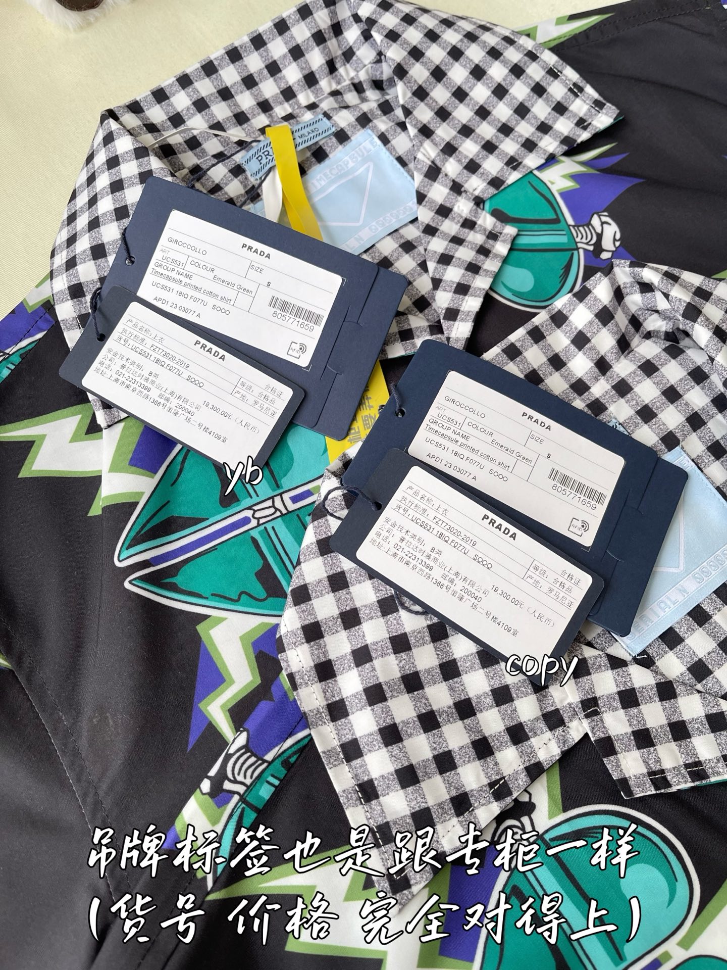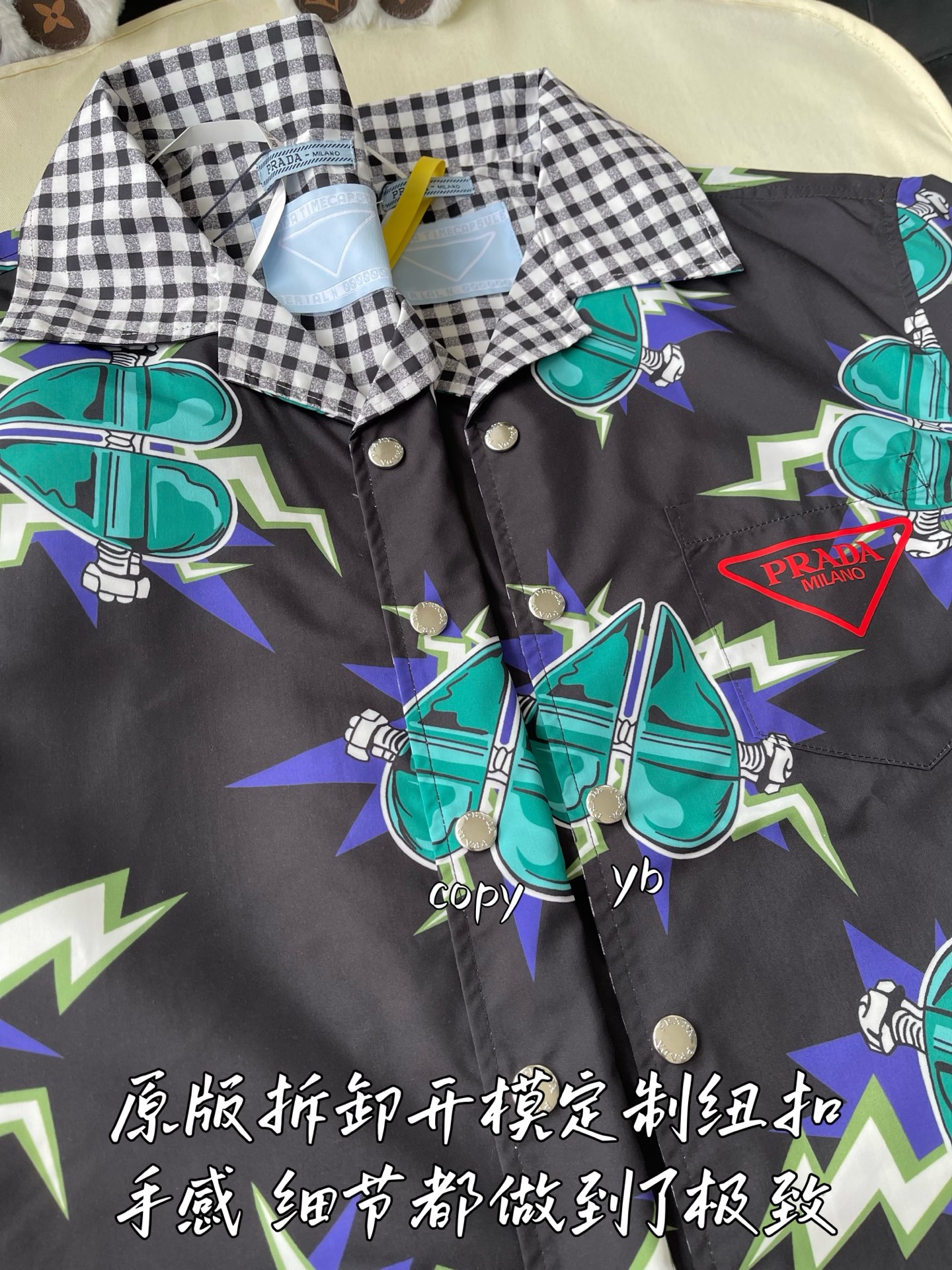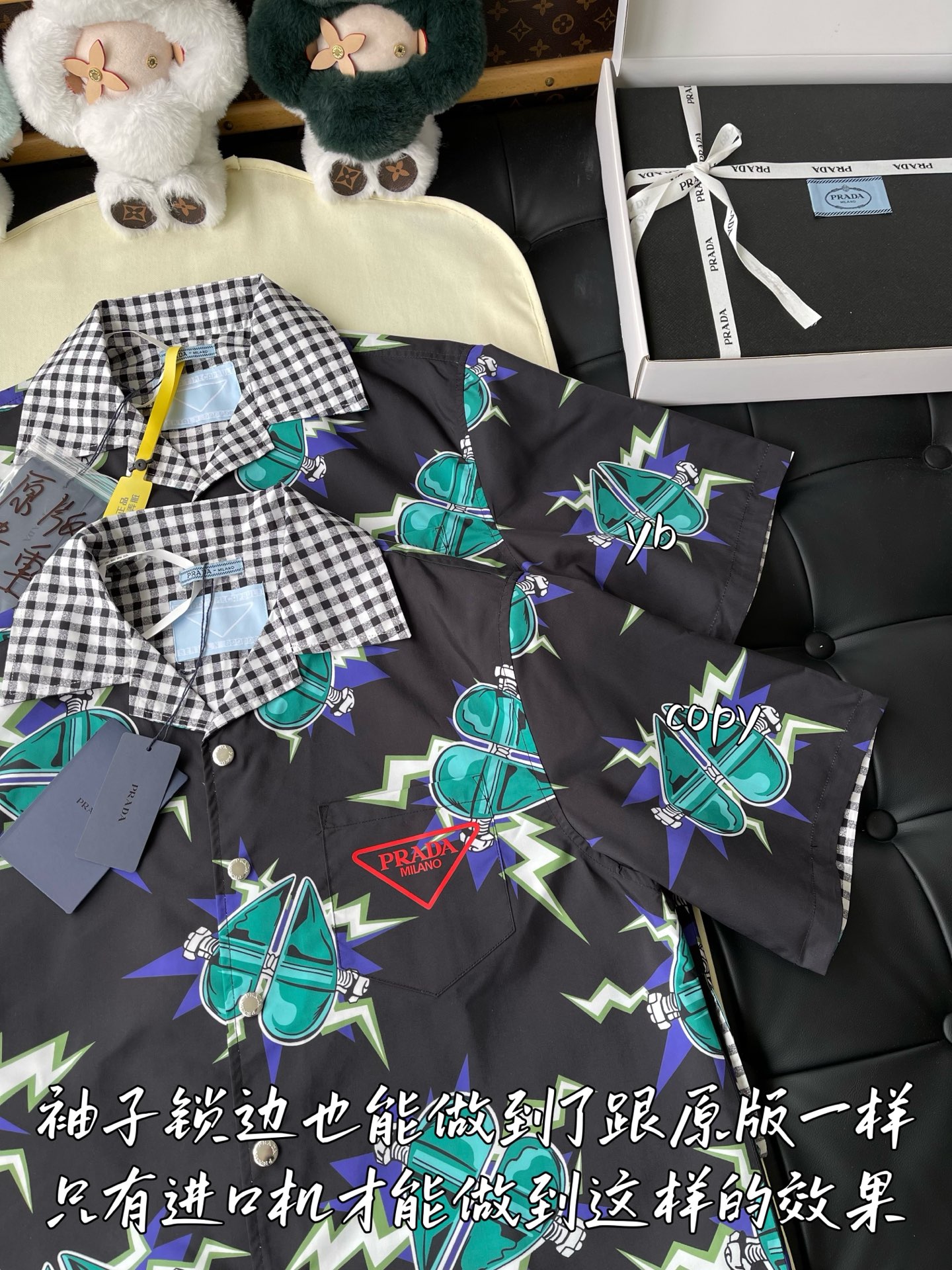 这款衣服是AAAAA 1:1 质量 (非常棒). 使用了和原版一模一样的材料. 商标部分也保持了和普拉达/Prada一样. 图片拍摄是实物衣服拍摄, 您所收到的实物保证和我们图片一模一样.