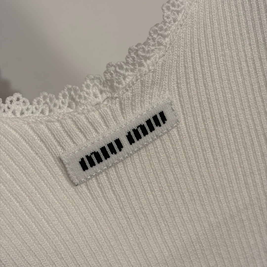 这款衣服是AAAAA 1:1 质量 (非常棒). 使用了和原版一模一样的材料. 商标部分也保持了和缪缪/Miu Miu一样. 图片拍摄是实物衣服拍摄, 您所收到的实物保证和我们图片一模一样.