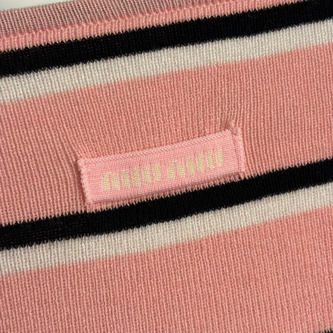 这款衣服是AAAAA 1:1 质量 (非常棒). 使用了和原版一模一样的材料. 商标部分也保持了和缪缪/Miu Miu一样. 图片拍摄是实物衣服拍摄, 您所收到的实物保证和我们图片一模一样.